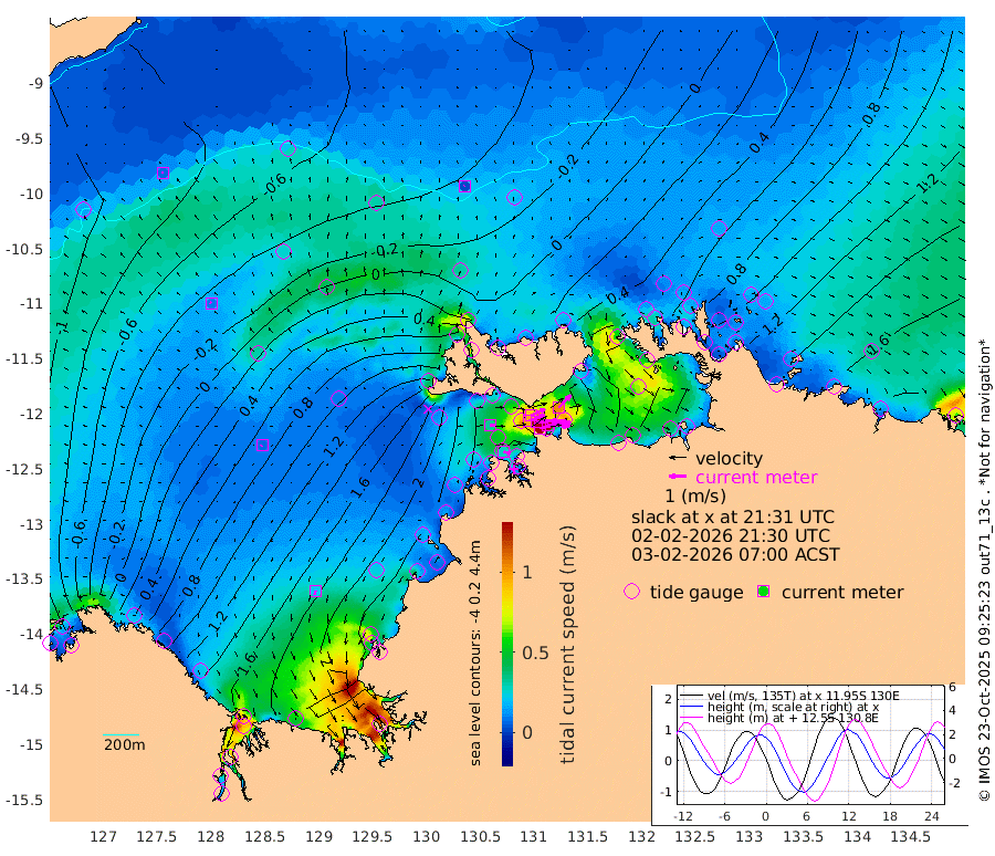 184cm/s 78T +4cm/s rms + 6cm/s 51T. Darwin_C1 52m 131cm/s 92T +4cm/s rms + 7cm/s -161T. Darwin_CW1 22m 95cm/s 72T +4cm/s rms + 8cm/s 61T. Darwin_CW2 34m 103cm/s 43T +3cm/s rms + 9cm/s 98T. Darwin_CW3 22m 137cm/s 89T +5cm/s rms + 7cm/s 88T. Darwin_C3 56m 89cm/s 65T +2cm/s rms + 9cm/s -126T. Darwin_CTbW 22m 3cm/s 60T +9cm/s rms + 2cm/s -110T. NWSLYN 196m 33cm/s 82T +1cm/s rms + 1cm/s -47T. DARBGF 30m 8cm/s -61T +7cm/s rms + 2cm/s -137T. ITFTIS 464m 9cm/s -55T +9cm/s rms + 1cm/s 74T. ITFMHB 146m 22cm/s -174T +4cm/s rms + 1cm/s -134T. ITFJBG 61m 8cm/s -118T +6cm/s rms + 4cm/s 121T. ITFFTB 108m 28cm/s 108T +4cm/s rms + 3cm/s 80T. NRSDAR 19m -126cm Carronade Island -131cm Guy Point -136cm Napier Broome Bay -5cm Lesueur Island 110cm Reveley Island 3cm Rocky Island 176cm Cape Domett 156cm Lacrosse Island 162cm Adolphus Island 71cm Pender Point 40cm Wyndham -6cm The Boxers 33cm Unnamed Shoal -81cm Loxton Shoal 219cm Pelican Island -24cm Calder Shoal -46cm Evans Shoal 196cm Quoin Island 231cm Port Keats 236cm Jones Point 152cm Catfish Island 171cm Cape Scott Offshore 218cm Cape Ford 205cm Anson Bay -15cm Goodrich Bank 183cm Peron Island North 177cm Point Jenny 174cm Native Point 197cm Fish Reef 205cm Tapa Bay 84cm Point Fawcett (Offshore) 223cm Burge Point 195cm Munkunuwa 146cm Beagle A 229cm Parsons Bank 208cm Fenton Patches -28cm Lynedoch Bank 220cm Hancox Shoal Area 222cm Nightcliff 247cm Darwin 223cm Charles Point Patches 173cm Glyde Point 122cm Chambers Bay 121cm Point Stuart 149cm Cape Hotham 106cm Christine Reef 124cm West Alligator Head 102cm East Field Island 114cm Two Hills Bay 68cm Newby Shoal 111cm Camp Point 203cm Medina Inlet South 69cm South Barlow Point 32cm St. Asaph Bay -6cm Cape Van Dieman 2cm Snake Bay -2cm Cache Point -109cm Echo Shoal 18cm Point Jahleel (Off) 76cm Cape Don 43cm Port Essington 40cm Smith Point - West 40cm NW Peacock Island 16cm North Of Jones Shoal 10cm Peacock Island 79cm Point David 50cm D'urville Point 40cm Money Shoal 84cm Copeland Island 108cm Cape Cockburn 72cm One Tree Point 101cm Hogmany Shoal 71cm New Year Island - West 80cm Grant Island 107cm Aurari Bay 128cm Cuthbert Point 108cm North Goulburn Island 136cm Paxie Shoal 153cm Entrance Island 184cm Yabooma Island