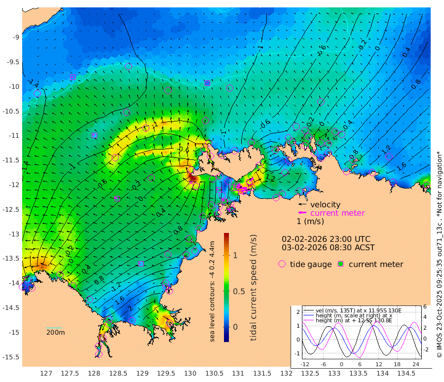 101cm/s 80T +4cm/s rms + 6cm/s 51T. Darwin_C1 52m 82cm/s 91T +4cm/s rms + 7cm/s -161T. Darwin_CW1 22m 59cm/s 69T +4cm/s rms + 8cm/s 61T. Darwin_CW2 34m 75cm/s 43T +3cm/s rms + 9cm/s 98T. Darwin_CW3 22m 92cm/s 89T +5cm/s rms + 7cm/s 88T. Darwin_C3 56m 46cm/s 64T +2cm/s rms + 9cm/s -126T. Darwin_CTbW 22m 10cm/s -20T +9cm/s rms + 2cm/s -110T. NWSLYN 196m 31cm/s -76T +1cm/s rms + 1cm/s -47T. DARBGF 30m 13cm/s -95T +7cm/s rms + 2cm/s -137T. ITFTIS 464m 21cm/s -48T +9cm/s rms + 1cm/s 74T. ITFMHB 146m 21cm/s -71T +4cm/s rms + 1cm/s -134T. ITFJBG 61m 40cm/s -63T +6cm/s rms + 4cm/s 121T. ITFFTB 108m 47cm/s -51T +4cm/s rms + 3cm/s 80T. NRSDAR 19m -104cm Carronade Island -103cm Guy Point -116cm Napier Broome Bay -8cm Lesueur Island 111cm Reveley Island 8cm Rocky Island 208cm Cape Domett 176cm Lacrosse Island 248cm Adolphus Island 217cm Pender Point 215cm Wyndham -80cm The Boxers -60cm Unnamed Shoal -134cm Loxton Shoal 234cm Pelican Island -102cm Calder Shoal -108cm Evans Shoal 318cm Quoin Island 191cm Port Keats 198cm Jones Point 261cm Catfish Island 86cm Cape Scott Offshore 80cm Cape Ford 105cm Anson Bay -89cm Goodrich Bank 85cm Peron Island North 69cm Point Jenny 65cm Native Point 88cm Fish Reef 99cm Tapa Bay -30cm Point Fawcett (Offshore) 125cm Burge Point 85cm Munkunuwa 38cm Beagle A 137cm Parsons Bank 113cm Fenton Patches -87cm Lynedoch Bank 144cm Hancox Shoal Area 132cm Nightcliff 159cm Darwin 121cm Charles Point Patches 145cm Glyde Point 167cm Chambers Bay 181cm Point Stuart 146cm Cape Hotham 145cm Christine Reef 199cm West Alligator Head 210cm East Field Island 132cm Two Hills Bay -27cm Newby Shoal 127cm Camp Point 95cm Medina Inlet South -39cm South Barlow Point -68cm St. Asaph Bay -88cm Cape Van Dieman -82cm Snake Bay -78cm Cache Point -146cm Echo Shoal -46cm Point Jahleel (Off) 26cm Cape Don -23cm Port Essington -27cm Smith Point - West -22cm NW Peacock Island -51cm North Of Jones Shoal -14cm Peacock Island 30cm Point David -15cm D'urville Point -16cm Money Shoal 39cm Copeland Island 48cm Cape Cockburn 20cm One Tree Point 53cm Hogmany Shoal 23cm New Year Island - West 33cm Grant Island 73cm Aurari Bay 109cm Cuthbert Point 71cm North Goulburn Island 127cm Paxie Shoal 163cm Entrance Island 223cm Yabooma Island