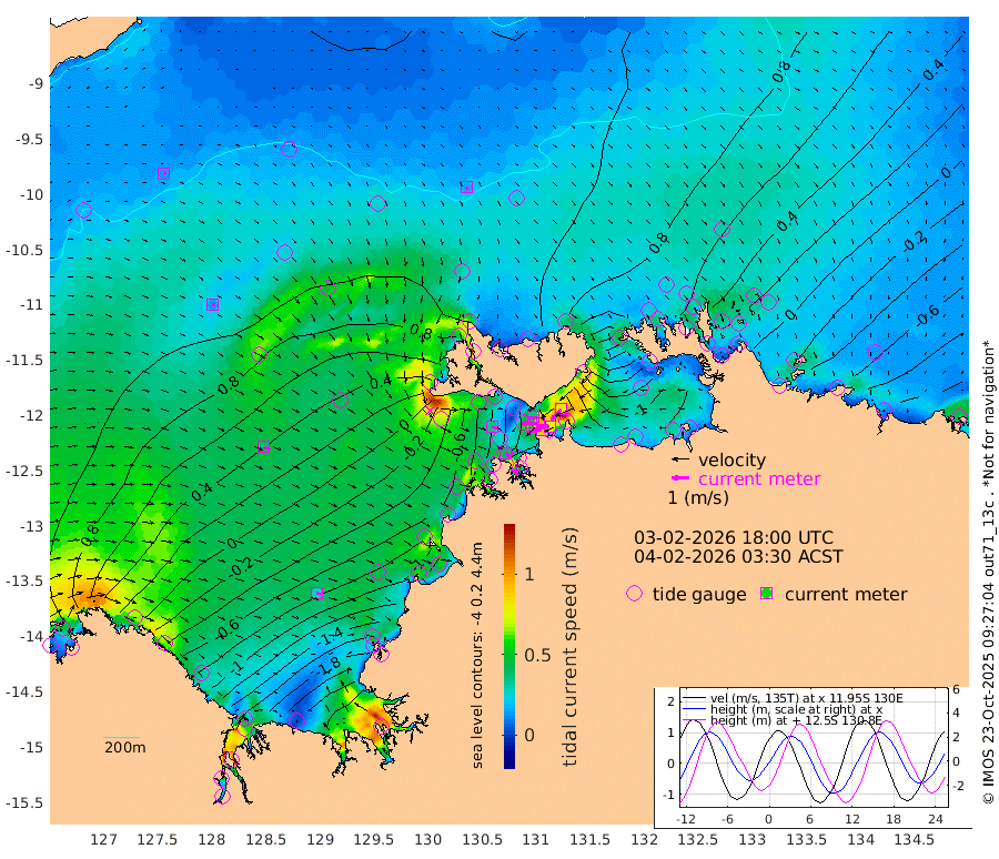 92cm/s -101T +4cm/s rms + 6cm/s 51T. Darwin_C1 52m 78cm/s -91T +4cm/s rms + 7cm/s -161T. Darwin_CW1 22m 50cm/s -107T +4cm/s rms + 8cm/s 61T. Darwin_CW2 34m 82cm/s -138T +3cm/s rms + 9cm/s 98T. Darwin_CW3 22m 96cm/s -91T +5cm/s rms + 7cm/s 88T. Darwin_C3 56m 36cm/s -115T +2cm/s rms + 9cm/s -126T. Darwin_CTbW 22m 16cm/s 152T +9cm/s rms + 2cm/s -110T. NWSLYN 196m 34cm/s 104T +1cm/s rms + 1cm/s -47T. DARBGF 30m 13cm/s 59T +7cm/s rms + 2cm/s -137T. ITFTIS 464m 15cm/s 99T +9cm/s rms + 1cm/s 74T. ITFMHB 146m 28cm/s 111T +4cm/s rms + 1cm/s -134T. ITFJBG 61m 39cm/s 111T +6cm/s rms + 4cm/s 121T. ITFFTB 108m 40cm/s 136T +4cm/s rms + 3cm/s 80T. NRSDAR 19m 56cm Carronade Island 55cm Guy Point 63cm Napier Broome Bay -22cm Lesueur Island -131cm Reveley Island -84cm Rocky Island -230cm Cape Domett -197cm Lacrosse Island -281cm Adolphus Island -263cm Pender Point -264cm Wyndham 65cm The Boxers 68cm Unnamed Shoal 106cm Loxton Shoal -238cm Pelican Island 81cm Calder Shoal 92cm Evans Shoal -343cm Quoin Island -186cm Port Keats -188cm Jones Point -274cm Catfish Island -79cm Cape Scott Offshore -64cm Cape Ford -84cm Anson Bay 86cm Goodrich Bank -72cm Peron Island North -59cm Point Jenny -56cm Native Point -78cm Fish Reef -83cm Tapa Bay 35cm Point Fawcett (Offshore) -112cm Burge Point -76cm Munkunuwa -39cm Beagle A -114cm Parsons Bank -108cm Fenton Patches 84cm Lynedoch Bank -121cm Hancox Shoal Area -118cm Nightcliff -135cm Darwin -95cm Charles Point Patches -131cm Glyde Point -163cm Chambers Bay -174cm Point Stuart -131cm Cape Hotham -146cm Christine Reef -198cm West Alligator Head -215cm East Field Island -123cm Two Hills Bay 12cm Newby Shoal -114cm Camp Point -82cm Medina Inlet South 43cm South Barlow Point 65cm St. Asaph Bay 88cm Cape Van Dieman 85cm Snake Bay 79cm Cache Point 111cm Echo Shoal 50cm Point Jahleel (Off) -9cm Cape Don 45cm Port Essington 44cm Smith Point - West 45cm NW Peacock Island 67cm North Of Jones Shoal 22cm Peacock Island 20cm Point David 42cm D'urville Point 50cm Money Shoal 12cm Copeland Island 13cm Cape Cockburn 24cm One Tree Point 11cm Hogmany Shoal 21cm New Year Island - West 13cm Grant Island -17cm Aurari Bay -44cm Cuthbert Point -12cm North Goulburn Island -50cm Paxie Shoal -89cm Entrance Island -127cm Yabooma Island
