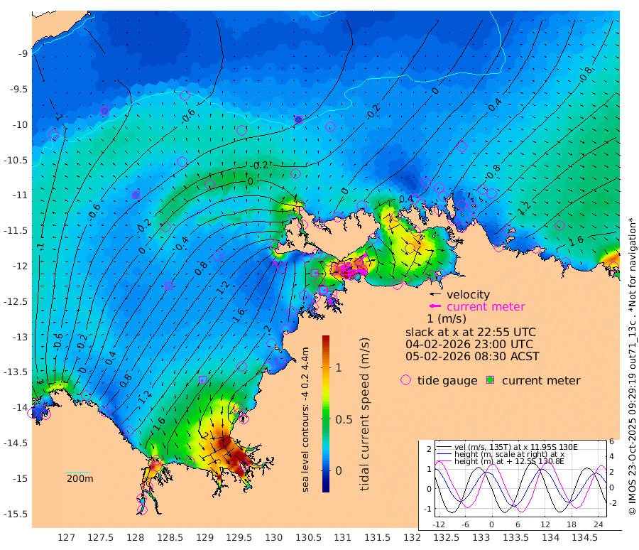 193cm/s 79T +4cm/s rms + 6cm/s 51T. Darwin_C1 52m 136cm/s 93T +4cm/s rms + 7cm/s -161T. Darwin_CW1 22m 112cm/s 72T +4cm/s rms + 8cm/s 61T. Darwin_CW2 34m 107cm/s 45T +3cm/s rms + 9cm/s 98T. Darwin_CW3 22m 170cm/s 89T +5cm/s rms + 7cm/s 88T. Darwin_C3 56m 91cm/s 66T +2cm/s rms + 9cm/s -126T. Darwin_CTbW 22m 3cm/s 62T +9cm/s rms + 2cm/s -110T. NWSLYN 196m 32cm/s 79T +1cm/s rms + 1cm/s -47T. DARBGF 30m 8cm/s -85T +7cm/s rms + 2cm/s -137T. ITFTIS 464m 9cm/s -89T +9cm/s rms + 1cm/s 74T. ITFMHB 146m 20cm/s -160T +4cm/s rms + 1cm/s -134T. ITFJBG 61m 12cm/s -107T +6cm/s rms + 4cm/s 121T. ITFFTB 108m 22cm/s 100T +4cm/s rms + 3cm/s 80T. NRSDAR 19m -130cm Carronade Island -130cm Guy Point -139cm Napier Broome Bay -1cm Lesueur Island 129cm Reveley Island 15cm Rocky Island 208cm Cape Domett 183cm Lacrosse Island 200cm Adolphus Island 112cm Pender Point 79cm Wyndham -10cm The Boxers 22cm Unnamed Shoal -79cm Loxton Shoal 251cm Pelican Island -24cm Calder Shoal -44cm Evans Shoal 255cm Quoin Island 250cm Port Keats 251cm Jones Point 201cm Catfish Island 188cm Cape Scott Offshore 204cm Cape Ford 220cm Anson Bay -20cm Goodrich Bank 196cm Peron Island North 179cm Point Jenny 176cm Native Point 202cm Fish Reef 212cm Tapa Bay 87cm Point Fawcett (Offshore) 226cm Burge Point 206cm Munkunuwa 140cm Beagle A 238cm Parsons Bank 207cm Fenton Patches -31cm Lynedoch Bank 231cm Hancox Shoal Area 233cm Nightcliff 260cm Darwin 232cm Charles Point Patches 180cm Glyde Point 137cm Chambers Bay 133cm Point Stuart 158cm Cape Hotham 115cm Christine Reef 139cm West Alligator Head 115cm East Field Island 125cm Two Hills Bay 59cm Newby Shoal 115cm Camp Point 213cm Medina Inlet South 68cm South Barlow Point 31cm St. Asaph Bay -12cm Cape Van Dieman -2cm Snake Bay -7cm Cache Point -107cm Echo Shoal 16cm Point Jahleel (Off) 76cm Cape Don 39cm Port Essington 36cm Smith Point - West 34cm NW Peacock Island 15cm North Of Jones Shoal 9cm Peacock Island 72cm Point David 44cm D'urville Point 31cm Money Shoal 77cm Copeland Island 100cm Cape Cockburn 68cm One Tree Point 93cm Hogmany Shoal 63cm New Year Island - West 73cm Grant Island 99cm Aurari Bay 119cm Cuthbert Point 102cm North Goulburn Island 133cm Paxie Shoal 147cm Entrance Island 181cm Yabooma Island