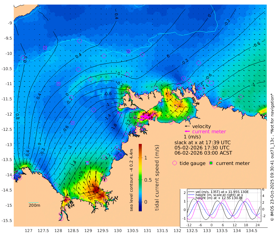 207cm/s -101T +4cm/s rms + 6cm/s 51T. Darwin_C1 52m 156cm/s -90T +4cm/s rms + 7cm/s -161T. Darwin_CW1 22m 111cm/s -106T +4cm/s rms + 8cm/s 61T. Darwin_CW2 34m 97cm/s -135T +3cm/s rms + 9cm/s 98T. Darwin_CW3 22m 171cm/s -91T +5cm/s rms + 7cm/s 88T. Darwin_C3 56m 113cm/s -115T +2cm/s rms + 9cm/s -126T. Darwin_CTbW 22m 8cm/s 170T +9cm/s rms + 2cm/s -110T. NWSLYN 196m 40cm/s -98T +1cm/s rms + 1cm/s -47T. DARBGF 30m 7cm/s 67T +7cm/s rms + 2cm/s -137T. ITFTIS 464m 11cm/s 51T +9cm/s rms + 1cm/s 74T. ITFMHB 146m 23cm/s 9T +4cm/s rms + 1cm/s -134T. ITFJBG 61m 12cm/s 46T +6cm/s rms + 4cm/s 121T. ITFFTB 108m 32cm/s -76T +4cm/s rms + 3cm/s 80T. NRSDAR 19m 107cm Carronade Island 110cm Guy Point 116cm Napier Broome Bay -24cm Lesueur Island -146cm Reveley Island -70cm Rocky Island -231cm Cape Domett -206cm Lacrosse Island -236cm Adolphus Island -127cm Pender Point -96cm Wyndham -10cm The Boxers -28cm Unnamed Shoal 57cm Loxton Shoal -267cm Pelican Island -1cm Calder Shoal 28cm Evans Shoal -277cm Quoin Island -271cm Port Keats -263cm Jones Point -212cm Catfish Island -202cm Cape Scott Offshore -221cm Cape Ford -230cm Anson Bay 6cm Goodrich Bank -214cm Peron Island North -198cm Point Jenny -194cm Native Point -224cm Fish Reef -226cm Tapa Bay -103cm Point Fawcett (Offshore) -247cm Burge Point -222cm Munkunuwa -173cm Beagle A -251cm Parsons Bank -237cm Fenton Patches 19cm Lynedoch Bank -242cm Hancox Shoal Area -254cm Nightcliff -274cm Darwin -245cm Charles Point Patches -191cm Glyde Point -143cm Chambers Bay -135cm Point Stuart -164cm Cape Hotham -125cm Christine Reef -142cm West Alligator Head -120cm East Field Island -130cm Two Hills Bay -97cm Newby Shoal -117cm Camp Point -230cm Medina Inlet South -87cm South Barlow Point -49cm St. Asaph Bay 1cm Cape Van Dieman -9cm Snake Bay -6cm Cache Point 83cm Echo Shoal -28cm Point Jahleel (Off) -81cm Cape Don -41cm Port Essington -44cm Smith Point - West -38cm NW Peacock Island -21cm North Of Jones Shoal -10cm Peacock Island -57cm Point David -47cm D'urville Point -27cm Money Shoal -61cm Copeland Island -87cm Cape Cockburn -58cm One Tree Point -68cm Hogmany Shoal -54cm New Year Island - West -61cm Grant Island -84cm Aurari Bay -98cm Cuthbert Point -84cm North Goulburn Island -95cm Paxie Shoal -117cm Entrance Island -137cm Yabooma Island