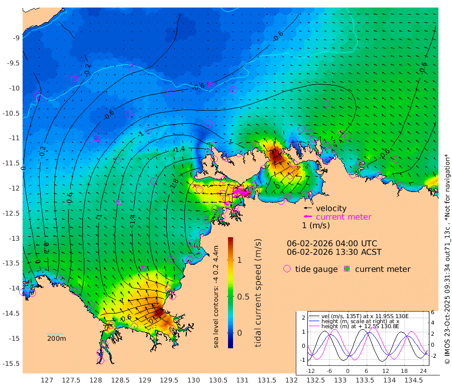 160cm/s -102T +4cm/s rms + 6cm/s 51T. Darwin_C1 52m 118cm/s -89T +4cm/s rms + 7cm/s -161T. Darwin_CW1 22m 112cm/s -108T +4cm/s rms + 8cm/s 61T. Darwin_CW2 34m 61cm/s -123T +3cm/s rms + 9cm/s 98T. Darwin_CW3 22m 140cm/s -92T +5cm/s rms + 7cm/s 88T. Darwin_C3 56m 89cm/s -115T +2cm/s rms + 9cm/s -126T. Darwin_CTbW 22m 6cm/s -42T +9cm/s rms + 2cm/s -110T. NWSLYN 196m 74cm/s -91T +1cm/s rms + 1cm/s -47T. DARBGF 30m 7cm/s -145T +7cm/s rms + 2cm/s -137T. ITFTIS 464m 7cm/s -29T +9cm/s rms + 1cm/s 74T. ITFMHB 146m 41cm/s -24T +4cm/s rms + 1cm/s -134T. ITFJBG 61m 31cm/s -46T +6cm/s rms + 4cm/s 121T. ITFFTB 108m 63cm/s -63T +4cm/s rms + 3cm/s 80T. NRSDAR 19m 99cm Carronade Island 105cm Guy Point 95cm Napier Broome Bay 7cm Lesueur Island -58cm Reveley Island -45cm Rocky Island -67cm Cape Domett -60cm Lacrosse Island -13cm Adolphus Island 84cm Pender Point 141cm Wyndham -74cm The Boxers -106cm Unnamed Shoal -27cm Loxton Shoal -100cm Pelican Island -72cm Calder Shoal -41cm Evans Shoal 4cm Quoin Island -160cm Port Keats -153cm Jones Point 78cm Catfish Island -166cm Cape Scott Offshore -223cm Cape Ford -198cm Anson Bay -68cm Goodrich Bank -177cm Peron Island North -184cm Point Jenny -189cm Native Point -192cm Fish Reef -203cm Tapa Bay -145cm Point Fawcett (Offshore) -199cm Burge Point -211cm Munkunuwa -170cm Beagle A -198cm Parsons Bank -191cm Fenton Patches -49cm Lynedoch Bank -176cm Hancox Shoal Area -194cm Nightcliff -208cm Darwin -208cm Charles Point Patches -97cm Glyde Point 7cm Chambers Bay 33cm Point Stuart -51cm Cape Hotham 10cm Christine Reef 48cm West Alligator Head 94cm East Field Island -11cm Two Hills Bay -122cm Newby Shoal -20cm Camp Point -206cm Medina Inlet South -142cm South Barlow Point -114cm St. Asaph Bay -76cm Cape Van Dieman -86cm Snake Bay -66cm Cache Point 7cm Echo Shoal -64cm Point Jahleel (Off) -67cm Cape Don -70cm Port Essington -69cm Smith Point - West -61cm NW Peacock Island -58cm North Of Jones Shoal -21cm Peacock Island -57cm Point David -68cm D'urville Point -51cm Money Shoal -52cm Copeland Island -64cm Cape Cockburn -57cm One Tree Point -52cm Hogmany Shoal -54cm New Year Island - West -55cm Grant Island -47cm Aurari Bay -33cm Cuthbert Point -49cm North Goulburn Island -28cm Paxie Shoal -13cm Entrance Island 19cm Yabooma Island