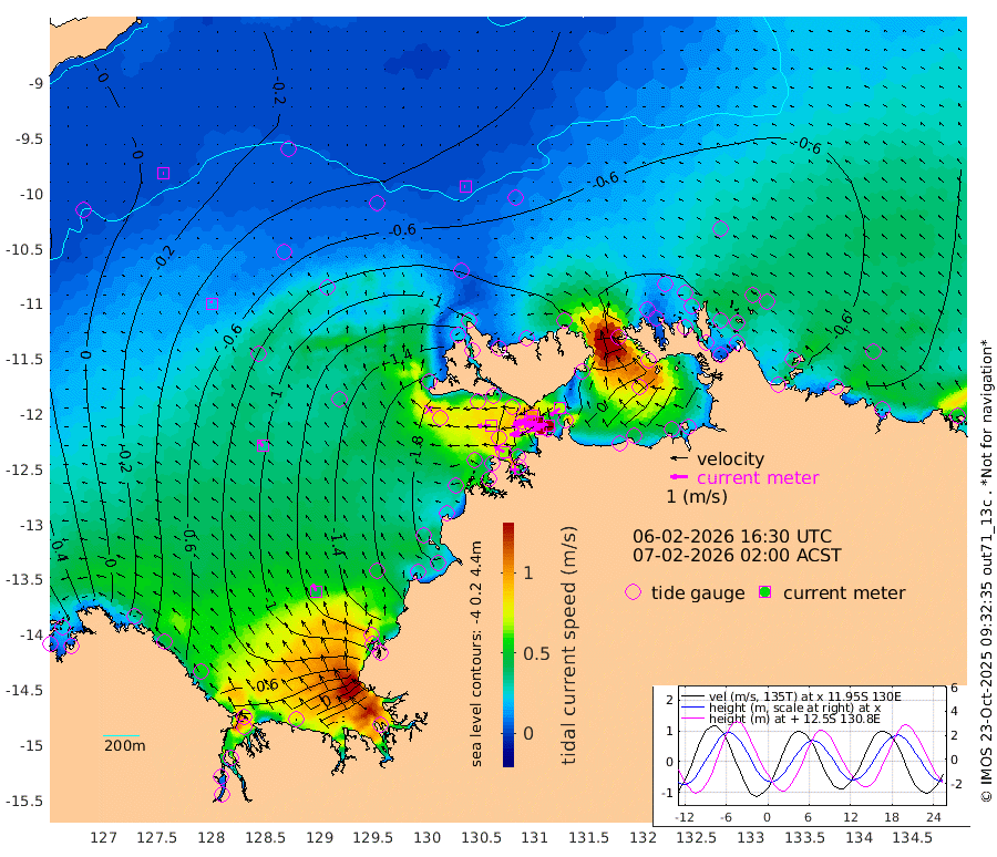 180cm/s -102T +4cm/s rms + 6cm/s 51T. Darwin_C1 52m 136cm/s -90T +4cm/s rms + 7cm/s -161T. Darwin_CW1 22m 112cm/s -108T +4cm/s rms + 8cm/s 61T. Darwin_CW2 34m 67cm/s -127T +3cm/s rms + 9cm/s 98T. Darwin_CW3 22m 142cm/s -92T +5cm/s rms + 7cm/s 88T. Darwin_C3 56m 101cm/s -115T +2cm/s rms + 9cm/s -126T. Darwin_CTbW 22m 4cm/s -76T +9cm/s rms + 2cm/s -110T. NWSLYN 196m 77cm/s -91T +1cm/s rms + 1cm/s -47T. DARBGF 30m 2cm/s -84T +7cm/s rms + 2cm/s -137T. ITFTIS 464m 16cm/s -6T +9cm/s rms + 1cm/s 74T. ITFMHB 146m 44cm/s -21T +4cm/s rms + 1cm/s -134T. ITFJBG 61m 34cm/s -40T +6cm/s rms + 4cm/s 121T. ITFFTB 108m 65cm/s -63T +4cm/s rms + 3cm/s 80T. NRSDAR 19m 103cm Carronade Island 104cm Guy Point 113cm Napier Broome Bay 4cm Lesueur Island -61cm Reveley Island -6cm Rocky Island -77cm Cape Domett -75cm Lacrosse Island -39cm Adolphus Island 92cm Pender Point 139cm Wyndham -58cm The Boxers -79cm Unnamed Shoal -16cm Loxton Shoal -117cm Pelican Island -67cm Calder Shoal -40cm Evans Shoal -25cm Quoin Island -173cm Port Keats -157cm Jones Point 48cm Catfish Island -179cm Cape Scott Offshore -226cm Cape Ford -209cm Anson Bay -62cm Goodrich Bank -196cm Peron Island North -193cm Point Jenny -192cm Native Point -205cm Fish Reef -210cm Tapa Bay -152cm Point Fawcett (Offshore) -209cm Burge Point -214cm Munkunuwa -181cm Beagle A -210cm Parsons Bank -203cm Fenton Patches -42cm Lynedoch Bank -194cm Hancox Shoal Area -216cm Nightcliff -218cm Darwin -216cm Charles Point Patches -110cm Glyde Point -15cm Chambers Bay 12cm Point Stuart -72cm Cape Hotham -12cm Christine Reef 25cm West Alligator Head 70cm East Field Island -30cm Two Hills Bay -123cm Newby Shoal -29cm Camp Point -213cm Medina Inlet South -143cm South Barlow Point -116cm St. Asaph Bay -70cm Cape Van Dieman -79cm Snake Bay -67cm Cache Point 12cm Echo Shoal -69cm Point Jahleel (Off) -75cm Cape Don -75cm Port Essington -80cm Smith Point - West -71cm NW Peacock Island -71cm North Of Jones Shoal -26cm Peacock Island -67cm Point David -79cm D'urville Point -59cm Money Shoal -66cm Copeland Island -89cm Cape Cockburn -70cm One Tree Point -65cm Hogmany Shoal -63cm New Year Island - West -65cm Grant Island -66cm Aurari Bay -52cm Cuthbert Point -68cm North Goulburn Island -42cm Paxie Shoal -36cm Entrance Island -22cm Yabooma Island
