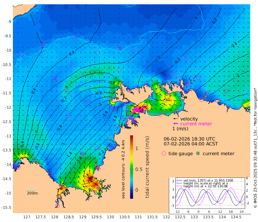 183cm/s -101T +4cm/s rms + 6cm/s 51T. Darwin_C1 52m 139cm/s -91T +4cm/s rms + 7cm/s -161T. Darwin_CW1 22m 97cm/s -105T +4cm/s rms + 8cm/s 61T. Darwin_CW2 34m 92cm/s -136T +3cm/s rms + 9cm/s 98T. Darwin_CW3 22m 164cm/s -91T +5cm/s rms + 7cm/s 88T. Darwin_C3 56m 100cm/s -115T +2cm/s rms + 9cm/s -126T. Darwin_CTbW 22m 9cm/s 172T +9cm/s rms + 2cm/s -110T. NWSLYN 196m 22cm/s -108T +1cm/s rms + 1cm/s -47T. DARBGF 30m 9cm/s 72T +7cm/s rms + 2cm/s -137T. ITFTIS 464m 10cm/s 72T +9cm/s rms + 1cm/s 74T. ITFMHB 146m 15cm/s 44T +4cm/s rms + 1cm/s -134T. ITFJBG 61m 17cm/s 90T +6cm/s rms + 4cm/s 121T. ITFFTB 108m 14cm/s -103T +4cm/s rms + 3cm/s 80T. NRSDAR 19m 66cm Carronade Island 68cm Guy Point 71cm Napier Broome Bay -50cm Lesueur Island -160cm Reveley Island -81cm Rocky Island -253cm Cape Domett -227cm Lacrosse Island -273cm Adolphus Island -192cm Pender Point -176cm Wyndham -10cm The Boxers -21cm Unnamed Shoal 50cm Loxton Shoal -278cm Pelican Island 2cm Calder Shoal 27cm Evans Shoal -331cm Quoin Island -262cm Port Keats -254cm Jones Point -288cm Catfish Island -188cm Cape Scott Offshore -172cm Cape Ford -209cm Anson Bay 13cm Goodrich Bank -194cm Peron Island North -172cm Point Jenny -167cm Native Point -197cm Fish Reef -199cm Tapa Bay -84cm Point Fawcett (Offshore) -220cm Burge Point -189cm Munkunuwa -146cm Beagle A -225cm Parsons Bank -210cm Fenton Patches 20cm Lynedoch Bank -222cm Hancox Shoal Area -231cm Nightcliff -251cm Darwin -221cm Charles Point Patches -191cm Glyde Point -168cm Chambers Bay -165cm Point Stuart -173cm Cape Hotham -148cm Christine Reef -178cm West Alligator Head -167cm East Field Island -149cm Two Hills Bay -87cm Newby Shoal -133cm Camp Point -204cm Medina Inlet South -66cm South Barlow Point -33cm St. Asaph Bay 10cm Cape Van Dieman -1cm Snake Bay 0cm Cache Point 70cm Echo Shoal -24cm Point Jahleel (Off) -81cm Cape Don -36cm Port Essington -38cm Smith Point - West -34cm NW Peacock Island -19cm North Of Jones Shoal -9cm Peacock Island -55cm Point David -41cm D'urville Point -26cm Money Shoal -60cm Copeland Island -87cm Cape Cockburn -58cm One Tree Point -70cm Hogmany Shoal -55cm New Year Island - West -61cm Grant Island -86cm Aurari Bay -104cm Cuthbert Point -87cm North Goulburn Island -106cm Paxie Shoal -129cm Entrance Island -155cm Yabooma Island