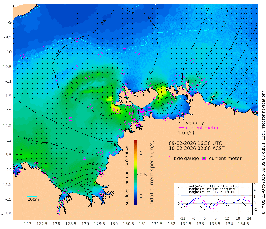 42cm/s -103T +4cm/s rms + 6cm/s 51T. Darwin_C1 52m 25cm/s -87T +4cm/s rms + 7cm/s -161T. Darwin_CW1 22m 34cm/s -108T +4cm/s rms + 8cm/s 61T. Darwin_CW2 34m 6cm/s -79T +3cm/s rms + 9cm/s 98T. Darwin_CW3 22m 27cm/s -97T +5cm/s rms + 7cm/s 88T. Darwin_C3 56m 26cm/s -116T +2cm/s rms + 9cm/s -126T. Darwin_CTbW 22m 7cm/s -44T +9cm/s rms + 2cm/s -110T. NWSLYN 196m 49cm/s -88T +1cm/s rms + 1cm/s -47T. DARBGF 30m 7cm/s -96T +7cm/s rms + 2cm/s -137T. ITFTIS 464m 17cm/s -25T +9cm/s rms + 1cm/s 74T. ITFMHB 146m 30cm/s -30T +4cm/s rms + 1cm/s -134T. ITFJBG 61m 33cm/s -51T +6cm/s rms + 4cm/s 121T. ITFFTB 108m 52cm/s -57T +4cm/s rms + 3cm/s 80T. NRSDAR 19m 22cm Carronade Island 15cm Guy Point 29cm Napier Broome Bay 3cm Lesueur Island 7cm Reveley Island 23cm Rocky Island 42cm Cape Domett 32cm Lacrosse Island 81cm Adolphus Island 139cm Pender Point 173cm Wyndham -57cm The Boxers -57cm Unnamed Shoal -64cm Loxton Shoal 30cm Pelican Island -77cm Calder Shoal -65cm Evans Shoal 134cm Quoin Island -21cm Port Keats -6cm Jones Point 236cm Catfish Island -57cm Cape Scott Offshore -138cm Cape Ford -65cm Anson Bay -71cm Goodrich Bank -65cm Peron Island North -78cm Point Jenny -81cm Native Point -67cm Fish Reef -80cm Tapa Bay -88cm Point Fawcett (Offshore) -66cm Burge Point -89cm Munkunuwa -81cm Beagle A -60cm Parsons Bank -66cm Fenton Patches -55cm Lynedoch Bank -52cm Hancox Shoal Area -65cm Nightcliff -53cm Darwin -70cm Charles Point Patches 8cm Glyde Point 75cm Chambers Bay 103cm Point Stuart 32cm Cape Hotham 63cm Christine Reef 119cm West Alligator Head 150cm East Field Island 58cm Two Hills Bay -69cm Newby Shoal 44cm Camp Point -75cm Medina Inlet South -92cm South Barlow Point -91cm St. Asaph Bay -75cm Cape Van Dieman -74cm Snake Bay -64cm Cache Point -50cm Echo Shoal -52cm Point Jahleel (Off) -17cm Cape Don -40cm Port Essington -45cm Smith Point - West -39cm NW Peacock Island -48cm North Of Jones Shoal -15cm Peacock Island -16cm Point David -40cm D'urville Point -29cm Money Shoal -11cm Copeland Island -10cm Cape Cockburn -16cm One Tree Point -8cm Hogmany Shoal -13cm New Year Island - West -12cm Grant Island 13cm Aurari Bay 35cm Cuthbert Point 6cm North Goulburn Island 44cm Paxie Shoal 61cm Entrance Island 96cm Yabooma Island