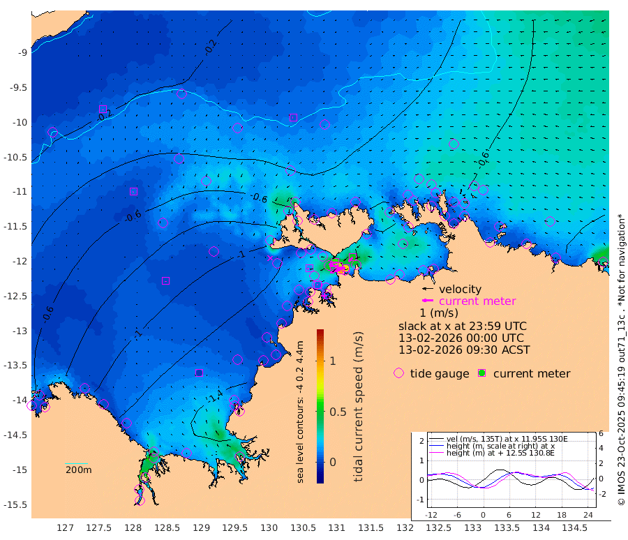 95cm/s -102T +4cm/s rms + 6cm/s 51T. Darwin_C1 52m 85cm/s -91T +4cm/s rms + 7cm/s -161T. Darwin_CW1 22m 39cm/s -105T +4cm/s rms + 8cm/s 61T. Darwin_CW2 34m 51cm/s -137T +3cm/s rms + 9cm/s 98T. Darwin_CW3 22m 68cm/s -89T +5cm/s rms + 7cm/s 88T. Darwin_C3 56m 60cm/s -115T +2cm/s rms + 9cm/s -126T. Darwin_CTbW 22m 4cm/s -109T +9cm/s rms + 2cm/s -110T. NWSLYN 196m 14cm/s -101T +1cm/s rms + 1cm/s -47T. DARBGF 30m 7cm/s 177T +7cm/s rms + 2cm/s -137T. ITFTIS 464m 6cm/s -164T +9cm/s rms + 1cm/s 74T. ITFMHB 146m 0cm/s -73T +4cm/s rms + 1cm/s -134T. ITFJBG 61m 3cm/s -162T +6cm/s rms + 4cm/s 121T. ITFFTB 108m 7cm/s -77T +4cm/s rms + 3cm/s 80T. NRSDAR 19m -62cm Carronade Island -60cm Guy Point -69cm Napier Broome Bay -107cm Lesueur Island -108cm Reveley Island -43cm Rocky Island -139cm Cape Domett -143cm Lacrosse Island -135cm Adolphus Island -124cm Pender Point -134cm Wyndham -65cm The Boxers -80cm Unnamed Shoal -25cm Loxton Shoal -143cm Pelican Island -50cm Calder Shoal -23cm Evans Shoal -167cm Quoin Island -133cm Port Keats -131cm Jones Point -231cm Catfish Island -118cm Cape Scott Offshore -76cm Cape Ford -127cm Anson Bay -30cm Goodrich Bank -109cm Peron Island North -106cm Point Jenny -105cm Native Point -111cm Fish Reef -116cm Tapa Bay -77cm Point Fawcett (Offshore) -114cm Burge Point -88cm Munkunuwa -99cm Beagle A -104cm Parsons Bank -116cm Fenton Patches -28cm Lynedoch Bank -113cm Hancox Shoal Area -125cm Nightcliff -126cm Darwin -121cm Charles Point Patches -111cm Glyde Point -108cm Chambers Bay -106cm Point Stuart -103cm Cape Hotham -95cm Christine Reef -113cm West Alligator Head -114cm East Field Island -96cm Two Hills Bay -91cm Newby Shoal -96cm Camp Point -109cm Medina Inlet South -56cm South Barlow Point -49cm St. Asaph Bay -32cm Cape Van Dieman -37cm Snake Bay -39cm Cache Point -26cm Echo Shoal -44cm Point Jahleel (Off) -66cm Cape Don -44cm Port Essington -43cm Smith Point - West -42cm NW Peacock Island -41cm North Of Jones Shoal -15cm Peacock Island -51cm Point David -43cm D'urville Point -42cm Money Shoal -50cm Copeland Island -67cm Cape Cockburn -53cm One Tree Point -65cm Hogmany Shoal -59cm New Year Island - West -55cm Grant Island -66cm Aurari Bay -67cm Cuthbert Point -61cm North Goulburn Island -78cm Paxie Shoal -71cm Entrance Island -76cm Yabooma Island