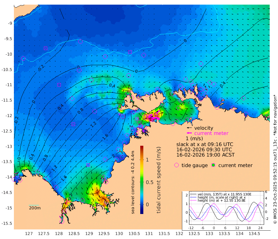 172cm/s 78T +4cm/s rms + 6cm/s 51T. Darwin_C1 52m 145cm/s 93T +4cm/s rms + 7cm/s -161T. Darwin_CW1 22m 109cm/s 72T +4cm/s rms + 8cm/s 61T. Darwin_CW2 34m 101cm/s 46T +3cm/s rms + 9cm/s 98T. Darwin_CW3 22m 164cm/s 89T +5cm/s rms + 7cm/s 88T. Darwin_C3 56m 90cm/s 66T +2cm/s rms + 9cm/s -126T. Darwin_CTbW 22m 6cm/s 6T +9cm/s rms + 2cm/s -110T. NWSLYN 196m 26cm/s 72T +1cm/s rms + 1cm/s -47T. DARBGF 30m 4cm/s -43T +7cm/s rms + 2cm/s -137T. ITFTIS 464m 4cm/s -108T +9cm/s rms + 1cm/s 74T. ITFMHB 146m 12cm/s -146T +4cm/s rms + 1cm/s -134T. ITFJBG 61m 8cm/s -88T +6cm/s rms + 4cm/s 121T. ITFFTB 108m 14cm/s 91T +4cm/s rms + 3cm/s 80T. NRSDAR 19m -11cm Carronade Island -9cm Guy Point -6cm Napier Broome Bay 86cm Lesueur Island 173cm Reveley Island 113cm Rocky Island 262cm Cape Domett 238cm Lacrosse Island 272cm Adolphus Island 216cm Pender Point 197cm Wyndham 50cm The Boxers 42cm Unnamed Shoal -10cm Loxton Shoal 275cm Pelican Island 33cm Calder Shoal -5cm Evans Shoal 317cm Quoin Island 273cm Port Keats 254cm Jones Point 254cm Catfish Island 198cm Cape Scott Offshore 200cm Cape Ford 218cm Anson Bay 8cm Goodrich Bank 186cm Peron Island North 190cm Point Jenny 188cm Native Point 202cm Fish Reef 213cm Tapa Bay 100cm Point Fawcett (Offshore) 231cm Burge Point 196cm Munkunuwa 169cm Beagle A 213cm Parsons Bank 225cm Fenton Patches -1cm Lynedoch Bank 216cm Hancox Shoal Area 237cm Nightcliff 248cm Darwin 229cm Charles Point Patches 181cm Glyde Point 151cm Chambers Bay 134cm Point Stuart 148cm Cape Hotham 138cm Christine Reef 144cm West Alligator Head 137cm East Field Island 119cm Two Hills Bay 121cm Newby Shoal 130cm Camp Point 211cm Medina Inlet South 81cm South Barlow Point 56cm St. Asaph Bay 9cm Cape Van Dieman 13cm Snake Bay 13cm Cache Point -27cm Echo Shoal 28cm Point Jahleel (Off) 70cm Cape Don 27cm Port Essington 26cm Smith Point - West 18cm NW Peacock Island 13cm North Of Jones Shoal 4cm Peacock Island 19cm Point David 21cm D'urville Point 14cm Money Shoal 20cm Copeland Island 31cm Cape Cockburn 24cm One Tree Point 21cm Hogmany Shoal 25cm New Year Island - West 25cm Grant Island 37cm Aurari Bay 46cm Cuthbert Point 37cm North Goulburn Island 56cm Paxie Shoal 59cm Entrance Island 65cm Yabooma Island