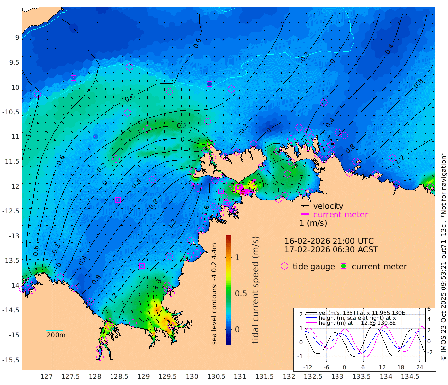 124cm/s 78T +4cm/s rms + 6cm/s 51T. Darwin_C1 52m 88cm/s 92T +4cm/s rms + 7cm/s -161T. Darwin_CW1 22m 68cm/s 72T +4cm/s rms + 8cm/s 61T. Darwin_CW2 34m 78cm/s 42T +3cm/s rms + 9cm/s 98T. Darwin_CW3 22m 96cm/s 89T +5cm/s rms + 7cm/s 88T. Darwin_C3 56m 59cm/s 65T +2cm/s rms + 9cm/s -126T. Darwin_CTbW 22m 3cm/s 7T +9cm/s rms + 2cm/s -110T. NWSLYN 196m 17cm/s 79T +1cm/s rms + 1cm/s -47T. DARBGF 30m 7cm/s -66T +7cm/s rms + 2cm/s -137T. ITFTIS 464m 10cm/s -40T +9cm/s rms + 1cm/s 74T. ITFMHB 146m 14cm/s -162T +4cm/s rms + 1cm/s -134T. ITFJBG 61m 10cm/s -83T +6cm/s rms + 4cm/s 121T. ITFFTB 108m 15cm/s 101T +4cm/s rms + 3cm/s 80T. NRSDAR 19m -112cm Carronade Island -114cm Guy Point -123cm Napier Broome Bay -8cm Lesueur Island 82cm Reveley Island -22cm Rocky Island 134cm Cape Domett 124cm Lacrosse Island 133cm Adolphus Island 67cm Pender Point 48cm Wyndham -28cm The Boxers 14cm Unnamed Shoal -85cm Loxton Shoal 173cm Pelican Island -42cm Calder Shoal -62cm Evans Shoal 173cm Quoin Island 170cm Port Keats 173cm Jones Point 128cm Catfish Island 121cm Cape Scott Offshore 98cm Cape Ford 150cm Anson Bay -34cm Goodrich Bank 116cm Peron Island North 112cm Point Jenny 112cm Native Point 123cm Fish Reef 142cm Tapa Bay 35cm Point Fawcett (Offshore) 146cm Burge Point 127cm Munkunuwa 87cm Beagle A 153cm Parsons Bank 141cm Fenton Patches -41cm Lynedoch Bank 158cm Hancox Shoal Area 165cm Nightcliff 173cm Darwin 150cm Charles Point Patches 123cm Glyde Point 97cm Chambers Bay 91cm Point Stuart 107cm Cape Hotham 79cm Christine Reef 95cm West Alligator Head 84cm East Field Island 79cm Two Hills Bay 20cm Newby Shoal 85cm Camp Point 133cm Medina Inlet South 25cm South Barlow Point -1cm St. Asaph Bay -29cm Cape Van Dieman -20cm Snake Bay -28cm Cache Point -99cm Echo Shoal -8cm Point Jahleel (Off) 35cm Cape Don 6cm Port Essington 5cm Smith Point - West 6cm NW Peacock Island -12cm North Of Jones Shoal -1cm Peacock Island 46cm Point David 14cm D'urville Point 9cm Money Shoal 50cm Copeland Island 54cm Cape Cockburn 35cm One Tree Point 55cm Hogmany Shoal 40cm New Year Island - West 43cm Grant Island 75cm Aurari Bay 81cm Cuthbert Point 65cm North Goulburn Island 98cm Paxie Shoal 112cm Entrance Island 143cm Yabooma Island