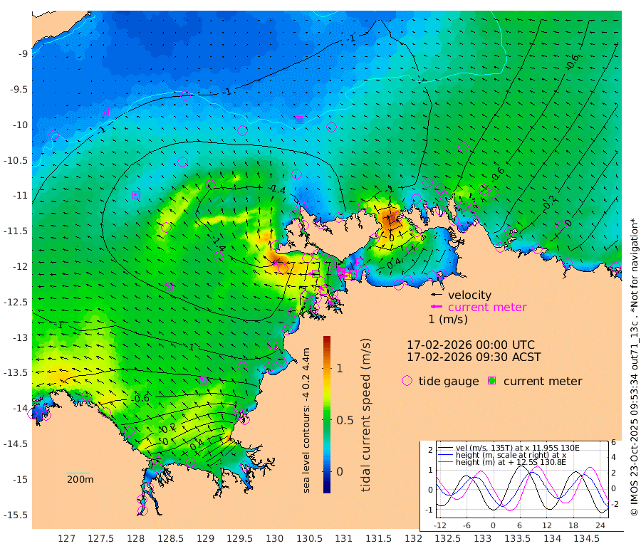 82cm/s -103T +4cm/s rms + 6cm/s 51T. Darwin_C1 52m 34cm/s -84T +4cm/s rms + 7cm/s -161T. Darwin_CW1 22m 34cm/s -107T +4cm/s rms + 8cm/s 61T. Darwin_CW2 34m 18cm/s -106T +3cm/s rms + 9cm/s 98T. Darwin_CW3 22m 25cm/s -93T +5cm/s rms + 7cm/s 88T. Darwin_C3 56m 55cm/s -117T +2cm/s rms + 9cm/s -126T. Darwin_CTbW 22m 11cm/s -35T +9cm/s rms + 2cm/s -110T. NWSLYN 196m 64cm/s -88T +1cm/s rms + 1cm/s -47T. DARBGF 30m 12cm/s -122T +7cm/s rms + 2cm/s -137T. ITFTIS 464m 18cm/s -43T +9cm/s rms + 1cm/s 74T. ITFMHB 146m 38cm/s -37T +4cm/s rms + 1cm/s -134T. ITFJBG 61m 46cm/s -57T +6cm/s rms + 4cm/s 121T. ITFFTB 108m 67cm/s -56T +4cm/s rms + 3cm/s 80T. NRSDAR 19m -50cm Carronade Island -47cm Guy Point -58cm Napier Broome Bay -41cm Lesueur Island -9cm Reveley Island -35cm Rocky Island 37cm Cape Domett 25cm Lacrosse Island 95cm Adolphus Island 145cm Pender Point 173cm Wyndham -119cm The Boxers -118cm Unnamed Shoal -102cm Loxton Shoal 34cm Pelican Island -124cm Calder Shoal -99cm Evans Shoal 173cm Quoin Island -35cm Port Keats -21cm Jones Point 183cm Catfish Island -84cm Cape Scott Offshore -183cm Cape Ford -94cm Anson Bay -110cm Goodrich Bank -96cm Peron Island North -131cm Point Jenny -133cm Native Point -114cm Fish Reef -117cm Tapa Bay -137cm Point Fawcett (Offshore) -109cm Burge Point -115cm Munkunuwa -139cm Beagle A -89cm Parsons Bank -112cm Fenton Patches -90cm Lynedoch Bank -74cm Hancox Shoal Area -92cm Nightcliff -78cm Darwin -102cm Charles Point Patches -20cm Glyde Point 56cm Chambers Bay 81cm Point Stuart 12cm Cape Hotham 33cm Christine Reef 100cm West Alligator Head 133cm East Field Island 31cm Two Hills Bay -148cm Newby Shoal 21cm Camp Point -109cm Medina Inlet South -133cm South Barlow Point -131cm St. Asaph Bay -116cm Cape Van Dieman -111cm Snake Bay -109cm Cache Point -86cm Echo Shoal -89cm Point Jahleel (Off) -59cm Cape Don -81cm Port Essington -86cm Smith Point - West -78cm NW Peacock Island -82cm North Of Jones Shoal -27cm Peacock Island -46cm Point David -80cm D'urville Point -67cm Money Shoal -39cm Copeland Island -53cm Cape Cockburn -49cm One Tree Point -46cm Hogmany Shoal -50cm New Year Island - West -48cm Grant Island -16cm Aurari Bay -5cm Cuthbert Point -25cm North Goulburn Island 16cm Paxie Shoal 36cm Entrance Island 87cm Yabooma Island