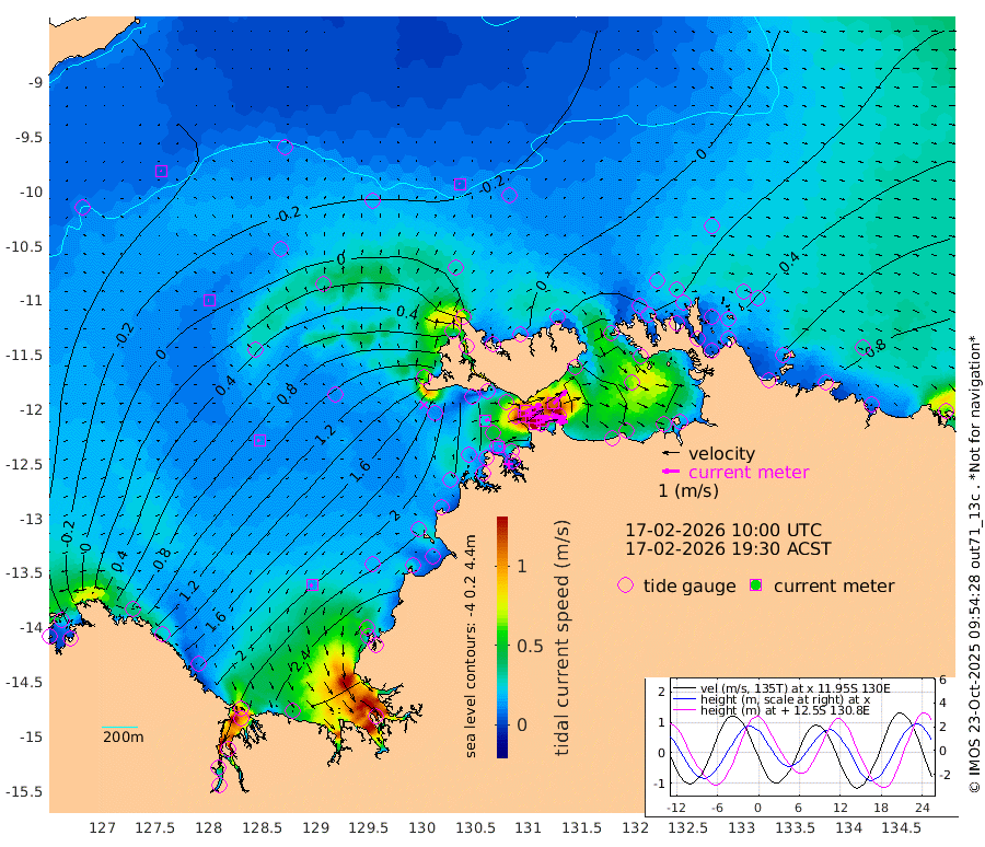 191cm/s 78T +4cm/s rms + 6cm/s 51T. Darwin_C1 52m 150cm/s 93T +4cm/s rms + 7cm/s -161T. Darwin_CW1 22m 121cm/s 72T +4cm/s rms + 8cm/s 61T. Darwin_CW2 34m 113cm/s 46T +3cm/s rms + 9cm/s 98T. Darwin_CW3 22m 183cm/s 89T +5cm/s rms + 7cm/s 88T. Darwin_C3 56m 98cm/s 66T +2cm/s rms + 9cm/s -126T. Darwin_CTbW 22m 7cm/s -2T +9cm/s rms + 2cm/s -110T. NWSLYN 196m 26cm/s 69T +1cm/s rms + 1cm/s -47T. DARBGF 30m 5cm/s -60T +7cm/s rms + 2cm/s -137T. ITFTIS 464m 6cm/s -92T +9cm/s rms + 1cm/s 74T. ITFMHB 146m 14cm/s -135T +4cm/s rms + 1cm/s -134T. ITFJBG 61m 12cm/s -82T +6cm/s rms + 4cm/s 121T. ITFFTB 108m 14cm/s 81T +4cm/s rms + 3cm/s 80T. NRSDAR 19m -32cm Carronade Island -30cm Guy Point -26cm Napier Broome Bay 79cm Lesueur Island 188cm Reveley Island 121cm Rocky Island 290cm Cape Domett 259cm Lacrosse Island 303cm Adolphus Island 240cm Pender Point 217cm Wyndham 39cm The Boxers 36cm Unnamed Shoal -27cm Loxton Shoal 303cm Pelican Island 22cm Calder Shoal -19cm Evans Shoal 354cm Quoin Island 301cm Port Keats 279cm Jones Point 263cm Catfish Island 212cm Cape Scott Offshore 205cm Cape Ford 236cm Anson Bay -3cm Goodrich Bank 200cm Peron Island North 203cm Point Jenny 201cm Native Point 215cm Fish Reef 230cm Tapa Bay 97cm Point Fawcett (Offshore) 254cm Burge Point 215cm Munkunuwa 177cm Beagle A 238cm Parsons Bank 244cm Fenton Patches -12cm Lynedoch Bank 239cm Hancox Shoal Area 262cm Nightcliff 274cm Darwin 247cm Charles Point Patches 200cm Glyde Point 167cm Chambers Bay 150cm Point Stuart 164cm Cape Hotham 154cm Christine Reef 162cm West Alligator Head 153cm East Field Island 132cm Two Hills Bay 122cm Newby Shoal 143cm Camp Point 230cm Medina Inlet South 80cm South Barlow Point 49cm St. Asaph Bay -2cm Cape Van Dieman 5cm Snake Bay 2cm Cache Point -49cm Echo Shoal 22cm Point Jahleel (Off) 73cm Cape Don 23cm Port Essington 22cm Smith Point - West 14cm NW Peacock Island 6cm North Of Jones Shoal 3cm Peacock Island 22cm Point David 19cm D'urville Point 10cm Money Shoal 24cm Copeland Island 36cm Cape Cockburn 27cm One Tree Point 24cm Hogmany Shoal 27cm New Year Island - West 29cm Grant Island 44cm Aurari Bay 57cm Cuthbert Point 45cm North Goulburn Island 70cm Paxie Shoal 78cm Entrance Island 88cm Yabooma Island