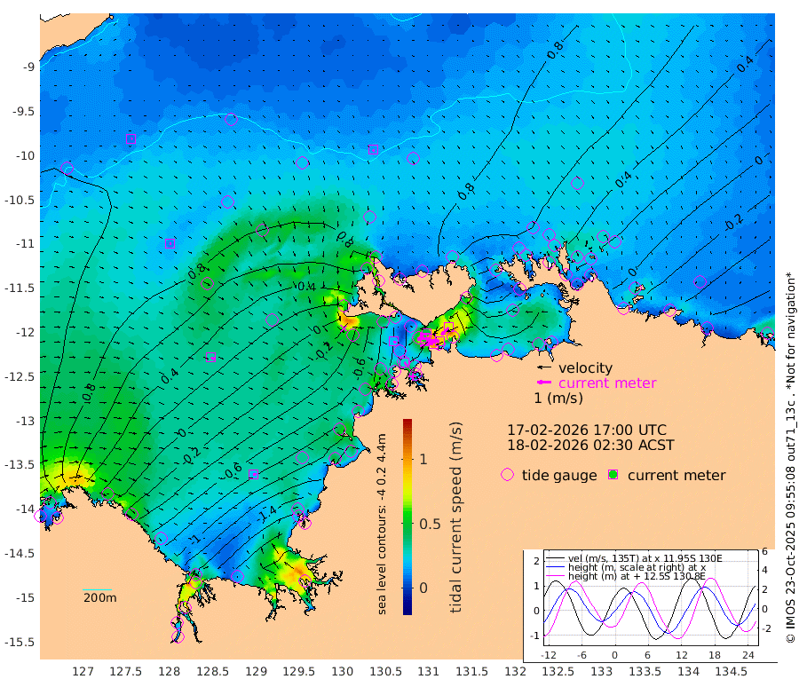 98cm/s -100T +4cm/s rms + 6cm/s 51T. Darwin_C1 52m 90cm/s -92T +4cm/s rms + 7cm/s -161T. Darwin_CW1 22m 54cm/s -107T +4cm/s rms + 8cm/s 61T. Darwin_CW2 34m 73cm/s -137T +3cm/s rms + 9cm/s 98T. Darwin_CW3 22m 98cm/s -91T +5cm/s rms + 7cm/s 88T. Darwin_C3 56m 45cm/s -115T +2cm/s rms + 9cm/s -126T. Darwin_CTbW 22m 14cm/s 155T +9cm/s rms + 2cm/s -110T. NWSLYN 196m 20cm/s 111T +1cm/s rms + 1cm/s -47T. DARBGF 30m 10cm/s 58T +7cm/s rms + 2cm/s -137T. ITFTIS 464m 12cm/s 97T +9cm/s rms + 1cm/s 74T. ITFMHB 146m 20cm/s 101T +4cm/s rms + 1cm/s -134T. ITFJBG 61m 30cm/s 110T +6cm/s rms + 4cm/s 121T. ITFFTB 108m 26cm/s 142T +4cm/s rms + 3cm/s 80T. NRSDAR 19m 69cm Carronade Island 67cm Guy Point 73cm Napier Broome Bay -12cm Lesueur Island -109cm Reveley Island -58cm Rocky Island -200cm Cape Domett -176cm Lacrosse Island -240cm Adolphus Island -212cm Pender Point -211cm Wyndham 56cm The Boxers 55cm Unnamed Shoal 89cm Loxton Shoal -209cm Pelican Island 65cm Calder Shoal 79cm Evans Shoal -315cm Quoin Island -174cm Port Keats -164cm Jones Point -248cm Catfish Island -89cm Cape Scott Offshore -17cm Cape Ford -100cm Anson Bay 75cm Goodrich Bank -76cm Peron Island North -58cm Point Jenny -55cm Native Point -77cm Fish Reef -83cm Tapa Bay 19cm Point Fawcett (Offshore) -104cm Burge Point -81cm Munkunuwa -39cm Beagle A -106cm Parsons Bank -99cm Fenton Patches 70cm Lynedoch Bank -114cm Hancox Shoal Area -125cm Nightcliff -132cm Darwin -96cm Charles Point Patches -112cm Glyde Point -131cm Chambers Bay -133cm Point Stuart -108cm Cape Hotham -112cm Christine Reef -152cm West Alligator Head -162cm East Field Island -95cm Two Hills Bay 10cm Newby Shoal -92cm Camp Point -88cm Medina Inlet South 27cm South Barlow Point 47cm St. Asaph Bay 77cm Cape Van Dieman 69cm Snake Bay 71cm Cache Point 93cm Echo Shoal 45cm Point Jahleel (Off) -4cm Cape Don 43cm Port Essington 44cm Smith Point - West 46cm NW Peacock Island 53cm North Of Jones Shoal 17cm Peacock Island 25cm Point David 43cm D'urville Point 47cm Money Shoal 19cm Copeland Island 22cm Cape Cockburn 24cm One Tree Point 32cm Hogmany Shoal 25cm New Year Island - West 22cm Grant Island -9cm Aurari Bay -18cm Cuthbert Point -1cm North Goulburn Island -35cm Paxie Shoal -54cm Entrance Island -89cm Yabooma Island