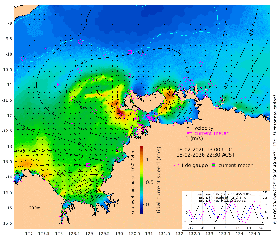 37cm/s -102T +4cm/s rms + 6cm/s 51T. Darwin_C1 52m 6cm/s -69T +4cm/s rms + 7cm/s -161T. Darwin_CW1 22m 9cm/s -117T +4cm/s rms + 8cm/s 61T. Darwin_CW2 34m 15cm/s 17T +3cm/s rms + 9cm/s 98T. Darwin_CW3 22m 24cm/s 98T +5cm/s rms + 7cm/s 88T. Darwin_C3 56m 25cm/s -120T +2cm/s rms + 9cm/s -126T. Darwin_CTbW 22m 8cm/s -21T +9cm/s rms + 2cm/s -110T. NWSLYN 196m 65cm/s -84T +1cm/s rms + 1cm/s -47T. DARBGF 30m 8cm/s -86T +7cm/s rms + 2cm/s -137T. ITFTIS 464m 20cm/s -29T +9cm/s rms + 1cm/s 74T. ITFMHB 146m 51cm/s -34T +4cm/s rms + 1cm/s -134T. ITFJBG 61m 52cm/s -51T +6cm/s rms + 4cm/s 121T. ITFFTB 108m 72cm/s -53T +4cm/s rms + 3cm/s 80T. NRSDAR 19m 67cm Carronade Island 74cm Guy Point 81cm Napier Broome Bay 66cm Lesueur Island 91cm Reveley Island 80cm Rocky Island 172cm Cape Domett 143cm Lacrosse Island 241cm Adolphus Island 320cm Pender Point 355cm Wyndham -34cm The Boxers -66cm Unnamed Shoal -30cm Loxton Shoal 145cm Pelican Island -53cm Calder Shoal -47cm Evans Shoal 328cm Quoin Island 69cm Port Keats 64cm Jones Point 341cm Catfish Island -8cm Cape Scott Offshore -110cm Cape Ford -21cm Anson Bay -64cm Goodrich Bank -32cm Peron Island North -54cm Point Jenny -56cm Native Point -45cm Fish Reef -43cm Tapa Bay -78cm Point Fawcett (Offshore) -27cm Burge Point -57cm Munkunuwa -67cm Beagle A -25cm Parsons Bank -34cm Fenton Patches -44cm Lynedoch Bank -7cm Hancox Shoal Area -19cm Nightcliff 2cm Darwin -19cm Charles Point Patches 52cm Glyde Point 134cm Chambers Bay 149cm Point Stuart 69cm Cape Hotham 116cm Christine Reef 174cm West Alligator Head 213cm East Field Island 93cm Two Hills Bay -47cm Newby Shoal 91cm Camp Point -36cm Medina Inlet South -82cm South Barlow Point -81cm St. Asaph Bay -73cm Cape Van Dieman -70cm Snake Bay -63cm Cache Point -19cm Echo Shoal -47cm Point Jahleel (Off) -6cm Cape Don -43cm Port Essington -51cm Smith Point - West -47cm NW Peacock Island -47cm North Of Jones Shoal -17cm Peacock Island -32cm Point David -51cm D'urville Point -35cm Money Shoal -29cm Copeland Island -32cm Cape Cockburn -26cm One Tree Point -24cm Hogmany Shoal -25cm New Year Island - West -24cm Grant Island -9cm Aurari Bay 16cm Cuthbert Point -8cm North Goulburn Island 39cm Paxie Shoal 50cm Entrance Island 85cm Yabooma Island