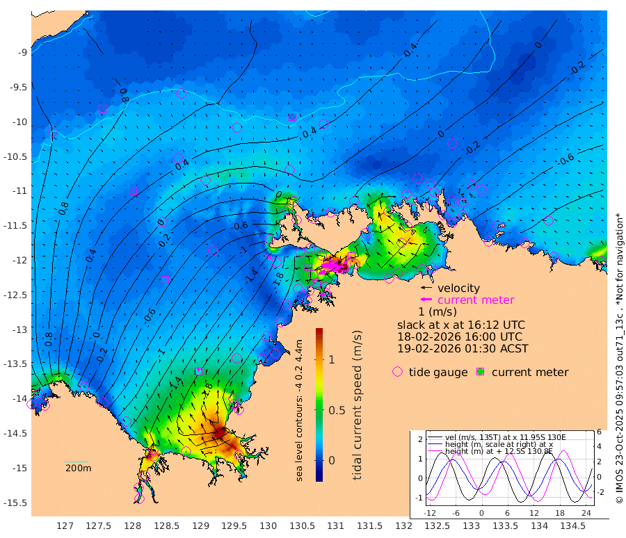 195cm/s -101T +4cm/s rms + 6cm/s 51T. Darwin_C1 52m 145cm/s -90T +4cm/s rms + 7cm/s -161T. Darwin_CW1 22m 106cm/s -107T +4cm/s rms + 8cm/s 61T. Darwin_CW2 34m 91cm/s -135T +3cm/s rms + 9cm/s 98T. Darwin_CW3 22m 148cm/s -91T +5cm/s rms + 7cm/s 88T. Darwin_C3 56m 109cm/s -115T +2cm/s rms + 9cm/s -126T. Darwin_CTbW 22m 9cm/s 163T +9cm/s rms + 2cm/s -110T. NWSLYN 196m 40cm/s -96T +1cm/s rms + 1cm/s -47T. DARBGF 30m 6cm/s 65T +7cm/s rms + 2cm/s -137T. ITFTIS 464m 9cm/s 54T +9cm/s rms + 1cm/s 74T. ITFMHB 146m 25cm/s 2T +4cm/s rms + 1cm/s -134T. ITFJBG 61m 11cm/s 34T +6cm/s rms + 4cm/s 121T. ITFFTB 108m 33cm/s -74T +4cm/s rms + 3cm/s 80T. NRSDAR 19m 125cm Carronade Island 126cm Guy Point 136cm Napier Broome Bay -6cm Lesueur Island -129cm Reveley Island -41cm Rocky Island -201cm Cape Domett -184cm Lacrosse Island -198cm Adolphus Island -93cm Pender Point -59cm Wyndham 11cm The Boxers -20cm Unnamed Shoal 78cm Loxton Shoal -237cm Pelican Island 18cm Calder Shoal 53cm Evans Shoal -229cm Quoin Island -250cm Port Keats -238cm Jones Point -113cm Catfish Island -182cm Cape Scott Offshore -185cm Cape Ford -213cm Anson Bay 25cm Goodrich Bank -182cm Peron Island North -181cm Point Jenny -181cm Native Point -195cm Fish Reef -213cm Tapa Bay -76cm Point Fawcett (Offshore) -229cm Burge Point -208cm Munkunuwa -157cm Beagle A -229cm Parsons Bank -224cm Fenton Patches 38cm Lynedoch Bank -225cm Hancox Shoal Area -247cm Nightcliff -248cm Darwin -216cm Charles Point Patches -166cm Glyde Point -115cm Chambers Bay -100cm Point Stuart -137cm Cape Hotham -104cm Christine Reef -107cm West Alligator Head -85cm East Field Island -96cm Two Hills Bay -75cm Newby Shoal -98cm Camp Point -207cm Medina Inlet South -66cm South Barlow Point -30cm St. Asaph Bay 19cm Cape Van Dieman 10cm Snake Bay 19cm Cache Point 102cm Echo Shoal -5cm Point Jahleel (Off) -50cm Cape Don -9cm Port Essington -14cm Smith Point - West -8cm NW Peacock Island 9cm North Of Jones Shoal 1cm Peacock Island -32cm Point David -17cm D'urville Point 2cm Money Shoal -36cm Copeland Island -44cm Cape Cockburn -26cm One Tree Point -30cm Hogmany Shoal -27cm New Year Island - West -32cm Grant Island -58cm Aurari Bay -60cm Cuthbert Point -51cm North Goulburn Island -67cm Paxie Shoal -87cm Entrance Island -105cm Yabooma Island