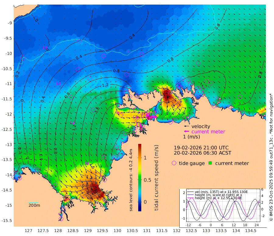 163cm/s 78T +4cm/s rms + 6cm/s 51T. Darwin_C1 52m 119cm/s 87T +4cm/s rms + 7cm/s -161T. Darwin_CW1 22m 88cm/s 74T +4cm/s rms + 8cm/s 61T. Darwin_CW2 34m 58cm/s 54T +3cm/s rms + 9cm/s 98T. Darwin_CW3 22m 108cm/s 88T +5cm/s rms + 7cm/s 88T. Darwin_C3 56m 94cm/s 63T +2cm/s rms + 9cm/s -126T. Darwin_CTbW 22m 10cm/s 138T +9cm/s rms + 2cm/s -110T. NWSLYN 196m 77cm/s 90T +1cm/s rms + 1cm/s -47T. DARBGF 30m 6cm/s 22T +7cm/s rms + 2cm/s -137T. ITFTIS 464m 10cm/s 159T +9cm/s rms + 1cm/s 74T. ITFMHB 146m 49cm/s 158T +4cm/s rms + 1cm/s -134T. ITFJBG 61m 37cm/s 135T +6cm/s rms + 4cm/s 121T. ITFFTB 108m 76cm/s 118T +4cm/s rms + 3cm/s 80T. NRSDAR 19m -111cm Carronade Island -111cm Guy Point -120cm Napier Broome Bay -19cm Lesueur Island 56cm Reveley Island -10cm Rocky Island 55cm Cape Domett 51cm Lacrosse Island -5cm Adolphus Island -125cm Pender Point -183cm Wyndham 61cm The Boxers 93cm Unnamed Shoal 5cm Loxton Shoal 102cm Pelican Island 61cm Calder Shoal 32cm Evans Shoal -48cm Quoin Island 169cm Port Keats 163cm Jones Point -140cm Catfish Island 173cm Cape Scott Offshore 300cm Cape Ford 208cm Anson Bay 67cm Goodrich Bank 191cm Peron Island North 213cm Point Jenny 215cm Native Point 211cm Fish Reef 229cm Tapa Bay 154cm Point Fawcett (Offshore) 226cm Burge Point 227cm Munkunuwa 193cm Beagle A 224cm Parsons Bank 217cm Fenton Patches 39cm Lynedoch Bank 206cm Hancox Shoal Area 217cm Nightcliff 224cm Darwin 227cm Charles Point Patches 111cm Glyde Point 3cm Chambers Bay -25cm Point Stuart 65cm Cape Hotham 8cm Christine Reef -43cm West Alligator Head -93cm East Field Island 18cm Two Hills Bay 127cm Newby Shoal 29cm Camp Point 218cm Medina Inlet South 146cm South Barlow Point 118cm St. Asaph Bay 78cm Cape Van Dieman 80cm Snake Bay 71cm Cache Point -31cm Echo Shoal 69cm Point Jahleel (Off) 78cm Cape Don 81cm Port Essington 84cm Smith Point - West 77cm NW Peacock Island 62cm North Of Jones Shoal 24cm Peacock Island 83cm Point David 87cm D'urville Point 67cm Money Shoal 81cm Copeland Island 98cm Cape Cockburn 76cm One Tree Point 95cm Hogmany Shoal 74cm New Year Island - West 80cm Grant Island 73cm Aurari Bay 73cm Cuthbert Point 80cm North Goulburn Island 64cm Paxie Shoal 62cm Entrance Island 45cm Yabooma Island