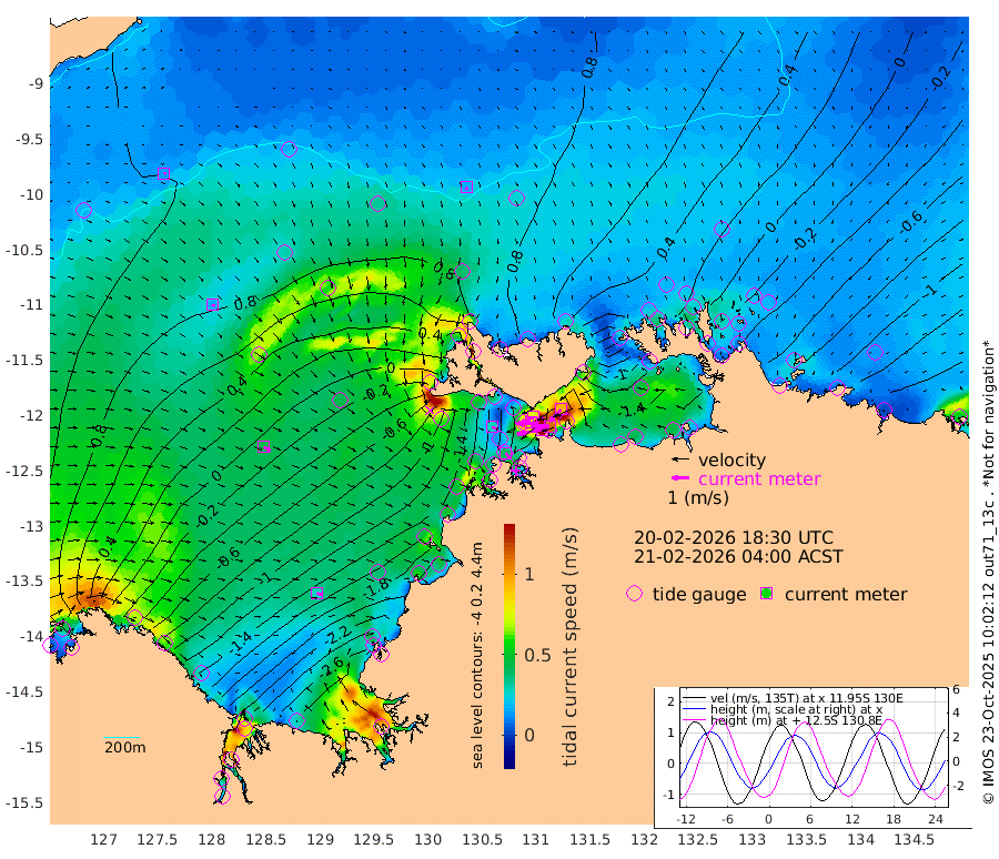 145cm/s -100T +4cm/s rms + 6cm/s 51T. Darwin_C1 52m 110cm/s -92T +4cm/s rms + 7cm/s -161T. Darwin_CW1 22m 67cm/s -106T +4cm/s rms + 8cm/s 61T. Darwin_CW2 34m 95cm/s -138T +3cm/s rms + 9cm/s 98T. Darwin_CW3 22m 130cm/s -90T +5cm/s rms + 7cm/s 88T. Darwin_C3 56m 75cm/s -116T +2cm/s rms + 9cm/s -126T. Darwin_CTbW 22m 15cm/s 162T +9cm/s rms + 2cm/s -110T. NWSLYN 196m 28cm/s 109T +1cm/s rms + 1cm/s -47T. DARBGF 30m 13cm/s 76T +7cm/s rms + 2cm/s -137T. ITFTIS 464m 17cm/s 121T +9cm/s rms + 1cm/s 74T. ITFMHB 146m 29cm/s 114T +4cm/s rms + 1cm/s -134T. ITFJBG 61m 43cm/s 116T +6cm/s rms + 4cm/s 121T. ITFFTB 108m 39cm/s 139T +4cm/s rms + 3cm/s 80T. NRSDAR 19m 44cm Carronade Island 41cm Guy Point 48cm Napier Broome Bay -68cm Lesueur Island -181cm Reveley Island -84cm Rocky Island -295cm Cape Domett -263cm Lacrosse Island -349cm Adolphus Island -315cm Pender Point -320cm Wyndham 37cm The Boxers 22cm Unnamed Shoal 93cm Loxton Shoal -309cm Pelican Island 57cm Calder Shoal 81cm Evans Shoal -431cm Quoin Island -254cm Port Keats -245cm Jones Point -350cm Catfish Island -141cm Cape Scott Offshore -70cm Cape Ford -155cm Anson Bay 67cm Goodrich Bank -127cm Peron Island North -109cm Point Jenny -107cm Native Point -124cm Fish Reef -144cm Tapa Bay 0cm Point Fawcett (Offshore) -166cm Burge Point -122cm Munkunuwa -80cm Beagle A -173cm Parsons Bank -161cm Fenton Patches 64cm Lynedoch Bank -187cm Hancox Shoal Area -191cm Nightcliff -204cm Darwin -159cm Charles Point Patches -185cm Glyde Point -209cm Chambers Bay -215cm Point Stuart -180cm Cape Hotham -189cm Christine Reef -240cm West Alligator Head -253cm East Field Island -166cm Two Hills Bay -29cm Newby Shoal -160cm Camp Point -137cm Medina Inlet South 10cm South Barlow Point 39cm St. Asaph Bay 69cm Cape Van Dieman 57cm Snake Bay 58cm Cache Point 104cm Echo Shoal 23cm Point Jahleel (Off) -45cm Cape Don 17cm Port Essington 15cm Smith Point - West 14cm NW Peacock Island 37cm North Of Jones Shoal 11cm Peacock Island -25cm Point David 9cm D'urville Point 17cm Money Shoal -32cm Copeland Island -40cm Cape Cockburn -19cm One Tree Point -41cm Hogmany Shoal -26cm New Year Island - West -33cm Grant Island -68cm Aurari Bay -93cm Cuthbert Point -61cm North Goulburn Island -110cm Paxie Shoal -145cm Entrance Island -189cm Yabooma Island