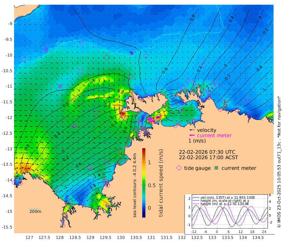 93cm/s -100T +4cm/s rms + 6cm/s 51T. Darwin_C1 52m 65cm/s -91T +4cm/s rms + 7cm/s -161T. Darwin_CW1 22m 47cm/s -107T +4cm/s rms + 8cm/s 61T. Darwin_CW2 34m 65cm/s -135T +3cm/s rms + 9cm/s 98T. Darwin_CW3 22m 99cm/s -90T +5cm/s rms + 7cm/s 88T. Darwin_C3 56m 45cm/s -116T +2cm/s rms + 9cm/s -126T. Darwin_CTbW 22m 7cm/s 147T +9cm/s rms + 2cm/s -110T. NWSLYN 196m 36cm/s 103T +1cm/s rms + 1cm/s -47T. DARBGF 30m 13cm/s 72T +7cm/s rms + 2cm/s -137T. ITFTIS 464m 17cm/s 116T +9cm/s rms + 1cm/s 74T. ITFMHB 146m 30cm/s 121T +4cm/s rms + 1cm/s -134T. ITFJBG 61m 42cm/s 114T +6cm/s rms + 4cm/s 121T. ITFFTB 108m 45cm/s 135T +4cm/s rms + 3cm/s 80T. NRSDAR 19m 61cm Carronade Island 54cm Guy Point 58cm Napier Broome Bay 3cm Lesueur Island -117cm Reveley Island -53cm Rocky Island -206cm Cape Domett -171cm Lacrosse Island -247cm Adolphus Island -256cm Pender Point -259cm Wyndham 74cm The Boxers 71cm Unnamed Shoal 111cm Loxton Shoal -216cm Pelican Island 94cm Calder Shoal 99cm Evans Shoal -330cm Quoin Island -160cm Port Keats -156cm Jones Point -286cm Catfish Island -70cm Cape Scott Offshore 16cm Cape Ford -81cm Anson Bay 93cm Goodrich Bank -52cm Peron Island North -44cm Point Jenny -41cm Native Point -48cm Fish Reef -68cm Tapa Bay 47cm Point Fawcett (Offshore) -85cm Burge Point -58cm Munkunuwa -3cm Beagle A -100cm Parsons Bank -70cm Fenton Patches 86cm Lynedoch Bank -110cm Hancox Shoal Area -104cm Nightcliff -116cm Darwin -77cm Charles Point Patches -115cm Glyde Point -156cm Chambers Bay -165cm Point Stuart -117cm Cape Hotham -142cm Christine Reef -187cm West Alligator Head -198cm East Field Island -116cm Two Hills Bay 39cm Newby Shoal -109cm Camp Point -64cm Medina Inlet South 55cm South Barlow Point 78cm St. Asaph Bay 94cm Cape Van Dieman 89cm Snake Bay 86cm Cache Point 123cm Echo Shoal 56cm Point Jahleel (Off) -12cm Cape Don 43cm Port Essington 44cm Smith Point - West 42cm NW Peacock Island 62cm North Of Jones Shoal 19cm Peacock Island 1cm Point David 37cm D'urville Point 38cm Money Shoal -6cm Copeland Island -5cm Cape Cockburn 7cm One Tree Point -14cm Hogmany Shoal 7cm New Year Island - West -4cm Grant Island -33cm Aurari Bay -69cm Cuthbert Point -34cm North Goulburn Island -93cm Paxie Shoal -121cm Entrance Island -170cm Yabooma Island