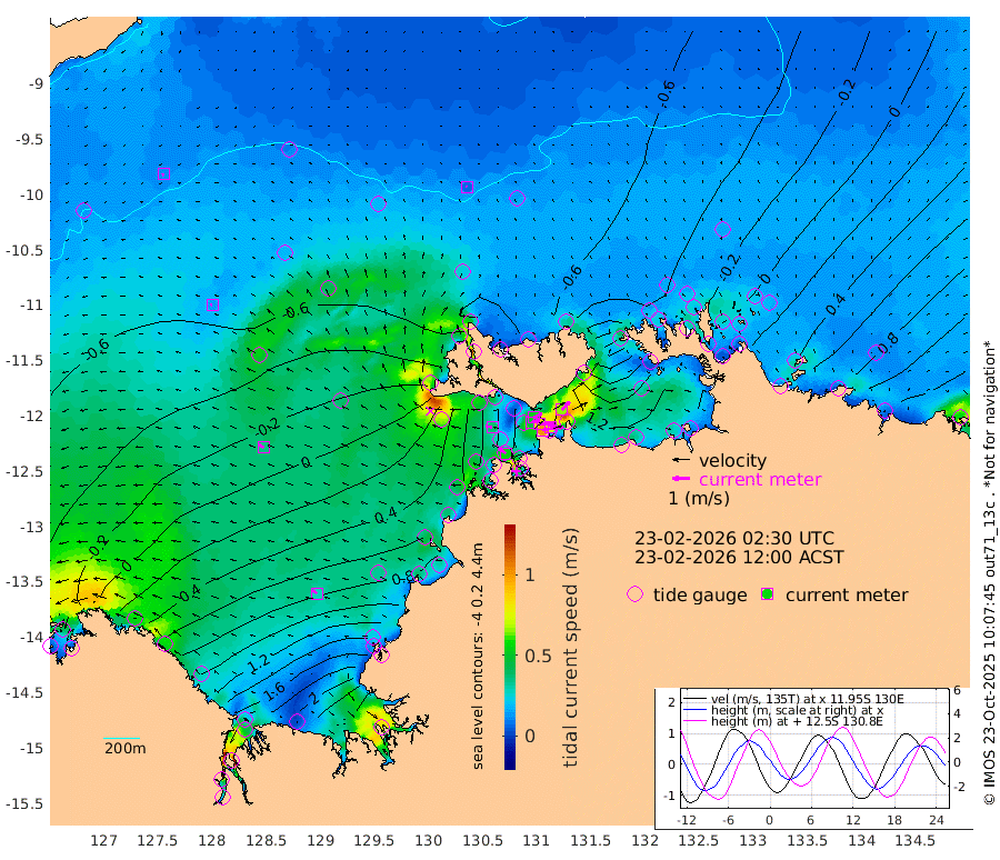 100cm/s 79T +4cm/s rms + 6cm/s 51T. Darwin_C1 52m 73cm/s 91T +4cm/s rms + 7cm/s -161T. Darwin_CW1 22m 44cm/s 70T +4cm/s rms + 8cm/s 61T. Darwin_CW2 34m 65cm/s 46T +3cm/s rms + 9cm/s 98T. Darwin_CW3 22m 85cm/s 90T +5cm/s rms + 7cm/s 88T. Darwin_C3 56m 53cm/s 66T +2cm/s rms + 9cm/s -126T. Darwin_CTbW 22m 6cm/s -14T +9cm/s rms + 2cm/s -110T. NWSLYN 196m 37cm/s -78T +1cm/s rms + 1cm/s -47T. DARBGF 30m 12cm/s -115T +7cm/s rms + 2cm/s -137T. ITFTIS 464m 13cm/s -82T +9cm/s rms + 1cm/s 74T. ITFMHB 146m 29cm/s -49T +4cm/s rms + 1cm/s -134T. ITFJBG 61m 36cm/s -63T +6cm/s rms + 4cm/s 121T. ITFFTB 108m 54cm/s -51T +4cm/s rms + 3cm/s 80T. NRSDAR 19m 26cm Carronade Island 37cm Guy Point 24cm Napier Broome Bay 68cm Lesueur Island 139cm Reveley Island 56cm Rocky Island 222cm Cape Domett 197cm Lacrosse Island 272cm Adolphus Island 282cm Pender Point 305cm Wyndham -31cm The Boxers -47cm Unnamed Shoal -64cm Loxton Shoal 227cm Pelican Island -51cm Calder Shoal -57cm Evans Shoal 344cm Quoin Island 164cm Port Keats 153cm Jones Point 347cm Catfish Island 83cm Cape Scott Offshore 10cm Cape Ford 84cm Anson Bay -59cm Goodrich Bank 63cm Peron Island North 58cm Point Jenny 53cm Native Point 57cm Fish Reef 75cm Tapa Bay -18cm Point Fawcett (Offshore) 84cm Burge Point 47cm Munkunuwa 27cm Beagle A 90cm Parsons Bank 79cm Fenton Patches -55cm Lynedoch Bank 111cm Hancox Shoal Area 106cm Nightcliff 108cm Darwin 81cm Charles Point Patches 125cm Glyde Point 180cm Chambers Bay 188cm Point Stuart 132cm Cape Hotham 171cm Christine Reef 212cm West Alligator Head 231cm East Field Island 138cm Two Hills Bay 3cm Newby Shoal 129cm Camp Point 62cm Medina Inlet South -36cm South Barlow Point -46cm St. Asaph Bay -62cm Cape Van Dieman -62cm Snake Bay -48cm Cache Point -64cm Echo Shoal -24cm Point Jahleel (Off) 33cm Cape Don -18cm Port Essington -15cm Smith Point - West -14cm NW Peacock Island -30cm North Of Jones Shoal -9cm Peacock Island 13cm Point David -12cm D'urville Point -13cm Money Shoal 20cm Copeland Island 26cm Cape Cockburn 10cm One Tree Point 39cm Hogmany Shoal 13cm New Year Island - West 21cm Grant Island 45cm Aurari Bay 81cm Cuthbert Point 46cm North Goulburn Island 96cm Paxie Shoal 121cm Entrance Island 165cm Yabooma Island
