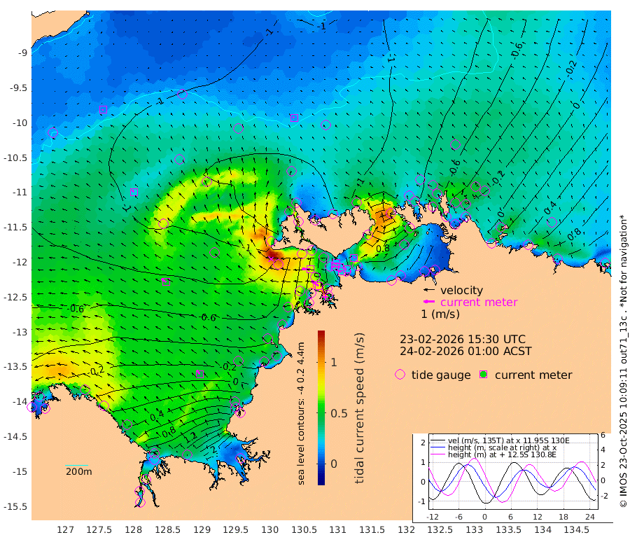 26cm/s -104T +4cm/s rms + 6cm/s 51T. Darwin_C1 52m 20cm/s -84T +4cm/s rms + 7cm/s -161T. Darwin_CW1 22m 28cm/s -104T +4cm/s rms + 8cm/s 61T. Darwin_CW2 34m 15cm/s 31T +3cm/s rms + 9cm/s 98T. Darwin_CW3 22m 18cm/s -101T +5cm/s rms + 7cm/s 88T. Darwin_C3 56m 18cm/s -115T +2cm/s rms + 9cm/s -126T. Darwin_CTbW 22m 13cm/s -37T +9cm/s rms + 2cm/s -110T. NWSLYN 196m 73cm/s -86T +1cm/s rms + 1cm/s -47T. DARBGF 30m 11cm/s -106T +7cm/s rms + 2cm/s -137T. ITFTIS 464m 23cm/s -33T +9cm/s rms + 1cm/s 74T. ITFMHB 146m 43cm/s -34T +4cm/s rms + 1cm/s -134T. ITFJBG 61m 51cm/s -54T +6cm/s rms + 4cm/s 121T. ITFFTB 108m 80cm/s -55T +4cm/s rms + 3cm/s 80T. NRSDAR 19m 12cm Carronade Island 10cm Guy Point 17cm Napier Broome Bay 9cm Lesueur Island 42cm Reveley Island 24cm Rocky Island 97cm Cape Domett 81cm Lacrosse Island 156cm Adolphus Island 227cm Pender Point 267cm Wyndham -95cm The Boxers -85cm Unnamed Shoal -105cm Loxton Shoal 83cm Pelican Island -117cm Calder Shoal -109cm Evans Shoal 226cm Quoin Island 8cm Port Keats 19cm Jones Point 267cm Catfish Island -60cm Cape Scott Offshore -190cm Cape Ford -68cm Anson Bay -112cm Goodrich Bank -82cm Peron Island North -92cm Point Jenny -94cm Native Point -90cm Fish Reef -83cm Tapa Bay -134cm Point Fawcett (Offshore) -69cm Burge Point -98cm Munkunuwa -105cm Beagle A -58cm Parsons Bank -68cm Fenton Patches -92cm Lynedoch Bank -39cm Hancox Shoal Area -51cm Nightcliff -49cm Darwin -82cm Charles Point Patches 25cm Glyde Point 116cm Chambers Bay 143cm Point Stuart 54cm Cape Hotham 102cm Christine Reef 168cm West Alligator Head 209cm East Field Island 79cm Two Hills Bay -102cm Newby Shoal 71cm Camp Point -88cm Medina Inlet South -132cm South Barlow Point -135cm St. Asaph Bay -118cm Cape Van Dieman -113cm Snake Bay -108cm Cache Point -91cm Echo Shoal -83cm Point Jahleel (Off) -36cm Cape Don -77cm Port Essington -79cm Smith Point - West -70cm NW Peacock Island -87cm North Of Jones Shoal -28cm Peacock Island -30cm Point David -71cm D'urville Point -60cm Money Shoal -23cm Copeland Island -34cm Cape Cockburn -38cm One Tree Point -22cm Hogmany Shoal -28cm New Year Island - West -25cm Grant Island 9cm Aurari Bay 35cm Cuthbert Point -2cm North Goulburn Island 56cm Paxie Shoal 86cm Entrance Island 134cm Yabooma Island