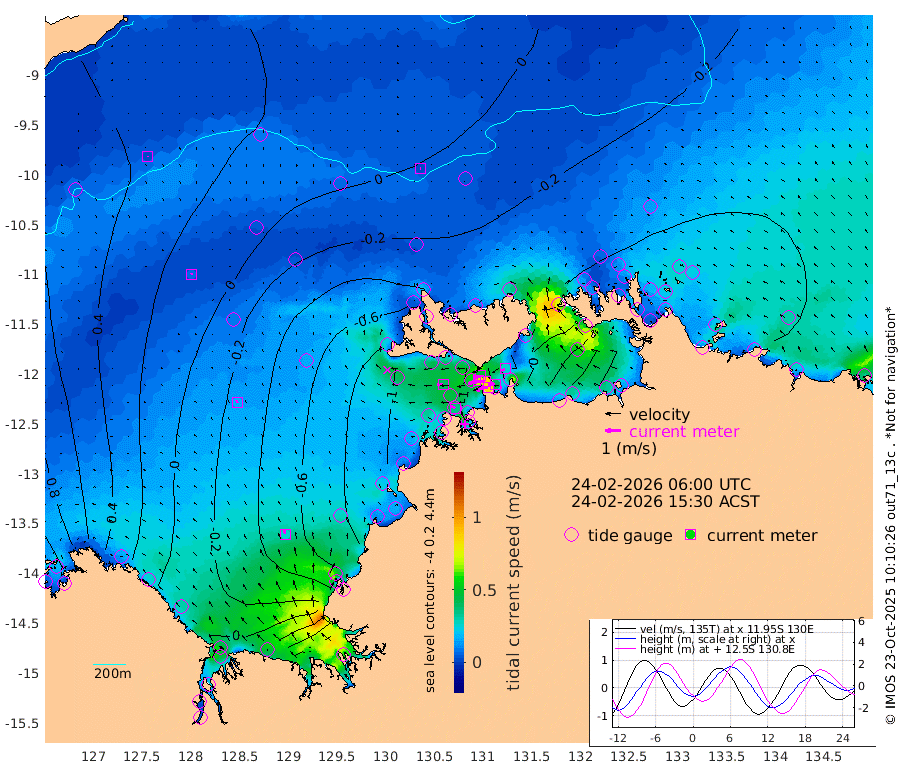 85cm/s -102T +4cm/s rms + 6cm/s 51T. Darwin_C1 52m 43cm/s -90T +4cm/s rms + 7cm/s -161T. Darwin_CW1 22m 71cm/s -109T +4cm/s rms + 8cm/s 61T. Darwin_CW2 34m 25cm/s -113T +3cm/s rms + 9cm/s 98T. Darwin_CW3 22m 85cm/s -92T +5cm/s rms + 7cm/s 88T. Darwin_C3 56m 48cm/s -116T +2cm/s rms + 9cm/s -126T. Darwin_CTbW 22m 2cm/s 75T +9cm/s rms + 2cm/s -110T. NWSLYN 196m 39cm/s -92T +1cm/s rms + 1cm/s -47T. DARBGF 30m 2cm/s 36T +7cm/s rms + 2cm/s -137T. ITFTIS 464m 7cm/s 28T +9cm/s rms + 1cm/s 74T. ITFMHB 146m 27cm/s -14T +4cm/s rms + 1cm/s -134T. ITFJBG 61m 16cm/s -20T +6cm/s rms + 4cm/s 121T. ITFFTB 108m 34cm/s -67T +4cm/s rms + 3cm/s 80T. NRSDAR 19m 147cm Carronade Island 153cm Guy Point 149cm Napier Broome Bay 85cm Lesueur Island 4cm Reveley Island -6cm Rocky Island 3cm Cape Domett 15cm Lacrosse Island 36cm Adolphus Island 104cm Pender Point 149cm Wyndham 16cm The Boxers -21cm Unnamed Shoal 38cm Loxton Shoal -24cm Pelican Island 10cm Calder Shoal 17cm Evans Shoal 45cm Quoin Island -57cm Port Keats -65cm Jones Point 129cm Catfish Island -59cm Cape Scott Offshore -100cm Cape Ford -79cm Anson Bay -3cm Goodrich Bank -79cm Peron Island North -71cm Point Jenny -74cm Native Point -83cm Fish Reef -86cm Tapa Bay -43cm Point Fawcett (Offshore) -90cm Burge Point -111cm Munkunuwa -56cm Beagle A -108cm Parsons Bank -77cm Fenton Patches 7cm Lynedoch Bank -83cm Hancox Shoal Area -83cm Nightcliff -101cm Darwin -88cm Charles Point Patches -33cm Glyde Point 34cm Chambers Bay 38cm Point Stuart -12cm Cape Hotham 36cm Christine Reef 47cm West Alligator Head 83cm East Field Island 11cm Two Hills Bay -12cm Newby Shoal 20cm Camp Point -95cm Medina Inlet South -53cm South Barlow Point -27cm St. Asaph Bay -10cm Cape Van Dieman -19cm Snake Bay -1cm Cache Point 68cm Echo Shoal -7cm Point Jahleel (Off) -17cm Cape Don -20cm Port Essington -20cm Smith Point - West -17cm NW Peacock Island -6cm North Of Jones Shoal -4cm Peacock Island -30cm Point David -25cm D'urville Point -8cm Money Shoal -29cm Copeland Island -35cm Cape Cockburn -26cm One Tree Point -26cm Hogmany Shoal -19cm New Year Island - West -27cm Grant Island -26cm Aurari Bay -25cm Cuthbert Point -30cm North Goulburn Island -17cm Paxie Shoal -25cm Entrance Island -15cm Yabooma Island