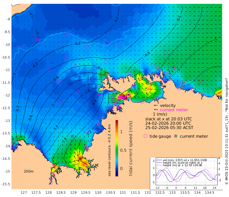 192cm/s -101T +4cm/s rms + 6cm/s 51T. Darwin_C1 52m 135cm/s -90T +4cm/s rms + 7cm/s -161T. Darwin_CW1 22m 94cm/s -105T +4cm/s rms + 8cm/s 61T. Darwin_CW2 34m 89cm/s -134T +3cm/s rms + 9cm/s 98T. Darwin_CW3 22m 153cm/s -91T +5cm/s rms + 7cm/s 88T. Darwin_C3 56m 114cm/s -115T +2cm/s rms + 9cm/s -126T. Darwin_CTbW 22m 5cm/s -128T +9cm/s rms + 2cm/s -110T. NWSLYN 196m 27cm/s -103T +1cm/s rms + 1cm/s -47T. DARBGF 30m 6cm/s 113T +7cm/s rms + 2cm/s -137T. ITFTIS 464m 6cm/s 61T +9cm/s rms + 1cm/s 74T. ITFMHB 146m 11cm/s 39T +4cm/s rms + 1cm/s -134T. ITFJBG 61m 8cm/s 83T +6cm/s rms + 4cm/s 121T. ITFFTB 108m 17cm/s -88T +4cm/s rms + 3cm/s 80T. NRSDAR 19m -17cm Carronade Island -19cm Guy Point -19cm Napier Broome Bay -105cm Lesueur Island -176cm Reveley Island -95cm Rocky Island -245cm Cape Domett -223cm Lacrosse Island -251cm Adolphus Island -189cm Pender Point -179cm Wyndham -70cm The Boxers -76cm Unnamed Shoal -11cm Loxton Shoal -260cm Pelican Island -55cm Calder Shoal -26cm Evans Shoal -278cm Quoin Island -253cm Port Keats -240cm Jones Point -244cm Catfish Island -196cm Cape Scott Offshore -223cm Cape Ford -213cm Anson Bay -39cm Goodrich Bank -204cm Peron Island North -198cm Point Jenny -195cm Native Point -206cm Fish Reef -217cm Tapa Bay -122cm Point Fawcett (Offshore) -229cm Burge Point -194cm Munkunuwa -173cm Beagle A -229cm Parsons Bank -220cm Fenton Patches -28cm Lynedoch Bank -227cm Hancox Shoal Area -231cm Nightcliff -248cm Darwin -230cm Charles Point Patches -193cm Glyde Point -163cm Chambers Bay -159cm Point Stuart -171cm Cape Hotham -158cm Christine Reef -168cm West Alligator Head -153cm East Field Island -153cm Two Hills Bay -142cm Newby Shoal -141cm Camp Point -211cm Medina Inlet South -103cm South Barlow Point -76cm St. Asaph Bay -43cm Cape Van Dieman -50cm Snake Bay -53cm Cache Point 13cm Echo Shoal -67cm Point Jahleel (Off) -111cm Cape Don -76cm Port Essington -80cm Smith Point - West -77cm NW Peacock Island -59cm North Of Jones Shoal -22cm Peacock Island -91cm Point David -83cm D'urville Point -67cm Money Shoal -92cm Copeland Island -126cm Cape Cockburn -91cm One Tree Point -123cm Hogmany Shoal -93cm New Year Island - West -101cm Grant Island -106cm Aurari Bay -131cm Cuthbert Point -114cm North Goulburn Island -128cm Paxie Shoal -143cm Entrance Island -150cm Yabooma Island
