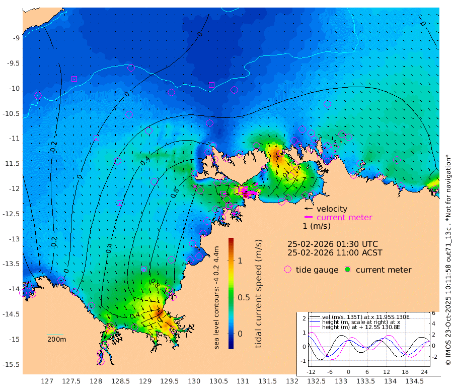 148cm/s 78T +4cm/s rms + 6cm/s 51T. Darwin_C1 52m 90cm/s 92T +4cm/s rms + 7cm/s -161T. Darwin_CW1 22m 87cm/s 73T +4cm/s rms + 8cm/s 61T. Darwin_CW2 34m 58cm/s 52T +3cm/s rms + 9cm/s 98T. Darwin_CW3 22m 123cm/s 88T +5cm/s rms + 7cm/s 88T. Darwin_C3 56m 85cm/s 65T +2cm/s rms + 9cm/s -126T. Darwin_CTbW 22m 3cm/s 156T +9cm/s rms + 2cm/s -110T. NWSLYN 196m 44cm/s 87T +1cm/s rms + 1cm/s -47T. DARBGF 30m 7cm/s -165T +7cm/s rms + 2cm/s -137T. ITFTIS 464m 22cm/s -169T +9cm/s rms + 1cm/s 74T. ITFMHB 146m 25cm/s 176T +4cm/s rms + 1cm/s -134T. ITFJBG 61m 21cm/s 164T +6cm/s rms + 4cm/s 121T. ITFFTB 108m 40cm/s 112T +4cm/s rms + 3cm/s 80T. NRSDAR 19m -71cm Carronade Island -68cm Guy Point -73cm Napier Broome Bay -21cm Lesueur Island 61cm Reveley Island 45cm Rocky Island 80cm Cape Domett 67cm Lacrosse Island 55cm Adolphus Island -8cm Pender Point -42cm Wyndham 15cm The Boxers 17cm Unnamed Shoal -12cm Loxton Shoal 102cm Pelican Island 19cm Calder Shoal 9cm Evans Shoal 62cm Quoin Island 120cm Port Keats 111cm Jones Point 15cm Catfish Island 114cm Cape Scott Offshore 138cm Cape Ford 128cm Anson Bay 14cm Goodrich Bank 124cm Peron Island North 122cm Point Jenny 120cm Native Point 126cm Fish Reef 132cm Tapa Bay 81cm Point Fawcett (Offshore) 133cm Burge Point 145cm Munkunuwa 98cm Beagle A 143cm Parsons Bank 120cm Fenton Patches 1cm Lynedoch Bank 128cm Hancox Shoal Area 134cm Nightcliff 139cm Darwin 128cm Charles Point Patches 75cm Glyde Point 26cm Chambers Bay 18cm Point Stuart 54cm Cape Hotham 29cm Christine Reef 17cm West Alligator Head -15cm East Field Island 36cm Two Hills Bay 56cm Newby Shoal 20cm Camp Point 134cm Medina Inlet South 70cm South Barlow Point 51cm St. Asaph Bay 19cm Cape Van Dieman 22cm Snake Bay 19cm Cache Point -36cm Echo Shoal 25cm Point Jahleel (Off) 42cm Cape Don 29cm Port Essington 34cm Smith Point - West 26cm NW Peacock Island 21cm North Of Jones Shoal 8cm Peacock Island 25cm Point David 32cm D'urville Point 11cm Money Shoal 25cm Copeland Island 36cm Cape Cockburn 27cm One Tree Point 30cm Hogmany Shoal 17cm New Year Island - West 26cm Grant Island 21cm Aurari Bay 28cm Cuthbert Point 29cm North Goulburn Island 22cm Paxie Shoal 24cm Entrance Island 18cm Yabooma Island