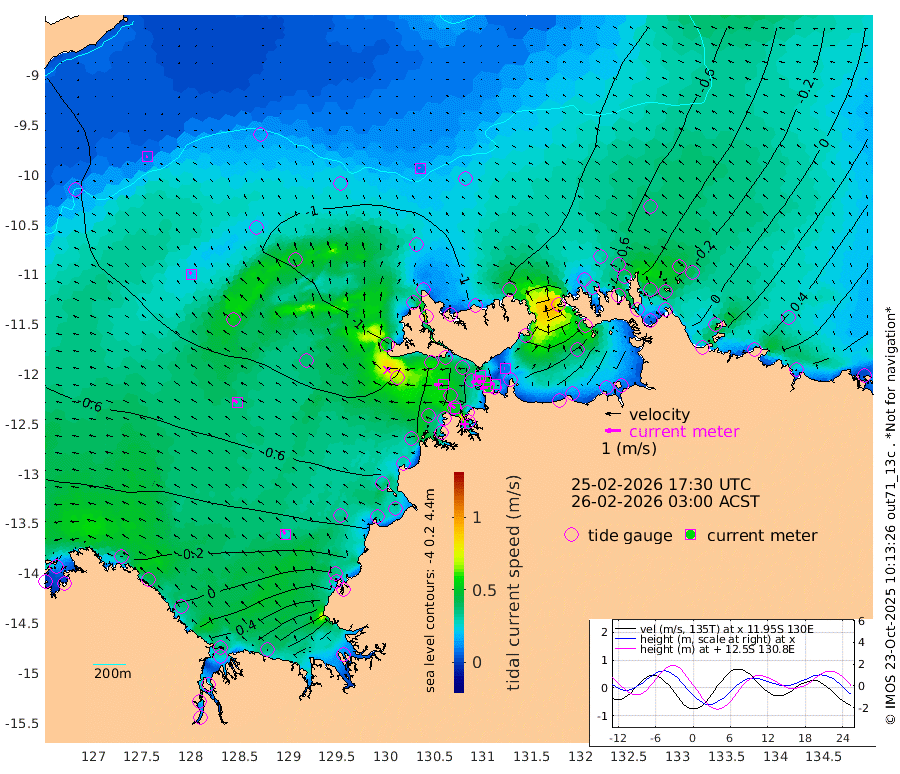 52cm/s -102T +4cm/s rms + 6cm/s 51T. Darwin_C1 52m 31cm/s -87T +4cm/s rms + 7cm/s -161T. Darwin_CW1 22m 45cm/s -106T +4cm/s rms + 8cm/s 61T. Darwin_CW2 34m 8cm/s -59T +3cm/s rms + 9cm/s 98T. Darwin_CW3 22m 54cm/s -93T +5cm/s rms + 7cm/s 88T. Darwin_C3 56m 32cm/s -115T +2cm/s rms + 9cm/s -126T. Darwin_CTbW 22m 10cm/s -42T +9cm/s rms + 2cm/s -110T. NWSLYN 196m 53cm/s -89T +1cm/s rms + 1cm/s -47T. DARBGF 30m 7cm/s -100T +7cm/s rms + 2cm/s -137T. ITFTIS 464m 19cm/s -24T +9cm/s rms + 1cm/s 74T. ITFMHB 146m 26cm/s -31T +4cm/s rms + 1cm/s -134T. ITFJBG 61m 33cm/s -52T +6cm/s rms + 4cm/s 121T. ITFFTB 108m 51cm/s -58T +4cm/s rms + 3cm/s 80T. NRSDAR 19m -6cm Carronade Island -11cm Guy Point -8cm Napier Broome Bay -19cm Lesueur Island -10cm Reveley Island -23cm Rocky Island 12cm Cape Domett 9cm Lacrosse Island 48cm Adolphus Island 99cm Pender Point 130cm Wyndham -88cm The Boxers -71cm Unnamed Shoal -99cm Loxton Shoal 8cm Pelican Island -106cm Calder Shoal -97cm Evans Shoal 81cm Quoin Island -40cm Port Keats -22cm Jones Point 140cm Catfish Island -79cm Cape Scott Offshore -154cm Cape Ford -84cm Anson Bay -94cm Goodrich Bank -93cm Peron Island North -92cm Point Jenny -93cm Native Point -92cm Fish Reef -90cm Tapa Bay -118cm Point Fawcett (Offshore) -81cm Burge Point -104cm Munkunuwa -94cm Beagle A -76cm Parsons Bank -74cm Fenton Patches -81cm Lynedoch Bank -60cm Hancox Shoal Area -70cm Nightcliff -75cm Darwin -95cm Charles Point Patches -8cm Glyde Point 60cm Chambers Bay 83cm Point Stuart 17cm Cape Hotham 52cm Christine Reef 98cm West Alligator Head 131cm East Field Island 35cm Two Hills Bay -98cm Newby Shoal 33cm Camp Point -99cm Medina Inlet South -117cm South Barlow Point -115cm St. Asaph Bay -97cm Cape Van Dieman -97cm Snake Bay -90cm Cache Point -82cm Echo Shoal -74cm Point Jahleel (Off) -43cm Cape Don -68cm Port Essington -69cm Smith Point - West -61cm NW Peacock Island -78cm North Of Jones Shoal -25cm Peacock Island -27cm Point David -61cm D'urville Point -51cm Money Shoal -20cm Copeland Island -33cm Cape Cockburn -37cm One Tree Point -21cm Hogmany Shoal -27cm New Year Island - West -26cm Grant Island 6cm Aurari Bay 23cm Cuthbert Point -7cm North Goulburn Island 36cm Paxie Shoal 61cm Entrance Island 100cm Yabooma Island