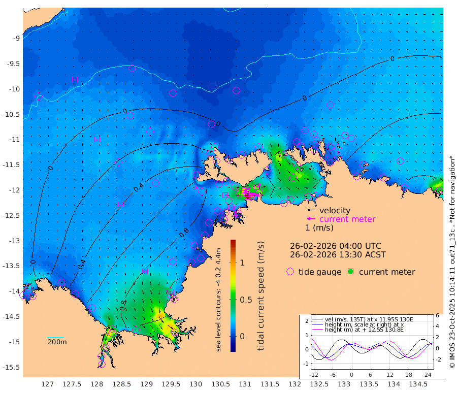 144cm/s 78T +4cm/s rms + 6cm/s 51T. Darwin_C1 52m 99cm/s 91T +4cm/s rms + 7cm/s -161T. Darwin_CW1 22m 62cm/s 72T +4cm/s rms + 8cm/s 61T. Darwin_CW2 34m 62cm/s 51T +3cm/s rms + 9cm/s 98T. Darwin_CW3 22m 90cm/s 89T +5cm/s rms + 7cm/s 88T. Darwin_C3 56m 86cm/s 65T +2cm/s rms + 9cm/s -126T. Darwin_CTbW 22m 0cm/s 72T +9cm/s rms + 2cm/s -110T. NWSLYN 196m 22cm/s 81T +1cm/s rms + 1cm/s -47T. DARBGF 30m 6cm/s -158T +7cm/s rms + 2cm/s -137T. ITFTIS 464m 17cm/s -169T +9cm/s rms + 1cm/s 74T. ITFMHB 146m 13cm/s -179T +4cm/s rms + 1cm/s -134T. ITFJBG 61m 12cm/s 173T +6cm/s rms + 4cm/s 121T. ITFFTB 108m 15cm/s 102T +4cm/s rms + 3cm/s 80T. NRSDAR 19m 18cm Carronade Island 21cm Guy Point 21cm Napier Broome Bay 43cm Lesueur Island 92cm Reveley Island 64cm Rocky Island 121cm Cape Domett 115cm Lacrosse Island 110cm Adolphus Island 87cm Pender Point 80cm Wyndham 24cm The Boxers 17cm Unnamed Shoal -9cm Loxton Shoal 128cm Pelican Island 19cm Calder Shoal 2cm Evans Shoal 127cm Quoin Island 125cm Port Keats 115cm Jones Point 149cm Catfish Island 105cm Cape Scott Offshore 98cm Cape Ford 111cm Anson Bay 0cm Goodrich Bank 102cm Peron Island North 110cm Point Jenny 106cm Native Point 108cm Fish Reef 113cm Tapa Bay 62cm Point Fawcett (Offshore) 117cm Burge Point 107cm Munkunuwa 91cm Beagle A 112cm Parsons Bank 112cm Fenton Patches -8cm Lynedoch Bank 111cm Hancox Shoal Area 122cm Nightcliff 113cm Darwin 102cm Charles Point Patches 90cm Glyde Point 81cm Chambers Bay 80cm Point Stuart 80cm Cape Hotham 84cm Christine Reef 89cm West Alligator Head 78cm East Field Island 73cm Two Hills Bay 66cm Newby Shoal 59cm Camp Point 106cm Medina Inlet South 40cm South Barlow Point 31cm St. Asaph Bay 3cm Cape Van Dieman 1cm Snake Bay 10cm Cache Point -18cm Echo Shoal 18cm Point Jahleel (Off) 42cm Cape Don 13cm Port Essington 20cm Smith Point - West 12cm NW Peacock Island 8cm North Of Jones Shoal 3cm Peacock Island 10cm Point David 15cm D'urville Point 1cm Money Shoal 12cm Copeland Island 22cm Cape Cockburn 13cm One Tree Point 19cm Hogmany Shoal 10cm New Year Island - West 15cm Grant Island 17cm Aurari Bay 30cm Cuthbert Point 22cm North Goulburn Island 30cm Paxie Shoal 33cm Entrance Island 35cm Yabooma Island