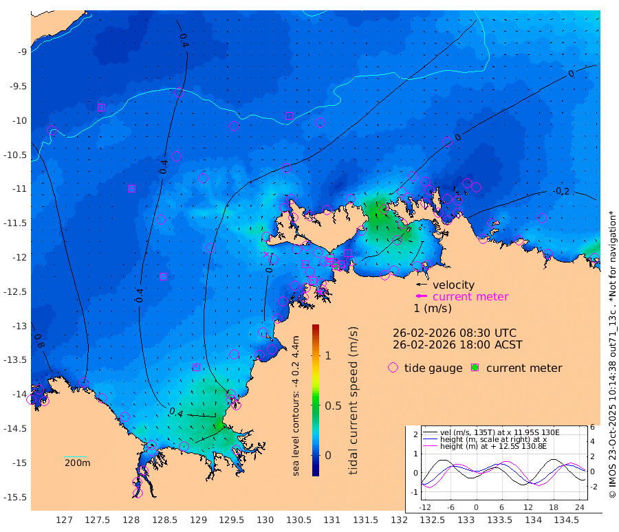 40cm/s -102T +4cm/s rms + 6cm/s 51T. Darwin_C1 52m 6cm/s 84T +4cm/s rms + 7cm/s -161T. Darwin_CW1 22m 17cm/s -109T +4cm/s rms + 8cm/s 61T. Darwin_CW2 34m 5cm/s -64T +3cm/s rms + 9cm/s 98T. Darwin_CW3 22m 10cm/s -98T +5cm/s rms + 7cm/s 88T. Darwin_C3 56m 29cm/s -116T +2cm/s rms + 9cm/s -126T. Darwin_CTbW 22m 4cm/s 84T +9cm/s rms + 2cm/s -110T. NWSLYN 196m 13cm/s -83T +1cm/s rms + 1cm/s -47T. DARBGF 30m 8cm/s 23T +7cm/s rms + 2cm/s -137T. ITFTIS 464m 9cm/s 30T +9cm/s rms + 1cm/s 74T. ITFMHB 146m 15cm/s -13T +4cm/s rms + 1cm/s -134T. ITFJBG 61m 12cm/s 0T +6cm/s rms + 4cm/s 121T. ITFFTB 108m 15cm/s -66T +4cm/s rms + 3cm/s 80T. NRSDAR 19m 108cm Carronade Island 115cm Guy Point 113cm Napier Broome Bay 95cm Lesueur Island 53cm Reveley Island 20cm Rocky Island 70cm Cape Domett 72cm Lacrosse Island 83cm Adolphus Island 112cm Pender Point 127cm Wyndham 54cm The Boxers 26cm Unnamed Shoal 60cm Loxton Shoal 49cm Pelican Island 53cm Calder Shoal 40cm Evans Shoal 85cm Quoin Island 45cm Port Keats 30cm Jones Point 69cm Catfish Island 28cm Cape Scott Offshore 50cm Cape Ford 21cm Anson Bay 32cm Goodrich Bank 14cm Peron Island North 23cm Point Jenny 23cm Native Point 16cm Fish Reef 20cm Tapa Bay 27cm Point Fawcett (Offshore) 25cm Burge Point 1cm Munkunuwa 32cm Beagle A 0cm Parsons Bank 27cm Fenton Patches 34cm Lynedoch Bank 13cm Hancox Shoal Area 22cm Nightcliff 17cm Darwin 28cm Charles Point Patches 26cm Glyde Point 42cm Chambers Bay 31cm Point Stuart 23cm Cape Hotham 42cm Christine Reef 34cm West Alligator Head 50cm East Field Island 22cm Two Hills Bay 55cm Newby Shoal 43cm Camp Point 16cm Medina Inlet South 19cm South Barlow Point 30cm St. Asaph Bay 28cm Cape Van Dieman 24cm Snake Bay 31cm Cache Point 70cm Echo Shoal 24cm Point Jahleel (Off) 17cm Cape Don 13cm Port Essington 10cm Smith Point - West 9cm NW Peacock Island 21cm North Of Jones Shoal 5cm Peacock Island -7cm Point David 3cm D'urville Point 17cm Money Shoal -9cm Copeland Island -8cm Cape Cockburn 0cm One Tree Point -5cm Hogmany Shoal 3cm New Year Island - West -3cm Grant Island -12cm Aurari Bay -16cm Cuthbert Point -9cm North Goulburn Island -4cm Paxie Shoal -18cm Entrance Island -22cm Yabooma Island
