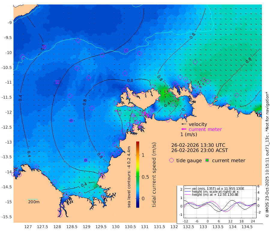 49cm/s 78T +4cm/s rms + 6cm/s 51T. Darwin_C1 52m 8cm/s 80T +4cm/s rms + 7cm/s -161T. Darwin_CW1 22m 25cm/s 78T +4cm/s rms + 8cm/s 61T. Darwin_CW2 34m 13cm/s 55T +3cm/s rms + 9cm/s 98T. Darwin_CW3 22m 36cm/s 90T +5cm/s rms + 7cm/s 88T. Darwin_C3 56m 35cm/s 62T +2cm/s rms + 9cm/s -126T. Darwin_CTbW 22m 6cm/s 124T +9cm/s rms + 2cm/s -110T. NWSLYN 196m 21cm/s 90T +1cm/s rms + 1cm/s -47T. DARBGF 30m 5cm/s 3T +7cm/s rms + 2cm/s -137T. ITFTIS 464m 5cm/s 25T +9cm/s rms + 1cm/s 74T. ITFMHB 146m 6cm/s 152T +4cm/s rms + 1cm/s -134T. ITFJBG 61m 5cm/s 108T +6cm/s rms + 4cm/s 121T. ITFFTB 108m 18cm/s 116T +4cm/s rms + 3cm/s 80T. NRSDAR 19m -3cm Carronade Island -6cm Guy Point 1cm Napier Broome Bay 26cm Lesueur Island 24cm Reveley Island 13cm Rocky Island 23cm Cape Domett 18cm Lacrosse Island 15cm Adolphus Island -20cm Pender Point -28cm Wyndham 55cm The Boxers 71cm Unnamed Shoal 45cm Loxton Shoal 32cm Pelican Island 53cm Calder Shoal 50cm Evans Shoal 6cm Quoin Island 45cm Port Keats 46cm Jones Point 6cm Catfish Island 56cm Cape Scott Offshore 80cm Cape Ford 64cm Anson Bay 59cm Goodrich Bank 75cm Peron Island North 60cm Point Jenny 61cm Native Point 67cm Fish Reef 65cm Tapa Bay 69cm Point Fawcett (Offshore) 63cm Burge Point 61cm Munkunuwa 58cm Beagle A 74cm Parsons Bank 57cm Fenton Patches 55cm Lynedoch Bank 64cm Hancox Shoal Area 56cm Nightcliff 77cm Darwin 81cm Charles Point Patches 47cm Glyde Point 13cm Chambers Bay 12cm Point Stuart 37cm Cape Hotham 11cm Christine Reef 4cm West Alligator Head -12cm East Field Island 33cm Two Hills Bay 66cm Newby Shoal 24cm Camp Point 71cm Medina Inlet South 73cm South Barlow Point 61cm St. Asaph Bay 62cm Cape Van Dieman 70cm Snake Bay 63cm Cache Point 29cm Echo Shoal 60cm Point Jahleel (Off) 62cm Cape Don 74cm Port Essington 73cm Smith Point - West 75cm NW Peacock Island 69cm North Of Jones Shoal 25cm Peacock Island 81cm Point David 78cm D'urville Point 73cm Money Shoal 79cm Copeland Island 105cm Cape Cockburn 82cm One Tree Point 99cm Hogmany Shoal 81cm New Year Island - West 84cm Grant Island 76cm Aurari Bay 82cm Cuthbert Point 83cm North Goulburn Island 71cm Paxie Shoal 71cm Entrance Island 61cm Yabooma Island