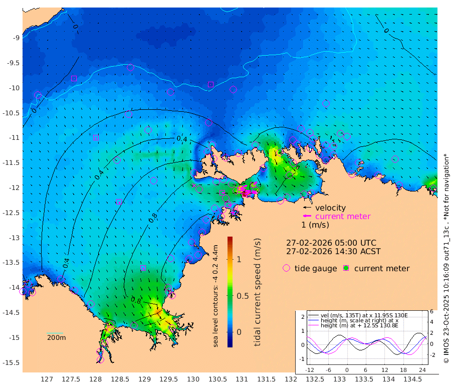 150cm/s 78T +4cm/s rms + 6cm/s 51T. Darwin_C1 52m 107cm/s 91T +4cm/s rms + 7cm/s -161T. Darwin_CW1 22m 64cm/s 73T +4cm/s rms + 8cm/s 61T. Darwin_CW2 34m 63cm/s 51T +3cm/s rms + 9cm/s 98T. Darwin_CW3 22m 86cm/s 89T +5cm/s rms + 7cm/s 88T. Darwin_C3 56m 90cm/s 65T +2cm/s rms + 9cm/s -126T. Darwin_CTbW 22m 1cm/s 129T +9cm/s rms + 2cm/s -110T. NWSLYN 196m 36cm/s 87T +1cm/s rms + 1cm/s -47T. DARBGF 30m 4cm/s 171T +7cm/s rms + 2cm/s -137T. ITFTIS 464m 19cm/s -179T +9cm/s rms + 1cm/s 74T. ITFMHB 146m 22cm/s 164T +4cm/s rms + 1cm/s -134T. ITFJBG 61m 21cm/s 149T +6cm/s rms + 4cm/s 121T. ITFFTB 108m 32cm/s 114T +4cm/s rms + 3cm/s 80T. NRSDAR 19m 19cm Carronade Island 19cm Guy Point 22cm Napier Broome Bay 45cm Lesueur Island 85cm Reveley Island 66cm Rocky Island 103cm Cape Domett 103cm Lacrosse Island 77cm Adolphus Island 44cm Pender Point 30cm Wyndham 42cm The Boxers 40cm Unnamed Shoal 4cm Loxton Shoal 111cm Pelican Island 38cm Calder Shoal 15cm Evans Shoal 79cm Quoin Island 124cm Port Keats 116cm Jones Point 104cm Catfish Island 116cm Cape Scott Offshore 131cm Cape Ford 124cm Anson Bay 16cm Goodrich Bank 115cm Peron Island North 129cm Point Jenny 126cm Native Point 127cm Fish Reef 129cm Tapa Bay 85cm Point Fawcett (Offshore) 133cm Burge Point 126cm Munkunuwa 115cm Beagle A 120cm Parsons Bank 130cm Fenton Patches 4cm Lynedoch Bank 116cm Hancox Shoal Area 133cm Nightcliff 121cm Darwin 114cm Charles Point Patches 87cm Glyde Point 62cm Chambers Bay 57cm Point Stuart 72cm Cape Hotham 65cm Christine Reef 62cm West Alligator Head 45cm East Field Island 59cm Two Hills Bay 88cm Newby Shoal 48cm Camp Point 122cm Medina Inlet South 61cm South Barlow Point 52cm St. Asaph Bay 21cm Cape Van Dieman 17cm Snake Bay 25cm Cache Point -5cm Echo Shoal 29cm Point Jahleel (Off) 45cm Cape Don 21cm Port Essington 27cm Smith Point - West 18cm NW Peacock Island 16cm North Of Jones Shoal 5cm Peacock Island 9cm Point David 21cm D'urville Point 4cm Money Shoal 8cm Copeland Island 18cm Cape Cockburn 12cm One Tree Point 12cm Hogmany Shoal 10cm New Year Island - West 12cm Grant Island 11cm Aurari Bay 15cm Cuthbert Point 14cm North Goulburn Island 12cm Paxie Shoal 10cm Entrance Island 1cm Yabooma Island