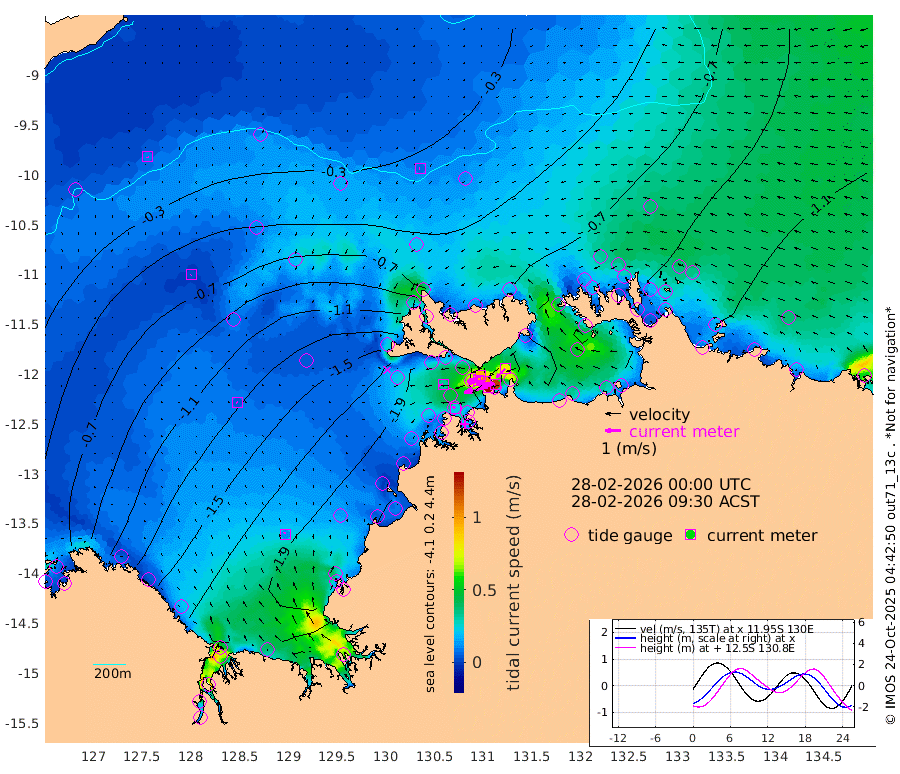 154cm/s -102T +4cm/s rms + 6cm/s 51T. Darwin_C1 52m 118cm/s -90T +4cm/s rms + 7cm/s -161T. Darwin_CW1 22m 69cm/s -106T +4cm/s rms + 8cm/s 61T. Darwin_CW2 34m 78cm/s -135T +3cm/s rms + 9cm/s 98T. Darwin_CW3 22m 102cm/s -90T +5cm/s rms + 7cm/s 88T. Darwin_C3 56m 93cm/s -115T +2cm/s rms + 9cm/s -126T. Darwin_CTbW 22m 6cm/s -82T +9cm/s rms + 2cm/s -110T. NWSLYN 196m 32cm/s -97T +1cm/s rms + 1cm/s -47T. DARBGF 30m 8cm/s 174T +7cm/s rms + 2cm/s -137T. ITFTIS 464m 3cm/s -153T +9cm/s rms + 1cm/s 74T. ITFMHB 146m 12cm/s -15T +4cm/s rms + 1cm/s -134T. ITFJBG 61m 6cm/s -58T +6cm/s rms + 4cm/s 121T. ITFFTB 108m 23cm/s -68T +4cm/s rms + 3cm/s 80T. NRSDAR 19m -50cm Carronade Island -47cm Guy Point -56cm Napier Broome Bay -109cm Lesueur Island -145cm Reveley Island -62cm Rocky Island -191cm Cape Domett -183cm Lacrosse Island -172cm Adolphus Island -136cm Pender Point -128cm Wyndham -82cm The Boxers -94cm Unnamed Shoal -19cm Loxton Shoal -200cm Pelican Island -64cm Calder Shoal -28cm Evans Shoal -184cm Quoin Island -210cm Port Keats -205cm Jones Point -209cm Catfish Island -174cm Cape Scott Offshore -216cm Cape Ford -192cm Anson Bay -43cm Goodrich Bank -176cm Peron Island North -187cm Point Jenny -183cm Native Point -190cm Fish Reef -196cm Tapa Bay -124cm Point Fawcett (Offshore) -209cm Burge Point -169cm Munkunuwa -170cm Beagle A -191cm Parsons Bank -201cm Fenton Patches -31cm Lynedoch Bank -190cm Hancox Shoal Area -202cm Nightcliff -209cm Darwin -201cm Charles Point Patches -166cm Glyde Point -138cm Chambers Bay -133cm Point Stuart -145cm Cape Hotham -132cm Christine Reef -138cm West Alligator Head -127cm East Field Island -127cm Two Hills Bay -145cm Newby Shoal -126cm Camp Point -186cm Medina Inlet South -97cm South Barlow Point -79cm St. Asaph Bay -48cm Cape Van Dieman -50cm Snake Bay -58cm Cache Point -5cm Echo Shoal -63cm Point Jahleel (Off) -100cm Cape Don -70cm Port Essington -69cm Smith Point - West -66cm NW Peacock Island -55cm North Of Jones Shoal -21cm Peacock Island -77cm Point David -70cm D'urville Point -64cm Money Shoal -77cm Copeland Island -106cm Cape Cockburn -78cm One Tree Point -101cm Hogmany Shoal -82cm New Year Island - West -84cm Grant Island -89cm Aurari Bay -106cm Cuthbert Point -96cm North Goulburn Island -113cm Paxie Shoal -114cm Entrance Island -119cm Yabooma Island