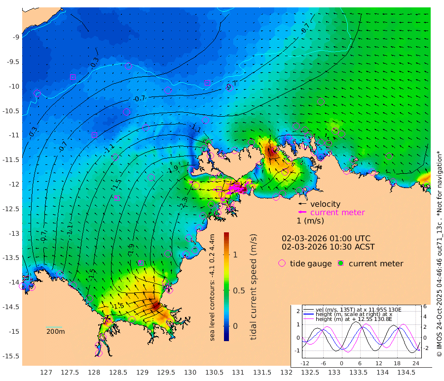 191cm/s -102T +4cm/s rms + 6cm/s 51T. Darwin_C1 52m 137cm/s -89T +4cm/s rms + 7cm/s -161T. Darwin_CW1 22m 104cm/s -107T +4cm/s rms + 8cm/s 61T. Darwin_CW2 34m 80cm/s -130T +3cm/s rms + 9cm/s 98T. Darwin_CW3 22m 134cm/s -91T +5cm/s rms + 7cm/s 88T. Darwin_C3 56m 114cm/s -115T +2cm/s rms + 9cm/s -126T. Darwin_CTbW 22m 9cm/s -56T +9cm/s rms + 2cm/s -110T. NWSLYN 196m 72cm/s -92T +1cm/s rms + 1cm/s -47T. DARBGF 30m 9cm/s -158T +7cm/s rms + 2cm/s -137T. ITFTIS 464m 8cm/s -35T +9cm/s rms + 1cm/s 74T. ITFMHB 146m 36cm/s -25T +4cm/s rms + 1cm/s -134T. ITFJBG 61m 29cm/s -49T +6cm/s rms + 4cm/s 121T. ITFFTB 108m 63cm/s -62T +4cm/s rms + 3cm/s 80T. NRSDAR 19m 11cm Carronade Island 16cm Guy Point 4cm Napier Broome Bay -70cm Lesueur Island -124cm Reveley Island -57cm Rocky Island -150cm Cape Domett -147cm Lacrosse Island -95cm Adolphus Island -20cm Pender Point 18cm Wyndham -102cm The Boxers -127cm Unnamed Shoal -34cm Loxton Shoal -173cm Pelican Island -93cm Calder Shoal -50cm Evans Shoal -89cm Quoin Island -218cm Port Keats -215cm Jones Point -87cm Catfish Island -211cm Cape Scott Offshore -285cm Cape Ford -239cm Anson Bay -72cm Goodrich Bank -221cm Peron Island North -233cm Point Jenny -232cm Native Point -241cm Fish Reef -245cm Tapa Bay -176cm Point Fawcett (Offshore) -252cm Burge Point -235cm Munkunuwa -214cm Beagle A -235cm Parsons Bank -239cm Fenton Patches -51cm Lynedoch Bank -219cm Hancox Shoal Area -240cm Nightcliff -250cm Darwin -247cm Charles Point Patches -159cm Glyde Point -80cm Chambers Bay -63cm Point Stuart -121cm Cape Hotham -73cm Christine Reef -57cm West Alligator Head -22cm East Field Island -86cm Two Hills Bay -169cm Newby Shoal -87cm Camp Point -241cm Medina Inlet South -150cm South Barlow Point -125cm St. Asaph Bay -81cm Cape Van Dieman -85cm Snake Bay -82cm Cache Point -8cm Echo Shoal -82cm Point Jahleel (Off) -104cm Cape Don -87cm Port Essington -86cm Smith Point - West -78cm NW Peacock Island -73cm North Of Jones Shoal -27cm Peacock Island -79cm Point David -84cm D'urville Point -70cm Money Shoal -76cm Copeland Island -104cm Cape Cockburn -82cm One Tree Point -91cm Hogmany Shoal -80cm New Year Island - West -81cm Grant Island -78cm Aurari Bay -79cm Cuthbert Point -86cm North Goulburn Island -82cm Paxie Shoal -70cm Entrance Island -54cm Yabooma Island