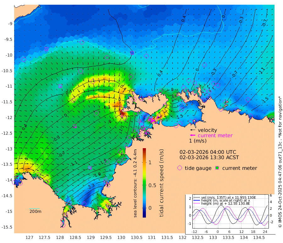 67cm/s -101T +4cm/s rms + 6cm/s 51T. Darwin_C1 52m 80cm/s -93T +4cm/s rms + 7cm/s -161T. Darwin_CW1 22m 47cm/s -106T +4cm/s rms + 8cm/s 61T. Darwin_CW2 34m 72cm/s -140T +3cm/s rms + 9cm/s 98T. Darwin_CW3 22m 99cm/s -90T +5cm/s rms + 7cm/s 88T. Darwin_C3 56m 21cm/s -115T +2cm/s rms + 9cm/s -126T. Darwin_CTbW 22m 6cm/s -164T +9cm/s rms + 2cm/s -110T. NWSLYN 196m 33cm/s 106T +1cm/s rms + 1cm/s -47T. DARBGF 30m 12cm/s 127T +7cm/s rms + 2cm/s -137T. ITFTIS 464m 23cm/s 155T +9cm/s rms + 1cm/s 74T. ITFMHB 146m 29cm/s 126T +4cm/s rms + 1cm/s -134T. ITFJBG 61m 41cm/s 127T +6cm/s rms + 4cm/s 121T. ITFFTB 108m 41cm/s 133T +4cm/s rms + 3cm/s 80T. NRSDAR 19m 11cm Carronade Island 6cm Guy Point 11cm Napier Broome Bay -71cm Lesueur Island -163cm Reveley Island -40cm Rocky Island -262cm Cape Domett -230cm Lacrosse Island -293cm Adolphus Island -297cm Pender Point -299cm Wyndham 16cm The Boxers 8cm Unnamed Shoal 66cm Loxton Shoal -266cm Pelican Island 38cm Calder Shoal 58cm Evans Shoal -363cm Quoin Island -225cm Port Keats -226cm Jones Point -289cm Catfish Island -122cm Cape Scott Offshore -133cm Cape Ford -137cm Anson Bay 45cm Goodrich Bank -111cm Peron Island North -103cm Point Jenny -100cm Native Point -114cm Fish Reef -131cm Tapa Bay -12cm Point Fawcett (Offshore) -158cm Burge Point -108cm Munkunuwa -72cm Beagle A -153cm Parsons Bank -140cm Fenton Patches 43cm Lynedoch Bank -163cm Hancox Shoal Area -158cm Nightcliff -185cm Darwin -155cm Charles Point Patches -167cm Glyde Point -188cm Chambers Bay -194cm Point Stuart -161cm Cape Hotham -167cm Christine Reef -211cm West Alligator Head -226cm East Field Island -147cm Two Hills Bay -32cm Newby Shoal -156cm Camp Point -126cm Medina Inlet South 2cm South Barlow Point 25cm St. Asaph Bay 46cm Cape Van Dieman 40cm Snake Bay 37cm Cache Point 77cm Echo Shoal 13cm Point Jahleel (Off) -51cm Cape Don -2cm Port Essington 7cm Smith Point - West 3cm NW Peacock Island 21cm North Of Jones Shoal 5cm Peacock Island -38cm Point David 0cm D'urville Point -8cm Money Shoal -42cm Copeland Island -54cm Cape Cockburn -33cm One Tree Point -64cm Hogmany Shoal -37cm New Year Island - West -44cm Grant Island -67cm Aurari Bay -99cm Cuthbert Point -72cm North Goulburn Island -130cm Paxie Shoal -151cm Entrance Island -196cm Yabooma Island