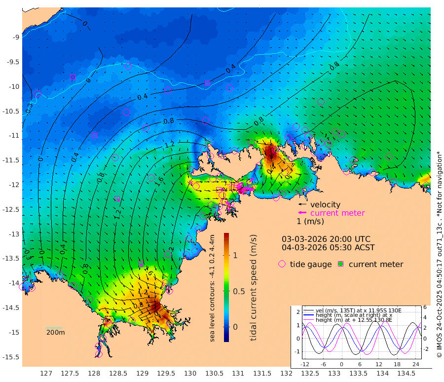 161cm/s 78T +4cm/s rms + 6cm/s 51T. Darwin_C1 52m 113cm/s 89T +4cm/s rms + 7cm/s -161T. Darwin_CW1 22m 88cm/s 75T +4cm/s rms + 8cm/s 61T. Darwin_CW2 34m 68cm/s 48T +3cm/s rms + 9cm/s 98T. Darwin_CW3 22m 114cm/s 88T +5cm/s rms + 7cm/s 88T. Darwin_C3 56m 85cm/s 65T +2cm/s rms + 9cm/s -126T. Darwin_CTbW 22m 9cm/s 136T +9cm/s rms + 2cm/s -110T. NWSLYN 196m 75cm/s 90T +1cm/s rms + 1cm/s -47T. DARBGF 30m 6cm/s 18T +7cm/s rms + 2cm/s -137T. ITFTIS 464m 9cm/s 159T +9cm/s rms + 1cm/s 74T. ITFMHB 146m 45cm/s 159T +4cm/s rms + 1cm/s -134T. ITFJBG 61m 34cm/s 135T +6cm/s rms + 4cm/s 121T. ITFFTB 108m 76cm/s 118T +4cm/s rms + 3cm/s 80T. NRSDAR 19m -102cm Carronade Island -107cm Guy Point -110cm Napier Broome Bay -9cm Lesueur Island 60cm Reveley Island -18cm Rocky Island 68cm Cape Domett 70cm Lacrosse Island 11cm Adolphus Island -98cm Pender Point -144cm Wyndham 54cm The Boxers 91cm Unnamed Shoal -6cm Loxton Shoal 113cm Pelican Island 53cm Calder Shoal 25cm Evans Shoal 2cm Quoin Island 166cm Port Keats 168cm Jones Point -10cm Catfish Island 178cm Cape Scott Offshore 246cm Cape Ford 212cm Anson Bay 52cm Goodrich Bank 195cm Peron Island North 199cm Point Jenny 197cm Native Point 211cm Fish Reef 214cm Tapa Bay 151cm Point Fawcett (Offshore) 214cm Burge Point 213cm Munkunuwa 179cm Beagle A 213cm Parsons Bank 203cm Fenton Patches 31cm Lynedoch Bank 195cm Hancox Shoal Area 211cm Nightcliff 220cm Darwin 219cm Charles Point Patches 119cm Glyde Point 30cm Chambers Bay 11cm Point Stuart 85cm Cape Hotham 21cm Christine Reef -2cm West Alligator Head -46cm East Field Island 45cm Two Hills Bay 114cm Newby Shoal 44cm Camp Point 213cm Medina Inlet South 133cm South Barlow Point 106cm St. Asaph Bay 64cm Cape Van Dieman 69cm Snake Bay 62cm Cache Point -32cm Echo Shoal 64cm Point Jahleel (Off) 82cm Cape Don 78cm Port Essington 77cm Smith Point - West 71cm NW Peacock Island 65cm North Of Jones Shoal 25cm Peacock Island 83cm Point David 81cm D'urville Point 65cm Money Shoal 82cm Copeland Island 107cm Cape Cockburn 82cm One Tree Point 92cm Hogmany Shoal 76cm New Year Island - West 79cm Grant Island 85cm Aurari Bay 81cm Cuthbert Point 88cm North Goulburn Island 80cm Paxie Shoal 74cm Entrance Island 71cm Yabooma Island