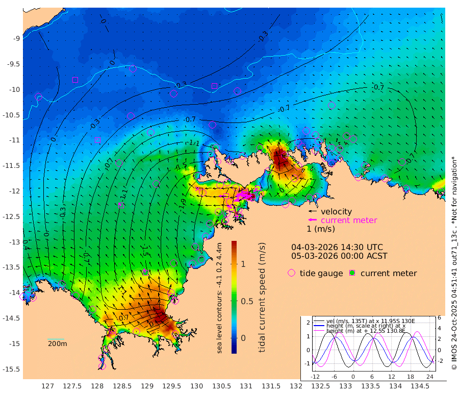 188cm/s -102T +4cm/s rms + 6cm/s 51T. Darwin_C1 52m 136cm/s -89T +4cm/s rms + 7cm/s -161T. Darwin_CW1 22m 113cm/s -108T +4cm/s rms + 8cm/s 61T. Darwin_CW2 34m 67cm/s -128T +3cm/s rms + 9cm/s 98T. Darwin_CW3 22m 134cm/s -92T +5cm/s rms + 7cm/s 88T. Darwin_C3 56m 108cm/s -115T +2cm/s rms + 9cm/s -126T. Darwin_CTbW 22m 3cm/s -78T +9cm/s rms + 2cm/s -110T. NWSLYN 196m 86cm/s -90T +1cm/s rms + 1cm/s -47T. DARBGF 30m 2cm/s -110T +7cm/s rms + 2cm/s -137T. ITFTIS 464m 15cm/s -8T +9cm/s rms + 1cm/s 74T. ITFMHB 146m 52cm/s -23T +4cm/s rms + 1cm/s -134T. ITFJBG 61m 39cm/s -42T +6cm/s rms + 4cm/s 121T. ITFFTB 108m 76cm/s -61T +4cm/s rms + 3cm/s 80T. NRSDAR 19m 116cm Carronade Island 125cm Guy Point 128cm Napier Broome Bay 9cm Lesueur Island -63cm Reveley Island -16cm Rocky Island -81cm Cape Domett -81cm Lacrosse Island -33cm Adolphus Island 109cm Pender Point 157cm Wyndham -57cm The Boxers -86cm Unnamed Shoal 4cm Loxton Shoal -126cm Pelican Island -59cm Calder Shoal -26cm Evans Shoal -13cm Quoin Island -189cm Port Keats -182cm Jones Point 29cm Catfish Island -190cm Cape Scott Offshore -269cm Cape Ford -224cm Anson Bay -55cm Goodrich Bank -212cm Peron Island North -217cm Point Jenny -215cm Native Point -234cm Fish Reef -231cm Tapa Bay -161cm Point Fawcett (Offshore) -237cm Burge Point -234cm Munkunuwa -207cm Beagle A -232cm Parsons Bank -234cm Fenton Patches -31cm Lynedoch Bank -211cm Hancox Shoal Area -235cm Nightcliff -240cm Darwin -236cm Charles Point Patches -129cm Glyde Point -26cm Chambers Bay -4cm Point Stuart -88cm Cape Hotham -22cm Christine Reef 9cm West Alligator Head 54cm East Field Island -42cm Two Hills Bay -137cm Newby Shoal -40cm Camp Point -233cm Medina Inlet South -147cm South Barlow Point -116cm St. Asaph Bay -66cm Cape Van Dieman -71cm Snake Bay -64cm Cache Point 32cm Echo Shoal -66cm Point Jahleel (Off) -81cm Cape Don -75cm Port Essington -80cm Smith Point - West -70cm NW Peacock Island -63cm North Of Jones Shoal -24cm Peacock Island -68cm Point David -80cm D'urville Point -56cm Money Shoal -68cm Copeland Island -93cm Cape Cockburn -70cm One Tree Point -67cm Hogmany Shoal -65cm New Year Island - West -66cm Grant Island -73cm Aurari Bay -63cm Cuthbert Point -72cm North Goulburn Island -48cm Paxie Shoal -48cm Entrance Island -36cm Yabooma Island