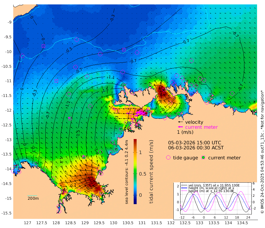 196cm/s -102T +4cm/s rms + 6cm/s 51T. Darwin_C1 52m 147cm/s -89T +4cm/s rms + 7cm/s -161T. Darwin_CW1 22m 124cm/s -108T +4cm/s rms + 8cm/s 61T. Darwin_CW2 34m 72cm/s -128T +3cm/s rms + 9cm/s 98T. Darwin_CW3 22m 154cm/s -92T +5cm/s rms + 7cm/s 88T. Darwin_C3 56m 111cm/s -115T +2cm/s rms + 9cm/s -126T. Darwin_CTbW 22m 4cm/s -76T +9cm/s rms + 2cm/s -110T. NWSLYN 196m 89cm/s -91T +1cm/s rms + 1cm/s -47T. DARBGF 30m 3cm/s -130T +7cm/s rms + 2cm/s -137T. ITFTIS 464m 15cm/s -10T +9cm/s rms + 1cm/s 74T. ITFMHB 146m 51cm/s -22T +4cm/s rms + 1cm/s -134T. ITFJBG 61m 39cm/s -43T +6cm/s rms + 4cm/s 121T. ITFFTB 108m 76cm/s -62T +4cm/s rms + 3cm/s 80T. NRSDAR 19m 108cm Carronade Island 115cm Guy Point 118cm Napier Broome Bay -6cm Lesueur Island -78cm Reveley Island -19cm Rocky Island -99cm Cape Domett -99cm Lacrosse Island -51cm Adolphus Island 94cm Pender Point 145cm Wyndham -72cm The Boxers -100cm Unnamed Shoal -12cm Loxton Shoal -143cm Pelican Island -76cm Calder Shoal -40cm Evans Shoal -35cm Quoin Island -209cm Port Keats -196cm Jones Point 26cm Catfish Island -210cm Cape Scott Offshore -283cm Cape Ford -246cm Anson Bay -68cm Goodrich Bank -231cm Peron Island North -233cm Point Jenny -232cm Native Point -249cm Fish Reef -250cm Tapa Bay -178cm Point Fawcett (Offshore) -255cm Burge Point -252cm Munkunuwa -221cm Beagle A -249cm Parsons Bank -249cm Fenton Patches -44cm Lynedoch Bank -229cm Hancox Shoal Area -255cm Nightcliff -261cm Darwin -258cm Charles Point Patches -140cm Glyde Point -31cm Chambers Bay -4cm Point Stuart -96cm Cape Hotham -27cm Christine Reef 9cm West Alligator Head 57cm East Field Island -47cm Two Hills Bay -154cm Newby Shoal -47cm Camp Point -253cm Medina Inlet South -164cm South Barlow Point -132cm St. Asaph Bay -79cm Cape Van Dieman -86cm Snake Bay -76cm Cache Point 19cm Echo Shoal -78cm Point Jahleel (Off) -91cm Cape Don -86cm Port Essington -90cm Smith Point - West -80cm NW Peacock Island -77cm North Of Jones Shoal -28cm Peacock Island -77cm Point David -90cm D'urville Point -67cm Money Shoal -76cm Copeland Island -104cm Cape Cockburn -80cm One Tree Point -77cm Hogmany Shoal -74cm New Year Island - West -75cm Grant Island -79cm Aurari Bay -66cm Cuthbert Point -80cm North Goulburn Island -55cm Paxie Shoal -50cm Entrance Island -36cm Yabooma Island