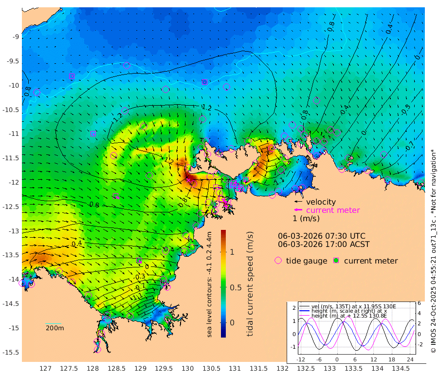 29cm/s 80T +4cm/s rms + 6cm/s 51T. Darwin_C1 52m 25cm/s 80T +4cm/s rms + 7cm/s -161T. Darwin_CW1 22m 16cm/s 76T +4cm/s rms + 8cm/s 61T. Darwin_CW2 34m 32cm/s -148T +3cm/s rms + 9cm/s 98T. Darwin_CW3 22m 12cm/s -80T +5cm/s rms + 7cm/s 88T. Darwin_C3 56m 38cm/s 62T +2cm/s rms + 9cm/s -126T. Darwin_CTbW 22m 6cm/s 143T +9cm/s rms + 2cm/s -110T. NWSLYN 196m 76cm/s 95T +1cm/s rms + 1cm/s -47T. DARBGF 30m 12cm/s 69T +7cm/s rms + 2cm/s -137T. ITFTIS 464m 20cm/s 131T +9cm/s rms + 1cm/s 74T. ITFMHB 146m 52cm/s 140T +4cm/s rms + 1cm/s -134T. ITFJBG 61m 55cm/s 123T +6cm/s rms + 4cm/s 121T. ITFFTB 108m 80cm/s 126T +4cm/s rms + 3cm/s 80T. NRSDAR 19m -13cm Carronade Island -22cm Guy Point -15cm Napier Broome Bay -14cm Lesueur Island -70cm Reveley Island -20cm Rocky Island -135cm Cape Domett -111cm Lacrosse Island -191cm Adolphus Island -276cm Pender Point -307cm Wyndham 94cm The Boxers 103cm Unnamed Shoal 94cm Loxton Shoal -124cm Pelican Island 111cm Calder Shoal 94cm Evans Shoal -282cm Quoin Island -32cm Port Keats -48cm Jones Point -306cm Catfish Island 40cm Cape Scott Offshore 120cm Cape Ford 53cm Anson Bay 107cm Goodrich Bank 59cm Peron Island North 82cm Point Jenny 86cm Native Point 75cm Fish Reef 68cm Tapa Bay 118cm Point Fawcett (Offshore) 57cm Burge Point 77cm Munkunuwa 108cm Beagle A 41cm Parsons Bank 68cm Fenton Patches 90cm Lynedoch Bank 23cm Hancox Shoal Area 48cm Nightcliff 29cm Darwin 57cm Charles Point Patches -36cm Glyde Point -128cm Chambers Bay -158cm Point Stuart -67cm Cape Hotham -109cm Christine Reef -186cm West Alligator Head -222cm East Field Island -91cm Two Hills Bay 114cm Newby Shoal -78cm Camp Point 70cm Medina Inlet South 127cm South Barlow Point 126cm St. Asaph Bay 113cm Cape Van Dieman 113cm Snake Bay 102cm Cache Point 82cm Echo Shoal 78cm Point Jahleel (Off) 29cm Cape Don 70cm Port Essington 76cm Smith Point - West 69cm NW Peacock Island 82cm North Of Jones Shoal 27cm Peacock Island 31cm Point David 71cm D'urville Point 59cm Money Shoal 24cm Copeland Island 35cm Cape Cockburn 36cm One Tree Point 9cm Hogmany Shoal 35cm New Year Island - West 27cm Grant Island 3cm Aurari Bay -32cm Cuthbert Point 3cm North Goulburn Island -59cm Paxie Shoal -83cm Entrance Island -135cm Yabooma Island