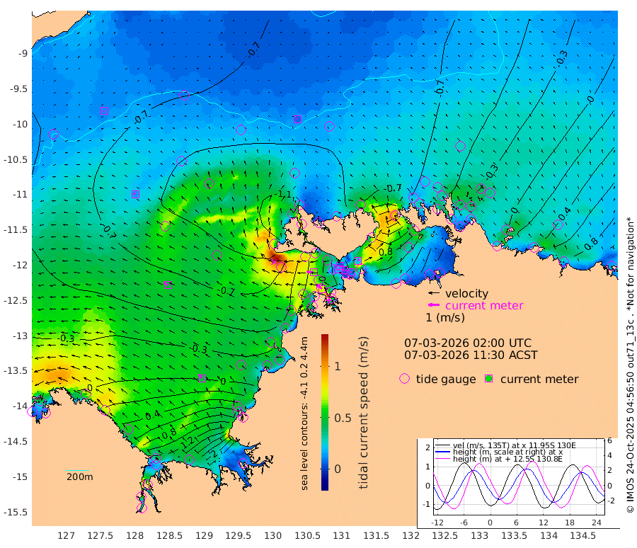 2cm/s 151T +4cm/s rms + 6cm/s 51T. Darwin_C1 52m 8cm/s 76T +4cm/s rms + 7cm/s -161T. Darwin_CW1 22m 19cm/s -111T +4cm/s rms + 8cm/s 61T. Darwin_CW2 34m 23cm/s 30T +3cm/s rms + 9cm/s 98T. Darwin_CW3 22m 5cm/s 127T +5cm/s rms + 7cm/s 88T. Darwin_C3 56m 6cm/s -131T +2cm/s rms + 9cm/s -126T. Darwin_CTbW 22m 7cm/s -22T +9cm/s rms + 2cm/s -110T. NWSLYN 196m 63cm/s -85T +1cm/s rms + 1cm/s -47T. DARBGF 30m 12cm/s -117T +7cm/s rms + 2cm/s -137T. ITFTIS 464m 15cm/s -56T +9cm/s rms + 1cm/s 74T. ITFMHB 146m 44cm/s -36T +4cm/s rms + 1cm/s -134T. ITFJBG 61m 47cm/s -56T +6cm/s rms + 4cm/s 121T. ITFFTB 108m 73cm/s -54T +4cm/s rms + 3cm/s 80T. NRSDAR 19m 57cm Carronade Island 64cm Guy Point 55cm Napier Broome Bay 57cm Lesueur Island 88cm Reveley Island 27cm Rocky Island 152cm Cape Domett 137cm Lacrosse Island 211cm Adolphus Island 276cm Pender Point 317cm Wyndham -60cm The Boxers -77cm Unnamed Shoal -62cm Loxton Shoal 137cm Pelican Island -74cm Calder Shoal -62cm Evans Shoal 294cm Quoin Island 56cm Port Keats 61cm Jones Point 341cm Catfish Island -11cm Cape Scott Offshore -88cm Cape Ford -26cm Anson Bay -79cm Goodrich Bank -25cm Peron Island North -51cm Point Jenny -57cm Native Point -41cm Fish Reef -42cm Tapa Bay -79cm Point Fawcett (Offshore) -28cm Burge Point -58cm Munkunuwa -68cm Beagle A -20cm Parsons Bank -35cm Fenton Patches -64cm Lynedoch Bank -1cm Hancox Shoal Area -17cm Nightcliff -6cm Darwin -31cm Charles Point Patches 57cm Glyde Point 144cm Chambers Bay 175cm Point Stuart 89cm Cape Hotham 129cm Christine Reef 202cm West Alligator Head 238cm East Field Island 113cm Two Hills Bay -64cm Newby Shoal 93cm Camp Point -43cm Medina Inlet South -95cm South Barlow Point -91cm St. Asaph Bay -85cm Cape Van Dieman -85cm Snake Bay -69cm Cache Point -47cm Echo Shoal -48cm Point Jahleel (Off) -3cm Cape Don -44cm Port Essington -47cm Smith Point - West -41cm NW Peacock Island -48cm North Of Jones Shoal -16cm Peacock Island -14cm Point David -44cm D'urville Point -35cm Money Shoal -7cm Copeland Island -4cm Cape Cockburn -14cm One Tree Point 9cm Hogmany Shoal -13cm New Year Island - West -8cm Grant Island 16cm Aurari Bay 45cm Cuthbert Point 15cm North Goulburn Island 65cm Paxie Shoal 85cm Entrance Island 136cm Yabooma Island