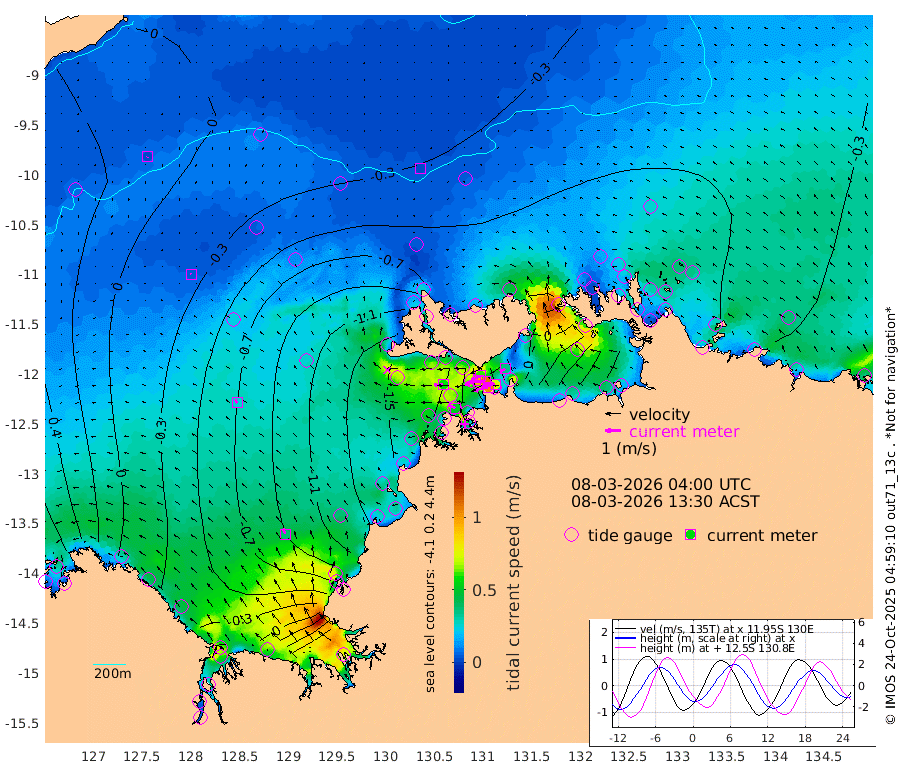 104cm/s -103T +4cm/s rms + 6cm/s 51T. Darwin_C1 52m 73cm/s -89T +4cm/s rms + 7cm/s -161T. Darwin_CW1 22m 93cm/s -109T +4cm/s rms + 8cm/s 61T. Darwin_CW2 34m 36cm/s -116T +3cm/s rms + 9cm/s 98T. Darwin_CW3 22m 107cm/s -92T +5cm/s rms + 7cm/s 88T. Darwin_C3 56m 60cm/s -116T +2cm/s rms + 9cm/s -126T. Darwin_CTbW 22m 2cm/s -27T +9cm/s rms + 2cm/s -110T. NWSLYN 196m 59cm/s -91T +1cm/s rms + 1cm/s -47T. DARBGF 30m 3cm/s -139T +7cm/s rms + 2cm/s -137T. ITFTIS 464m 6cm/s -13T +9cm/s rms + 1cm/s 74T. ITFMHB 146m 36cm/s -22T +4cm/s rms + 1cm/s -134T. ITFJBG 61m 26cm/s -41T +6cm/s rms + 4cm/s 121T. ITFFTB 108m 51cm/s -63T +4cm/s rms + 3cm/s 80T. NRSDAR 19m 138cm Carronade Island 143cm Guy Point 139cm Napier Broome Bay 59cm Lesueur Island -9cm Reveley Island -12cm Rocky Island -14cm Cape Domett -3cm Lacrosse Island 23cm Adolphus Island 122cm Pender Point 174cm Wyndham -26cm The Boxers -53cm Unnamed Shoal 8cm Loxton Shoal -49cm Pelican Island -28cm Calder Shoal -9cm Evans Shoal 47cm Quoin Island -101cm Port Keats -96cm Jones Point 147cm Catfish Island -107cm Cape Scott Offshore -152cm Cape Ford -137cm Anson Bay -36cm Goodrich Bank -119cm Peron Island North -128cm Point Jenny -132cm Native Point -132cm Fish Reef -144cm Tapa Bay -90cm Point Fawcett (Offshore) -141cm Burge Point -156cm Munkunuwa -116cm Beagle A -147cm Parsons Bank -136cm Fenton Patches -21cm Lynedoch Bank -129cm Hancox Shoal Area -141cm Nightcliff -150cm Darwin -148cm Charles Point Patches -55cm Glyde Point 34cm Chambers Bay 61cm Point Stuart -15cm Cape Hotham 34cm Christine Reef 77cm West Alligator Head 117cm East Field Island 21cm Two Hills Bay -67cm Newby Shoal 10cm Camp Point -147cm Medina Inlet South -99cm South Barlow Point -72cm St. Asaph Bay -43cm Cape Van Dieman -51cm Snake Bay -32cm Cache Point 38cm Echo Shoal -32cm Point Jahleel (Off) -34cm Cape Don -42cm Port Essington -43cm Smith Point - West -37cm NW Peacock Island -30cm North Of Jones Shoal -12cm Peacock Island -37cm Point David -45cm D'urville Point -30cm Money Shoal -35cm Copeland Island -40cm Cape Cockburn -35cm One Tree Point -26cm Hogmany Shoal -32cm New Year Island - West -34cm Grant Island -31cm Aurari Bay -21cm Cuthbert Point -31cm North Goulburn Island -12cm Paxie Shoal -10cm Entrance Island 10cm Yabooma Island