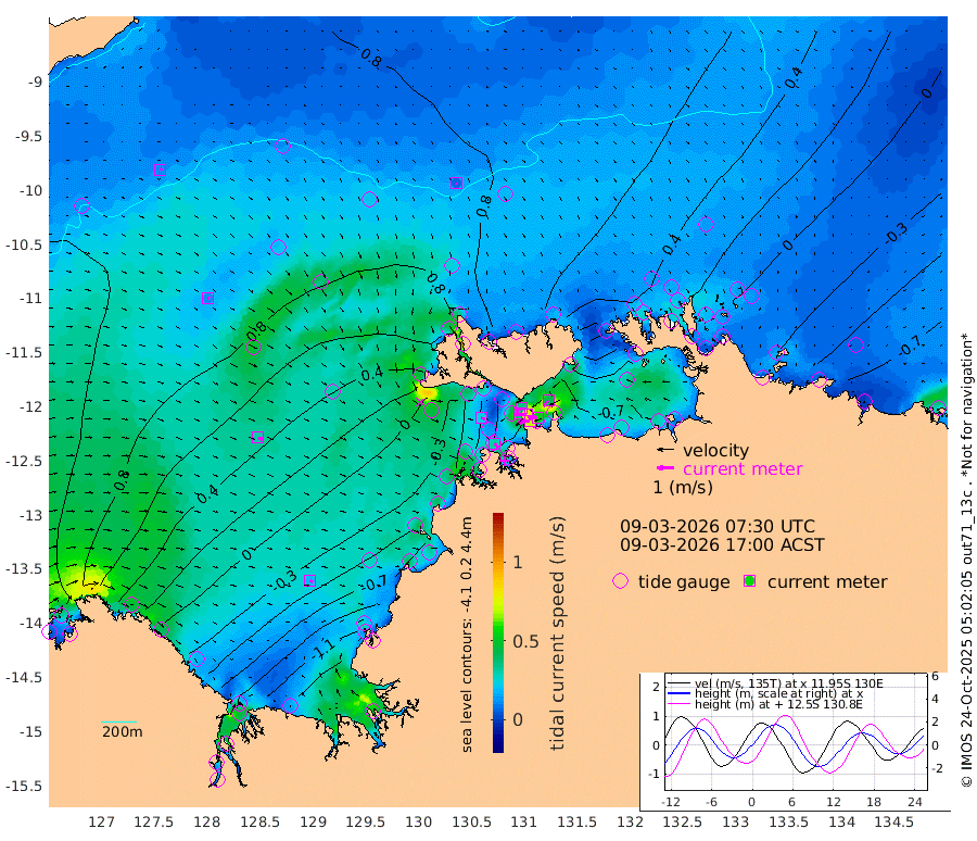 70cm/s -100T +4cm/s rms + 6cm/s 51T. Darwin_C1 52m 53cm/s -92T +4cm/s rms + 7cm/s -161T. Darwin_CW1 22m 34cm/s -106T +4cm/s rms + 8cm/s 61T. Darwin_CW2 34m 43cm/s -135T +3cm/s rms + 9cm/s 98T. Darwin_CW3 22m 75cm/s -91T +5cm/s rms + 7cm/s 88T. Darwin_C3 56m 36cm/s -116T +2cm/s rms + 9cm/s -126T. Darwin_CTbW 22m 7cm/s 131T +9cm/s rms + 2cm/s -110T. NWSLYN 196m 24cm/s 102T +1cm/s rms + 1cm/s -47T. DARBGF 30m 12cm/s 56T +7cm/s rms + 2cm/s -137T. ITFTIS 464m 13cm/s 98T +9cm/s rms + 1cm/s 74T. ITFMHB 146m 20cm/s 115T +4cm/s rms + 1cm/s -134T. ITFJBG 61m 30cm/s 107T +6cm/s rms + 4cm/s 121T. ITFFTB 108m 30cm/s 137T +4cm/s rms + 3cm/s 80T. NRSDAR 19m 81cm Carronade Island 80cm Guy Point 81cm Napier Broome Bay 35cm Lesueur Island -54cm Reveley Island -39cm Rocky Island -113cm Cape Domett -89cm Lacrosse Island -148cm Adolphus Island -145cm Pender Point -148cm Wyndham 73cm The Boxers 68cm Unnamed Shoal 96cm Loxton Shoal -132cm Pelican Island 89cm Calder Shoal 81cm Evans Shoal -220cm Quoin Island -81cm Port Keats -88cm Jones Point -244cm Catfish Island -30cm Cape Scott Offshore 65cm Cape Ford -37cm Anson Bay 79cm Goodrich Bank -20cm Peron Island North -1cm Point Jenny 1cm Native Point -14cm Fish Reef -20cm Tapa Bay 50cm Point Fawcett (Offshore) -23cm Burge Point -18cm Munkunuwa 26cm Beagle A -46cm Parsons Bank -17cm Fenton Patches 72cm Lynedoch Bank -52cm Hancox Shoal Area -41cm Nightcliff -58cm Darwin -31cm Charles Point Patches -62cm Glyde Point -94cm Chambers Bay -106cm Point Stuart -67cm Cape Hotham -77cm Christine Reef -122cm West Alligator Head -129cm East Field Island -73cm Two Hills Bay 63cm Newby Shoal -56cm Camp Point -22cm Medina Inlet South 55cm South Barlow Point 71cm St. Asaph Bay 80cm Cape Van Dieman 75cm Snake Bay 74cm Cache Point 101cm Echo Shoal 51cm Point Jahleel (Off) 3cm Cape Don 37cm Port Essington 37cm Smith Point - West 37cm NW Peacock Island 52cm North Of Jones Shoal 16cm Peacock Island 8cm Point David 32cm D'urville Point 37cm Money Shoal 2cm Copeland Island 5cm Cape Cockburn 11cm One Tree Point -1cm Hogmany Shoal 13cm New Year Island - West 6cm Grant Island -22cm Aurari Bay -46cm Cuthbert Point -16cm North Goulburn Island -54cm Paxie Shoal -75cm Entrance Island -111cm Yabooma Island