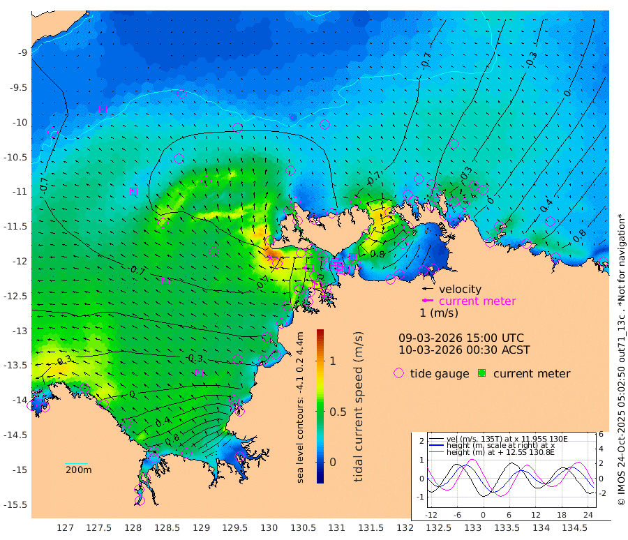 22cm/s -106T +4cm/s rms + 6cm/s 51T. Darwin_C1 52m 11cm/s -79T +4cm/s rms + 7cm/s -161T. Darwin_CW1 22m 26cm/s -105T +4cm/s rms + 8cm/s 61T. Darwin_CW2 34m 11cm/s 31T +3cm/s rms + 9cm/s 98T. Darwin_CW3 22m 14cm/s -104T +5cm/s rms + 7cm/s 88T. Darwin_C3 56m 17cm/s -116T +2cm/s rms + 9cm/s -126T. Darwin_CTbW 22m 10cm/s -40T +9cm/s rms + 2cm/s -110T. NWSLYN 196m 62cm/s -87T +1cm/s rms + 1cm/s -47T. DARBGF 30m 10cm/s -110T +7cm/s rms + 2cm/s -137T. ITFTIS 464m 19cm/s -34T +9cm/s rms + 1cm/s 74T. ITFMHB 146m 37cm/s -33T +4cm/s rms + 1cm/s -134T. ITFJBG 61m 43cm/s -55T +6cm/s rms + 4cm/s 121T. ITFFTB 108m 71cm/s -56T +4cm/s rms + 3cm/s 80T. NRSDAR 19m 7cm Carronade Island 3cm Guy Point 13cm Napier Broome Bay -4cm Lesueur Island 17cm Reveley Island 23cm Rocky Island 68cm Cape Domett 51cm Lacrosse Island 123cm Adolphus Island 182cm Pender Point 220cm Wyndham -80cm The Boxers -81cm Unnamed Shoal -85cm Loxton Shoal 57cm Pelican Island -101cm Calder Shoal -83cm Evans Shoal 193cm Quoin Island -10cm Port Keats 4cm Jones Point 289cm Catfish Island -60cm Cape Scott Offshore -174cm Cape Ford -69cm Anson Bay -92cm Goodrich Bank -70cm Peron Island North -92cm Point Jenny -97cm Native Point -78cm Fish Reef -89cm Tapa Bay -109cm Point Fawcett (Offshore) -75cm Burge Point -98cm Munkunuwa -102cm Beagle A -61cm Parsons Bank -77cm Fenton Patches -72cm Lynedoch Bank -49cm Hancox Shoal Area -66cm Nightcliff -52cm Darwin -76cm Charles Point Patches 16cm Glyde Point 98cm Chambers Bay 128cm Point Stuart 45cm Cape Hotham 81cm Christine Reef 149cm West Alligator Head 184cm East Field Island 74cm Two Hills Bay -94cm Newby Shoal 56cm Camp Point -83cm Medina Inlet South -112cm South Barlow Point -113cm St. Asaph Bay -96cm Cape Van Dieman -93cm Snake Bay -84cm Cache Point -70cm Echo Shoal -66cm Point Jahleel (Off) -20cm Cape Don -51cm Port Essington -56cm Smith Point - West -48cm NW Peacock Island -59cm North Of Jones Shoal -18cm Peacock Island -17cm Point David -48cm D'urville Point -38cm Money Shoal -10cm Copeland Island -9cm Cape Cockburn -17cm One Tree Point -7cm Hogmany Shoal -15cm New Year Island - West -12cm Grant Island 19cm Aurari Bay 47cm Cuthbert Point 12cm North Goulburn Island 58cm Paxie Shoal 80cm Entrance Island 126cm Yabooma Island