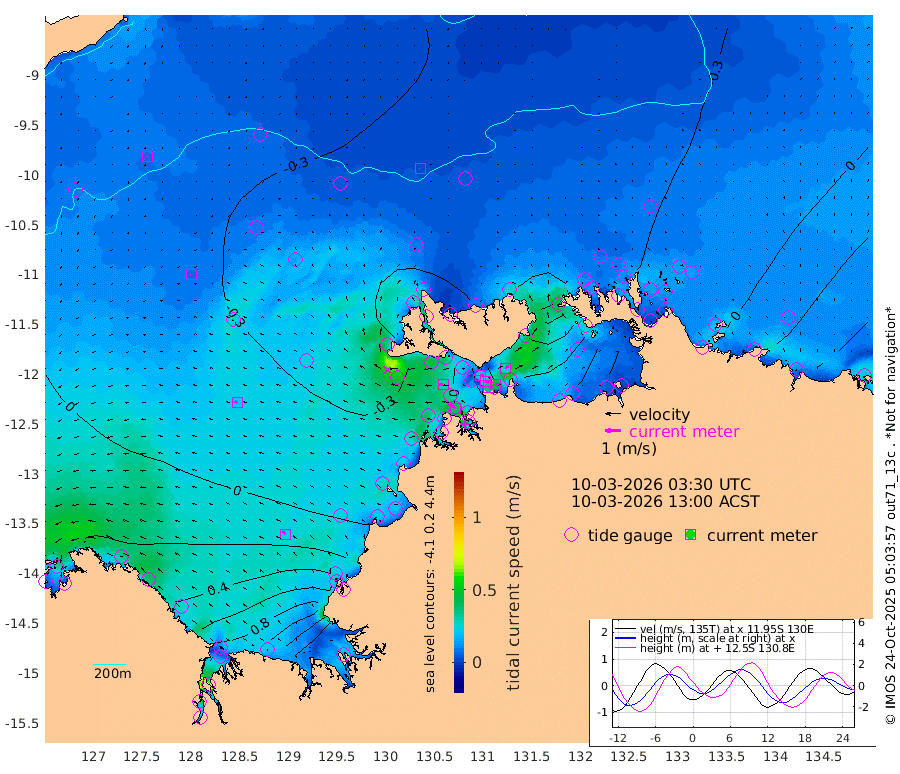 38cm/s 80T +4cm/s rms + 6cm/s 51T. Darwin_C1 52m 43cm/s 90T +4cm/s rms + 7cm/s -161T. Darwin_CW1 22m 1cm/s 82T +4cm/s rms + 8cm/s 61T. Darwin_CW2 34m 27cm/s 45T +3cm/s rms + 9cm/s 98T. Darwin_CW3 22m 25cm/s 94T +5cm/s rms + 7cm/s 88T. Darwin_C3 56m 20cm/s 68T +2cm/s rms + 9cm/s -126T. Darwin_CTbW 22m 3cm/s -18T +9cm/s rms + 2cm/s -110T. NWSLYN 196m 30cm/s -84T +1cm/s rms + 1cm/s -47T. DARBGF 30m 6cm/s -132T +7cm/s rms + 2cm/s -137T. ITFTIS 464m 6cm/s -102T +9cm/s rms + 1cm/s 74T. ITFMHB 146m 23cm/s -34T +4cm/s rms + 1cm/s -134T. ITFJBG 61m 22cm/s -58T +6cm/s rms + 4cm/s 121T. ITFFTB 108m 41cm/s -54T +4cm/s rms + 3cm/s 80T. NRSDAR 19m 76cm Carronade Island 80cm Guy Point 79cm Napier Broome Bay 72cm Lesueur Island 74cm Reveley Island 44cm Rocky Island 111cm Cape Domett 109cm Lacrosse Island 140cm Adolphus Island 186cm Pender Point 217cm Wyndham -8cm The Boxers -23cm Unnamed Shoal -15cm Loxton Shoal 103cm Pelican Island -21cm Calder Shoal -18cm Evans Shoal 201cm Quoin Island 47cm Port Keats 50cm Jones Point 302cm Catfish Island 19cm Cape Scott Offshore -60cm Cape Ford 8cm Anson Bay -34cm Goodrich Bank 4cm Peron Island North -12cm Point Jenny -16cm Native Point -6cm Fish Reef -8cm Tapa Bay -22cm Point Fawcett (Offshore) -11cm Burge Point -26cm Munkunuwa -22cm Beagle A -10cm Parsons Bank -9cm Fenton Patches -26cm Lynedoch Bank 7cm Hancox Shoal Area 2cm Nightcliff 4cm Darwin -7cm Charles Point Patches 46cm Glyde Point 104cm Chambers Bay 122cm Point Stuart 65cm Cape Hotham 91cm Christine Reef 142cm West Alligator Head 164cm East Field Island 84cm Two Hills Bay -16cm Newby Shoal 67cm Camp Point -12cm Medina Inlet South -44cm South Barlow Point -36cm St. Asaph Bay -38cm Cape Van Dieman -39cm Snake Bay -25cm Cache Point 0cm Echo Shoal -15cm Point Jahleel (Off) 9cm Cape Don -19cm Port Essington -19cm Smith Point - West -19cm NW Peacock Island -18cm North Of Jones Shoal -6cm Peacock Island -11cm Point David -21cm D'urville Point -20cm Money Shoal -8cm Copeland Island -7cm Cape Cockburn -8cm One Tree Point 4cm Hogmany Shoal -7cm New Year Island - West -7cm Grant Island 8cm Aurari Bay 21cm Cuthbert Point 4cm North Goulburn Island 32cm Paxie Shoal 34cm Entrance Island 56cm Yabooma Island