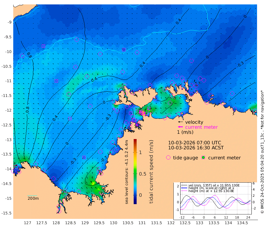81cm/s -101T +4cm/s rms + 6cm/s 51T. Darwin_C1 52m 51cm/s -90T +4cm/s rms + 7cm/s -161T. Darwin_CW1 22m 51cm/s -107T +4cm/s rms + 8cm/s 61T. Darwin_CW2 34m 35cm/s -132T +3cm/s rms + 9cm/s 98T. Darwin_CW3 22m 79cm/s -91T +5cm/s rms + 7cm/s 88T. Darwin_C3 56m 49cm/s -115T +2cm/s rms + 9cm/s -126T. Darwin_CTbW 22m 5cm/s 127T +9cm/s rms + 2cm/s -110T. NWSLYN 196m 4cm/s -142T +1cm/s rms + 1cm/s -47T. DARBGF 30m 9cm/s 52T +7cm/s rms + 2cm/s -137T. ITFTIS 464m 9cm/s 83T +9cm/s rms + 1cm/s 74T. ITFMHB 146m 9cm/s 65T +4cm/s rms + 1cm/s -134T. ITFJBG 61m 16cm/s 89T +6cm/s rms + 4cm/s 121T. ITFFTB 108m 8cm/s -163T +4cm/s rms + 3cm/s 80T. NRSDAR 19m 111cm Carronade Island 111cm Guy Point 113cm Napier Broome Bay 61cm Lesueur Island -25cm Reveley Island -21cm Rocky Island -65cm Cape Domett -44cm Lacrosse Island -85cm Adolphus Island -47cm Pender Point -36cm Wyndham 56cm The Boxers 45cm Unnamed Shoal 78cm Loxton Shoal -90cm Pelican Island 65cm Calder Shoal 61cm Evans Shoal -127cm Quoin Island -70cm Port Keats -68cm Jones Point -104cm Catfish Island -38cm Cape Scott Offshore 38cm Cape Ford -53cm Anson Bay 51cm Goodrich Bank -35cm Peron Island North -24cm Point Jenny -23cm Native Point -32cm Fish Reef -41cm Tapa Bay 22cm Point Fawcett (Offshore) -42cm Burge Point -45cm Munkunuwa -1cm Beagle A -66cm Parsons Bank -37cm Fenton Patches 49cm Lynedoch Bank -65cm Hancox Shoal Area -61cm Nightcliff -70cm Darwin -49cm Charles Point Patches -47cm Glyde Point -46cm Chambers Bay -45cm Point Stuart -40cm Cape Hotham -38cm Christine Reef -51cm West Alligator Head -43cm East Field Island -36cm Two Hills Bay 37cm Newby Shoal -26cm Camp Point -44cm Medina Inlet South 17cm South Barlow Point 38cm St. Asaph Bay 50cm Cape Van Dieman 43cm Snake Bay 50cm Cache Point 90cm Echo Shoal 32cm Point Jahleel (Off) -3cm Cape Don 17cm Port Essington 15cm Smith Point - West 15cm NW Peacock Island 29cm North Of Jones Shoal 8cm Peacock Island -7cm Point David 9cm D'urville Point 18cm Money Shoal -12cm Copeland Island -11cm Cape Cockburn -4cm One Tree Point -8cm Hogmany Shoal -1cm New Year Island - West -7cm Grant Island -28cm Aurari Bay -42cm Cuthbert Point -23cm North Goulburn Island -44cm Paxie Shoal -61cm Entrance Island -83cm Yabooma Island