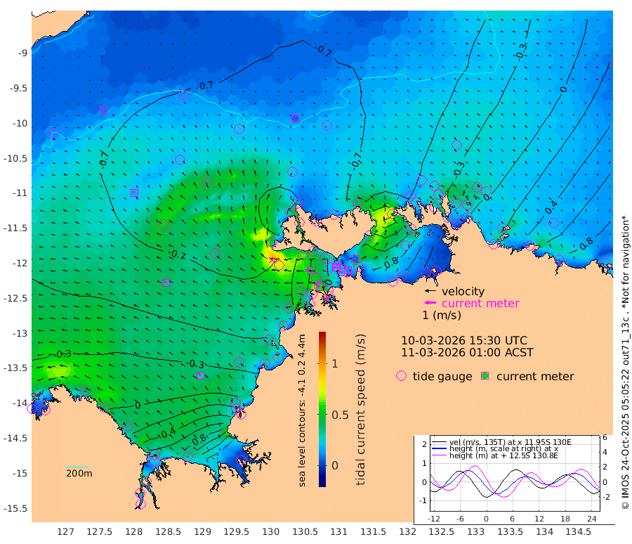 22cm/s -106T +4cm/s rms + 6cm/s 51T. Darwin_C1 52m 11cm/s -76T +4cm/s rms + 7cm/s -161T. Darwin_CW1 22m 27cm/s -105T +4cm/s rms + 8cm/s 61T. Darwin_CW2 34m 7cm/s 25T +3cm/s rms + 9cm/s 98T. Darwin_CW3 22m 20cm/s -98T +5cm/s rms + 7cm/s 88T. Darwin_C3 56m 15cm/s -116T +2cm/s rms + 9cm/s -126T. Darwin_CTbW 22m 8cm/s -41T +9cm/s rms + 2cm/s -110T. NWSLYN 196m 52cm/s -87T +1cm/s rms + 1cm/s -47T. DARBGF 30m 8cm/s -109T +7cm/s rms + 2cm/s -137T. ITFTIS 464m 17cm/s -32T +9cm/s rms + 1cm/s 74T. ITFMHB 146m 30cm/s -31T +4cm/s rms + 1cm/s -134T. ITFJBG 61m 35cm/s -54T +6cm/s rms + 4cm/s 121T. ITFFTB 108m 59cm/s -56T +4cm/s rms + 3cm/s 80T. NRSDAR 19m 4cm Carronade Island -1cm Guy Point 9cm Napier Broome Bay -11cm Lesueur Island -1cm Reveley Island 1cm Rocky Island 36cm Cape Domett 27cm Lacrosse Island 81cm Adolphus Island 132cm Pender Point 168cm Wyndham -74cm The Boxers -70cm Unnamed Shoal -77cm Loxton Shoal 29cm Pelican Island -91cm Calder Shoal -74cm Evans Shoal 143cm Quoin Island -28cm Port Keats -15cm Jones Point 253cm Catfish Island -61cm Cape Scott Offshore -183cm Cape Ford -67cm Anson Bay -82cm Goodrich Bank -70cm Peron Island North -91cm Point Jenny -95cm Native Point -79cm Fish Reef -90cm Tapa Bay -99cm Point Fawcett (Offshore) -80cm Burge Point -98cm Munkunuwa -98cm Beagle A -66cm Parsons Bank -81cm Fenton Patches -64cm Lynedoch Bank -55cm Hancox Shoal Area -68cm Nightcliff -60cm Darwin -79cm Charles Point Patches 4cm Glyde Point 78cm Chambers Bay 104cm Point Stuart 32cm Cape Hotham 62cm Christine Reef 121cm West Alligator Head 151cm East Field Island 59cm Two Hills Bay -90cm Newby Shoal 41cm Camp Point -84cm Medina Inlet South -102cm South Barlow Point -102cm St. Asaph Bay -86cm Cape Van Dieman -82cm Snake Bay -74cm Cache Point -61cm Echo Shoal -59cm Point Jahleel (Off) -20cm Cape Don -45cm Port Essington -49cm Smith Point - West -42cm NW Peacock Island -49cm North Of Jones Shoal -15cm Peacock Island -12cm Point David -41cm D'urville Point -31cm Money Shoal -6cm Copeland Island -3cm Cape Cockburn -12cm One Tree Point -5cm Hogmany Shoal -10cm New Year Island - West -9cm Grant Island 22cm Aurari Bay 43cm Cuthbert Point 14cm North Goulburn Island 55cm Paxie Shoal 72cm Entrance Island 115cm Yabooma Island