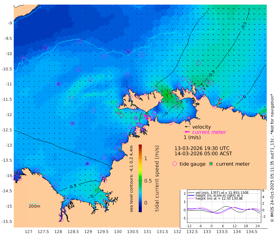 72cm/s -103T +4cm/s rms + 6cm/s 51T. Darwin_C1 52m 26cm/s -89T +4cm/s rms + 7cm/s -161T. Darwin_CW1 22m 27cm/s -104T +4cm/s rms + 8cm/s 61T. Darwin_CW2 34m 24cm/s -119T +3cm/s rms + 9cm/s 98T. Darwin_CW3 22m 35cm/s -90T +5cm/s rms + 7cm/s 88T. Darwin_C3 56m 46cm/s -116T +2cm/s rms + 9cm/s -126T. Darwin_CTbW 22m 5cm/s -49T +9cm/s rms + 2cm/s -110T. NWSLYN 196m 18cm/s -93T +1cm/s rms + 1cm/s -47T. DARBGF 30m 3cm/s -115T +7cm/s rms + 2cm/s -137T. ITFTIS 464m 8cm/s -21T +9cm/s rms + 1cm/s 74T. ITFMHB 146m 4cm/s -29T +4cm/s rms + 1cm/s -134T. ITFJBG 61m 9cm/s -52T +6cm/s rms + 4cm/s 121T. ITFFTB 108m 16cm/s -70T +4cm/s rms + 3cm/s 80T. NRSDAR 19m -48cm Carronade Island -55cm Guy Point -56cm Napier Broome Bay -52cm Lesueur Island -47cm Reveley Island -56cm Rocky Island -44cm Cape Domett -37cm Lacrosse Island -37cm Adolphus Island -22cm Pender Point -12cm Wyndham -67cm The Boxers -56cm Unnamed Shoal -67cm Loxton Shoal -40cm Pelican Island -68cm Calder Shoal -59cm Evans Shoal -12cm Quoin Island -54cm Port Keats -36cm Jones Point 42cm Catfish Island -56cm Cape Scott Offshore -91cm Cape Ford -55cm Anson Bay -60cm Goodrich Bank -58cm Peron Island North -68cm Point Jenny -70cm Native Point -55cm Fish Reef -68cm Tapa Bay -64cm Point Fawcett (Offshore) -61cm Burge Point -63cm Munkunuwa -65cm Beagle A -60cm Parsons Bank -60cm Fenton Patches -53cm Lynedoch Bank -57cm Hancox Shoal Area -58cm Nightcliff -58cm Darwin -65cm Charles Point Patches -32cm Glyde Point -3cm Chambers Bay 7cm Point Stuart -16cm Cape Hotham -19cm Christine Reef 11cm West Alligator Head 24cm East Field Island -12cm Two Hills Bay -81cm Newby Shoal -14cm Camp Point -62cm Medina Inlet South -67cm South Barlow Point -64cm St. Asaph Bay -60cm Cape Van Dieman -60cm Snake Bay -58cm Cache Point -52cm Echo Shoal -52cm Point Jahleel (Off) -41cm Cape Don -46cm Port Essington -51cm Smith Point - West -48cm NW Peacock Island -46cm North Of Jones Shoal -15cm Peacock Island -32cm Point David -48cm D'urville Point -39cm Money Shoal -29cm Copeland Island -36cm Cape Cockburn -33cm One Tree Point -42cm Hogmany Shoal -34cm New Year Island - West -37cm Grant Island -15cm Aurari Bay -18cm Cuthbert Point -24cm North Goulburn Island -7cm Paxie Shoal 0cm Entrance Island 27cm Yabooma Island