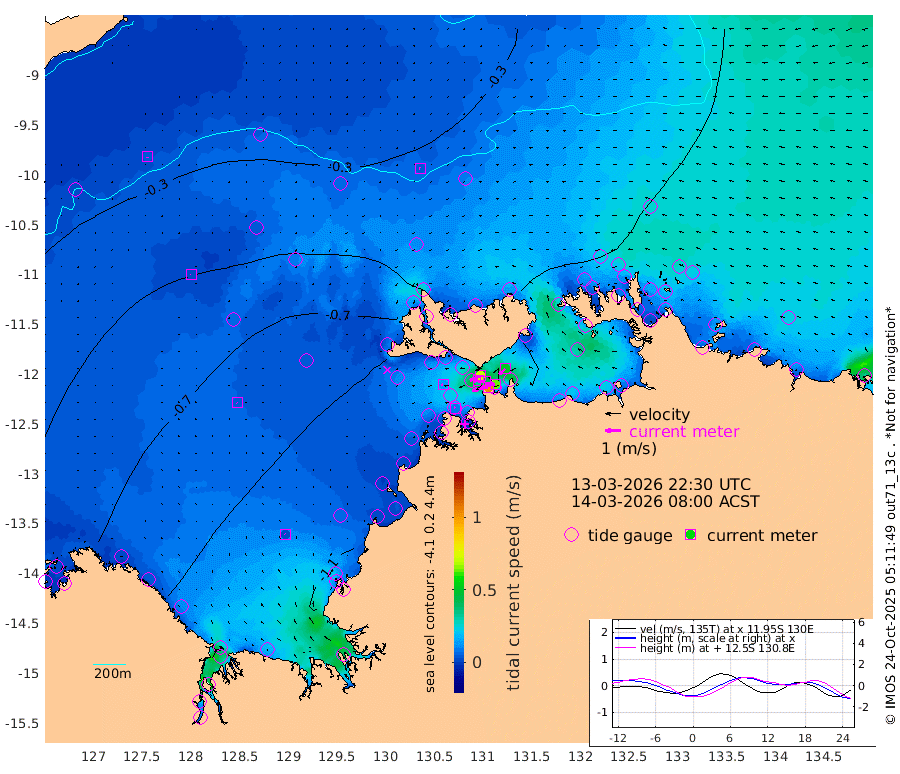 104cm/s -102T +4cm/s rms + 6cm/s 51T. Darwin_C1 52m 62cm/s -90T +4cm/s rms + 7cm/s -161T. Darwin_CW1 22m 33cm/s -106T +4cm/s rms + 8cm/s 61T. Darwin_CW2 34m 51cm/s -133T +3cm/s rms + 9cm/s 98T. Darwin_CW3 22m 45cm/s -89T +5cm/s rms + 7cm/s 88T. Darwin_C3 56m 71cm/s -115T +2cm/s rms + 9cm/s -126T. Darwin_CTbW 22m 5cm/s -68T +9cm/s rms + 2cm/s -110T. NWSLYN 196m 14cm/s -96T +1cm/s rms + 1cm/s -47T. DARBGF 30m 5cm/s -176T +7cm/s rms + 2cm/s -137T. ITFTIS 464m 3cm/s -134T +9cm/s rms + 1cm/s 74T. ITFMHB 146m 3cm/s -36T +4cm/s rms + 1cm/s -134T. ITFJBG 61m 4cm/s -80T +6cm/s rms + 4cm/s 121T. ITFFTB 108m 9cm/s -72T +4cm/s rms + 3cm/s 80T. NRSDAR 19m -61cm Carronade Island -62cm Guy Point -69cm Napier Broome Bay -87cm Lesueur Island -80cm Reveley Island -38cm Rocky Island -100cm Cape Domett -101cm Lacrosse Island -97cm Adolphus Island -87cm Pender Point -94cm Wyndham -61cm The Boxers -72cm Unnamed Shoal -30cm Loxton Shoal -106cm Pelican Island -47cm Calder Shoal -27cm Evans Shoal -109cm Quoin Island -100cm Port Keats -92cm Jones Point -162cm Catfish Island -93cm Cape Scott Offshore -48cm Cape Ford -100cm Anson Bay -34cm Goodrich Bank -82cm Peron Island North -89cm Point Jenny -89cm Native Point -82cm Fish Reef -95cm Tapa Bay -65cm Point Fawcett (Offshore) -85cm Burge Point -67cm Munkunuwa -80cm Beagle A -80cm Parsons Bank -89cm Fenton Patches -31cm Lynedoch Bank -90cm Hancox Shoal Area -99cm Nightcliff -93cm Darwin -93cm Charles Point Patches -83cm Glyde Point -81cm Chambers Bay -73cm Point Stuart -73cm Cape Hotham -76cm Christine Reef -77cm West Alligator Head -75cm East Field Island -71cm Two Hills Bay -80cm Newby Shoal -72cm Camp Point -83cm Medina Inlet South -51cm South Barlow Point -47cm St. Asaph Bay -36cm Cape Van Dieman -39cm Snake Bay -41cm Cache Point -27cm Echo Shoal -43cm Point Jahleel (Off) -57cm Cape Don -43cm Port Essington -45cm Smith Point - West -44cm NW Peacock Island -40cm North Of Jones Shoal -14cm Peacock Island -50cm Point David -46cm D'urville Point -43cm Money Shoal -49cm Copeland Island -61cm Cape Cockburn -49cm One Tree Point -64cm Hogmany Shoal -56cm New Year Island - West -54cm Grant Island -59cm Aurari Bay -63cm Cuthbert Point -57cm North Goulburn Island -68cm Paxie Shoal -63cm Entrance Island -60cm Yabooma Island