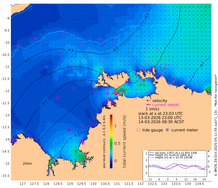 93cm/s -102T +4cm/s rms + 6cm/s 51T. Darwin_C1 52m 64cm/s -90T +4cm/s rms + 7cm/s -161T. Darwin_CW1 22m 31cm/s -106T +4cm/s rms + 8cm/s 61T. Darwin_CW2 34m 50cm/s -135T +3cm/s rms + 9cm/s 98T. Darwin_CW3 22m 44cm/s -89T +5cm/s rms + 7cm/s 88T. Darwin_C3 56m 63cm/s -115T +2cm/s rms + 9cm/s -126T. Darwin_CTbW 22m 4cm/s -77T +9cm/s rms + 2cm/s -110T. NWSLYN 196m 12cm/s -98T +1cm/s rms + 1cm/s -47T. DARBGF 30m 6cm/s 180T +7cm/s rms + 2cm/s -137T. ITFTIS 464m 5cm/s -159T +9cm/s rms + 1cm/s 74T. ITFMHB 146m 1cm/s -64T +4cm/s rms + 1cm/s -134T. ITFJBG 61m 3cm/s -123T +6cm/s rms + 4cm/s 121T. ITFFTB 108m 6cm/s -77T +4cm/s rms + 3cm/s 80T. NRSDAR 19m -58cm Carronade Island -58cm Guy Point -66cm Napier Broome Bay -88cm Lesueur Island -81cm Reveley Island -32cm Rocky Island -105cm Cape Domett -107cm Lacrosse Island -104cm Adolphus Island -97cm Pender Point -106cm Wyndham -56cm The Boxers -68cm Unnamed Shoal -21cm Loxton Shoal -112cm Pelican Island -40cm Calder Shoal -19cm Evans Shoal -123cm Quoin Island -103cm Port Keats -99cm Jones Point -185cm Catfish Island -92cm Cape Scott Offshore -45cm Cape Ford -100cm Anson Bay -27cm Goodrich Bank -80cm Peron Island North -86cm Point Jenny -85cm Native Point -82cm Fish Reef -93cm Tapa Bay -60cm Point Fawcett (Offshore) -84cm Burge Point -64cm Munkunuwa -76cm Beagle A -78cm Parsons Bank -88cm Fenton Patches -24cm Lynedoch Bank -89cm Hancox Shoal Area -98cm Nightcliff -94cm Darwin -93cm Charles Point Patches -87cm Glyde Point -89cm Chambers Bay -83cm Point Stuart -79cm Cape Hotham -80cm Christine Reef -88cm West Alligator Head -89cm East Field Island -76cm Two Hills Bay -73cm Newby Shoal -78cm Camp Point -81cm Medina Inlet South -43cm South Barlow Point -39cm St. Asaph Bay -28cm Cape Van Dieman -31cm Snake Bay -34cm Cache Point -21cm Echo Shoal -38cm Point Jahleel (Off) -55cm Cape Don -38cm Port Essington -39cm Smith Point - West -38cm NW Peacock Island -35cm North Of Jones Shoal -13cm Peacock Island -48cm Point David -40cm D'urville Point -39cm Money Shoal -47cm Copeland Island -58cm Cape Cockburn -46cm One Tree Point -61cm Hogmany Shoal -54cm New Year Island - West -51cm Grant Island -60cm Aurari Bay -64cm Cuthbert Point -57cm North Goulburn Island -73cm Paxie Shoal -67cm Entrance Island -69cm Yabooma Island
