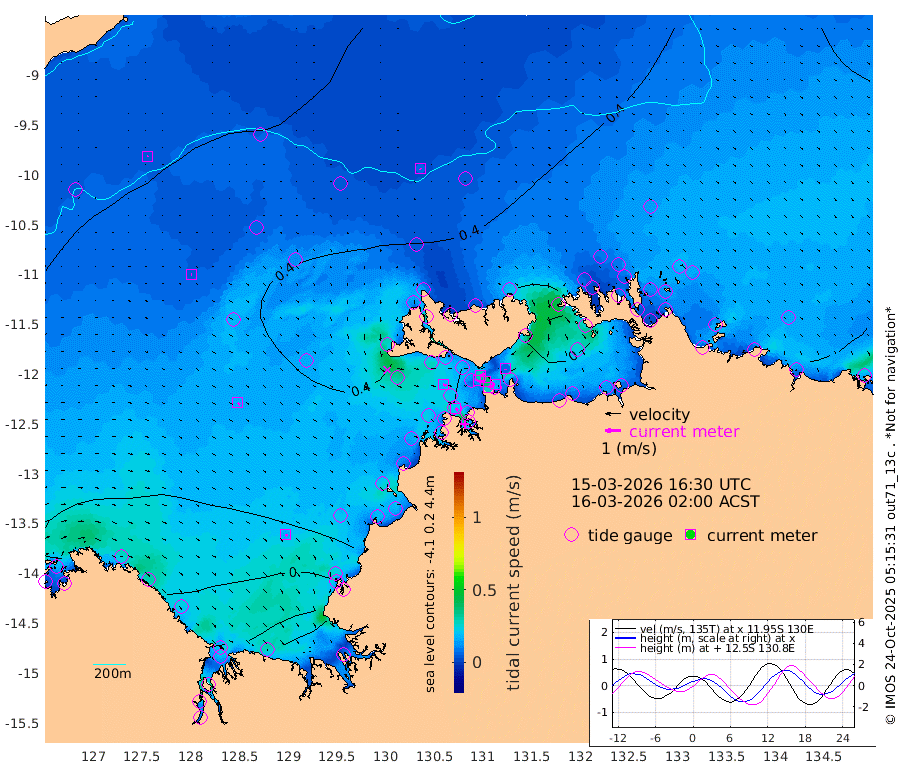 27cm/s 78T +4cm/s rms + 6cm/s 51T. Darwin_C1 52m 16cm/s -76T +4cm/s rms + 7cm/s -161T. Darwin_CW1 22m 11cm/s -111T +4cm/s rms + 8cm/s 61T. Darwin_CW2 34m 6cm/s -175T +3cm/s rms + 9cm/s 98T. Darwin_CW3 22m 37cm/s -91T +5cm/s rms + 7cm/s 88T. Darwin_C3 56m 30cm/s 61T +2cm/s rms + 9cm/s -126T. Darwin_CTbW 22m 7cm/s 151T +9cm/s rms + 2cm/s -110T. NWSLYN 196m 19cm/s 101T +1cm/s rms + 1cm/s -47T. DARBGF 30m 4cm/s 34T +7cm/s rms + 2cm/s -137T. ITFTIS 464m 5cm/s 87T +9cm/s rms + 1cm/s 74T. ITFMHB 146m 17cm/s 132T +4cm/s rms + 1cm/s -134T. ITFJBG 61m 17cm/s 122T +6cm/s rms + 4cm/s 121T. ITFFTB 108m 21cm/s 129T +4cm/s rms + 3cm/s 80T. NRSDAR 19m -2cm Carronade Island -3cm Guy Point -4cm Napier Broome Bay -7cm Lesueur Island -29cm Reveley Island -52cm Rocky Island -67cm Cape Domett -53cm Lacrosse Island -91cm Adolphus Island -109cm Pender Point -112cm Wyndham 19cm The Boxers 46cm Unnamed Shoal 9cm Loxton Shoal -52cm Pelican Island 18cm Calder Shoal 16cm Evans Shoal -123cm Quoin Island -35cm Port Keats -30cm Jones Point -84cm Catfish Island 2cm Cape Scott Offshore -5cm Cape Ford 9cm Anson Bay 28cm Goodrich Bank 4cm Peron Island North 18cm Point Jenny 19cm Native Point 3cm Fish Reef 15cm Tapa Bay 25cm Point Fawcett (Offshore) -3cm Burge Point 4cm Munkunuwa 15cm Beagle A 5cm Parsons Bank 2cm Fenton Patches 22cm Lynedoch Bank 6cm Hancox Shoal Area 6cm Nightcliff -8cm Darwin 1cm Charles Point Patches -12cm Glyde Point -26cm Chambers Bay -33cm Point Stuart -13cm Cape Hotham -21cm Christine Reef -42cm West Alligator Head -54cm East Field Island -15cm Two Hills Bay 15cm Newby Shoal -15cm Camp Point 1cm Medina Inlet South 25cm South Barlow Point 26cm St. Asaph Bay 32cm Cape Van Dieman 33cm Snake Bay 30cm Cache Point 8cm Echo Shoal 26cm Point Jahleel (Off) 18cm Cape Don 30cm Port Essington 34cm Smith Point - West 37cm NW Peacock Island 30cm North Of Jones Shoal 12cm Peacock Island 48cm Point David 40cm D'urville Point 36cm Money Shoal 47cm Copeland Island 52cm Cape Cockburn 39cm One Tree Point 58cm Hogmany Shoal 45cm New Year Island - West 45cm Grant Island 45cm Aurari Bay 43cm Cuthbert Point 44cm North Goulburn Island 40cm Paxie Shoal 39cm Entrance Island 33cm Yabooma Island