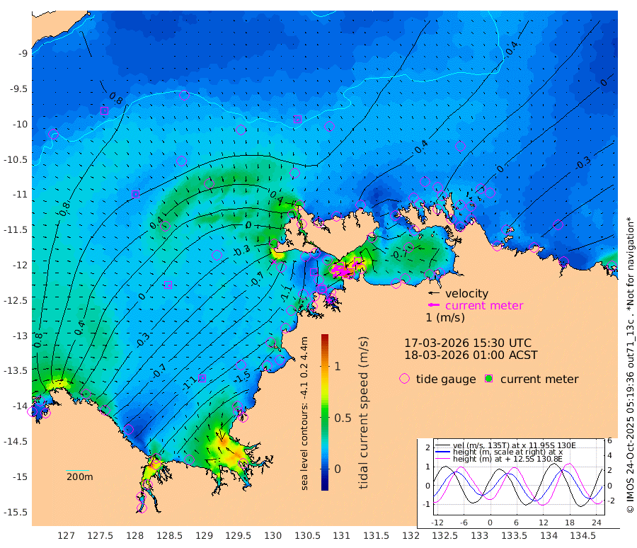 115cm/s -101T +4cm/s rms + 6cm/s 51T. Darwin_C1 52m 103cm/s -92T +4cm/s rms + 7cm/s -161T. Darwin_CW1 22m 67cm/s -107T +4cm/s rms + 8cm/s 61T. Darwin_CW2 34m 68cm/s -137T +3cm/s rms + 9cm/s 98T. Darwin_CW3 22m 109cm/s -91T +5cm/s rms + 7cm/s 88T. Darwin_C3 56m 60cm/s -115T +2cm/s rms + 9cm/s -126T. Darwin_CTbW 22m 12cm/s 159T +9cm/s rms + 2cm/s -110T. NWSLYN 196m 6cm/s -165T +1cm/s rms + 1cm/s -47T. DARBGF 30m 7cm/s 74T +7cm/s rms + 2cm/s -137T. ITFTIS 464m 9cm/s 104T +9cm/s rms + 1cm/s 74T. ITFMHB 146m 13cm/s 65T +4cm/s rms + 1cm/s -134T. ITFJBG 61m 19cm/s 106T +6cm/s rms + 4cm/s 121T. ITFFTB 108m 9cm/s -177T +4cm/s rms + 3cm/s 80T. NRSDAR 19m 73cm Carronade Island 74cm Guy Point 77cm Napier Broome Bay -25cm Lesueur Island -121cm Reveley Island -57cm Rocky Island -204cm Cape Domett -185cm Lacrosse Island -226cm Adolphus Island -176cm Pender Point -167cm Wyndham 28cm The Boxers 16cm Unnamed Shoal 74cm Loxton Shoal -218cm Pelican Island 37cm Calder Shoal 63cm Evans Shoal -287cm Quoin Island -203cm Port Keats -193cm Jones Point -210cm Catfish Island -126cm Cape Scott Offshore -85cm Cape Ford -144cm Anson Bay 50cm Goodrich Bank -116cm Peron Island North -106cm Point Jenny -104cm Native Point -124cm Fish Reef -132cm Tapa Bay -22cm Point Fawcett (Offshore) -153cm Burge Point -126cm Munkunuwa -88cm Beagle A -148cm Parsons Bank -149cm Fenton Patches 51cm Lynedoch Bank -152cm Hancox Shoal Area -170cm Nightcliff -176cm Darwin -144cm Charles Point Patches -134cm Glyde Point -125cm Chambers Bay -123cm Point Stuart -120cm Cape Hotham -109cm Christine Reef -137cm West Alligator Head -138cm East Field Island -96cm Two Hills Bay -33cm Newby Shoal -99cm Camp Point -134cm Medina Inlet South -12cm South Barlow Point 13cm St. Asaph Bay 50cm Cape Van Dieman 42cm Snake Bay 46cm Cache Point 84cm Echo Shoal 22cm Point Jahleel (Off) -23cm Cape Don 22cm Port Essington 22cm Smith Point - West 26cm NW Peacock Island 33cm North Of Jones Shoal 10cm Peacock Island 7cm Point David 22cm D'urville Point 28cm Money Shoal 2cm Copeland Island 0cm Cape Cockburn 6cm One Tree Point 13cm Hogmany Shoal 5cm New Year Island - West 4cm Grant Island -24cm Aurari Bay -28cm Cuthbert Point -15cm North Goulburn Island -43cm Paxie Shoal -59cm Entrance Island -86cm Yabooma Island