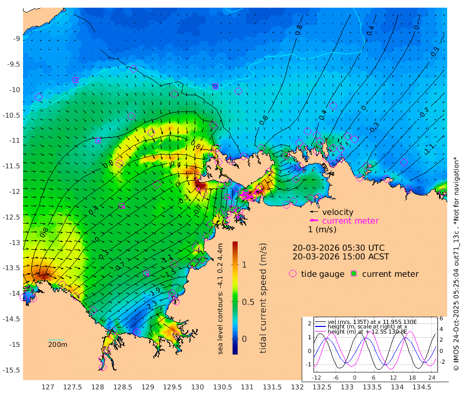 98cm/s -101T +4cm/s rms + 6cm/s 51T. Darwin_C1 52m 81cm/s -92T +4cm/s rms + 7cm/s -161T. Darwin_CW1 22m 53cm/s -106T +4cm/s rms + 8cm/s 61T. Darwin_CW2 34m 79cm/s -137T +3cm/s rms + 9cm/s 98T. Darwin_CW3 22m 112cm/s -90T +5cm/s rms + 7cm/s 88T. Darwin_C3 56m 42cm/s -116T +2cm/s rms + 9cm/s -126T. Darwin_CTbW 22m 8cm/s 161T +9cm/s rms + 2cm/s -110T. NWSLYN 196m 42cm/s 104T +1cm/s rms + 1cm/s -47T. DARBGF 30m 13cm/s 85T +7cm/s rms + 2cm/s -137T. ITFTIS 464m 20cm/s 130T +9cm/s rms + 1cm/s 74T. ITFMHB 146m 36cm/s 124T +4cm/s rms + 1cm/s -134T. ITFJBG 61m 48cm/s 119T +6cm/s rms + 4cm/s 121T. ITFFTB 108m 52cm/s 135T +4cm/s rms + 3cm/s 80T. NRSDAR 19m 55cm Carronade Island 45cm Guy Point 54cm Napier Broome Bay -25cm Lesueur Island -151cm Reveley Island -57cm Rocky Island -261cm Cape Domett -221cm Lacrosse Island -316cm Adolphus Island -319cm Pender Point -323cm Wyndham 63cm The Boxers 68cm Unnamed Shoal 105cm Loxton Shoal -275cm Pelican Island 87cm Calder Shoal 95cm Evans Shoal -414cm Quoin Island -209cm Port Keats -203cm Jones Point -349cm Catfish Island -102cm Cape Scott Offshore -22cm Cape Ford -115cm Anson Bay 88cm Goodrich Bank -78cm Peron Island North -66cm Point Jenny -63cm Native Point -74cm Fish Reef -98cm Tapa Bay 34cm Point Fawcett (Offshore) -116cm Burge Point -79cm Munkunuwa -24cm Beagle A -126cm Parsons Bank -101cm Fenton Patches 81cm Lynedoch Bank -143cm Hancox Shoal Area -136cm Nightcliff -157cm Darwin -119cm Charles Point Patches -147cm Glyde Point -188cm Chambers Bay -191cm Point Stuart -143cm Cape Hotham -168cm Christine Reef -215cm West Alligator Head -232cm East Field Island -137cm Two Hills Bay 25cm Newby Shoal -139cm Camp Point -93cm Medina Inlet South 44cm South Barlow Point 68cm St. Asaph Bay 91cm Cape Van Dieman 84cm Snake Bay 82cm Cache Point 114cm Echo Shoal 50cm Point Jahleel (Off) -23cm Cape Don 35cm Port Essington 40cm Smith Point - West 37cm NW Peacock Island 56cm North Of Jones Shoal 17cm Peacock Island -4cm Point David 34cm D'urville Point 30cm Money Shoal -11cm Copeland Island -10cm Cape Cockburn 0cm One Tree Point -22cm Hogmany Shoal 0cm New Year Island - West -9cm Grant Island -41cm Aurari Bay -78cm Cuthbert Point -40cm North Goulburn Island -107cm Paxie Shoal -133cm Entrance Island -187cm Yabooma Island